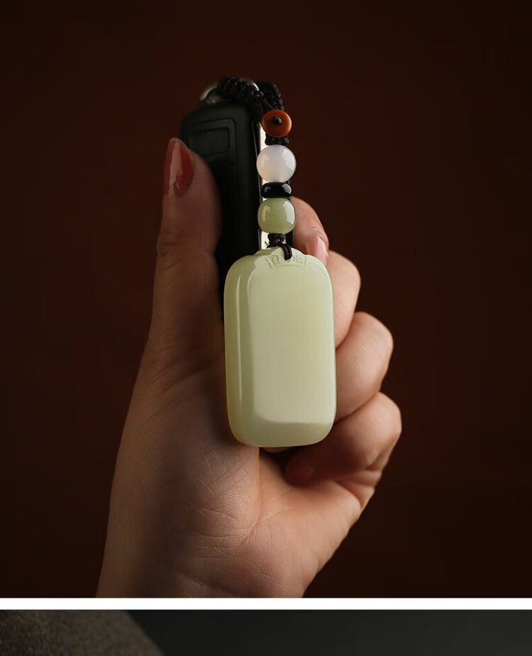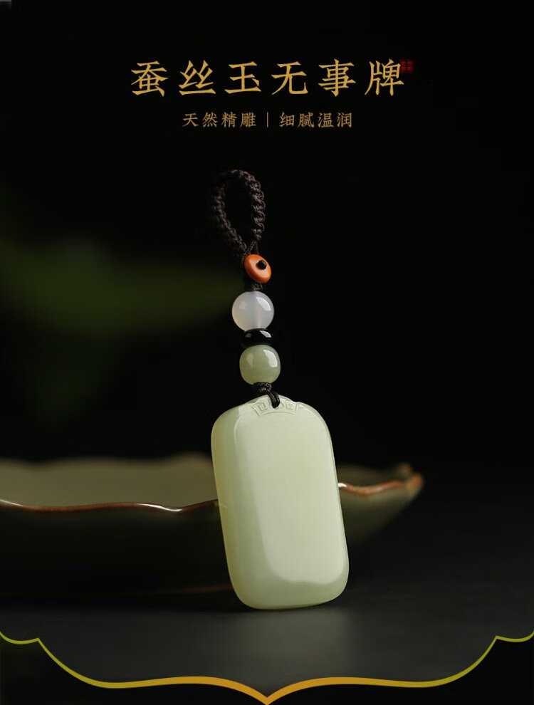 梵心天然蚕丝玉无事牌钥匙扣玉佩高档车钥匙挂件2025新款男女挂饰礼物 蚕丝玉无事牌【带坠款】