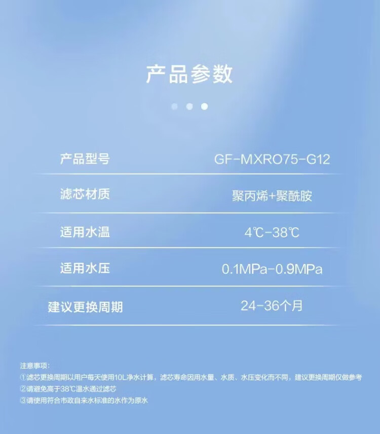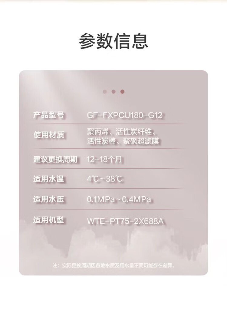 Purificador de agua Gree WTE-PT75-2X688A/2S617G GF-FXPCU180-G12 Elemento filtrante compuesto PCU GF-MXRO75-G12 Elemento filtrante RO de ósmosis inversa original WTE-PT75-2X688A genuino (elemento filtrante de ósmosis inversa RO)