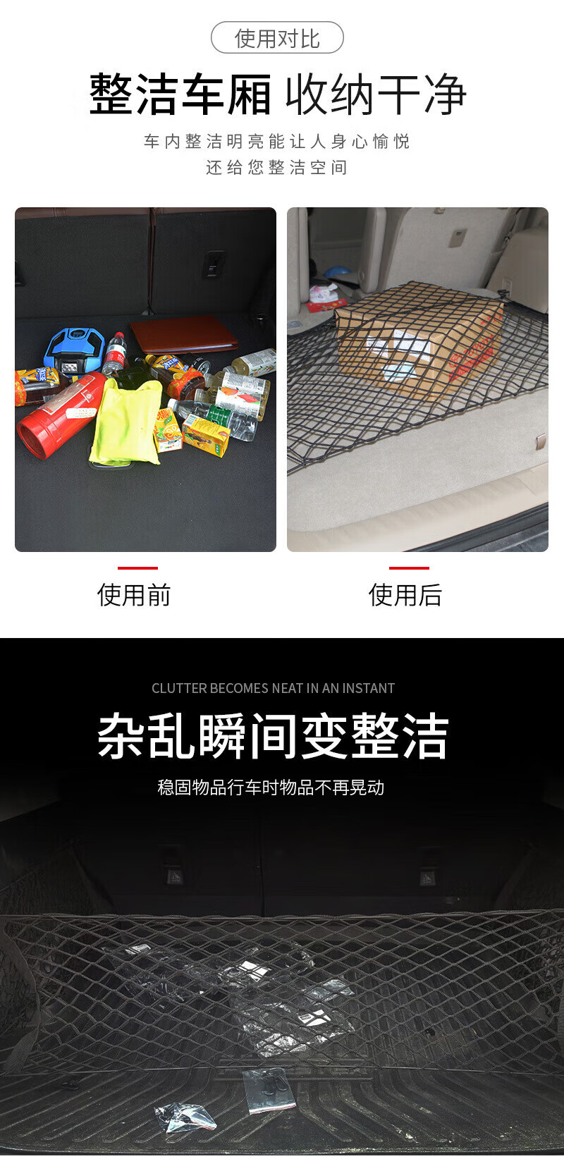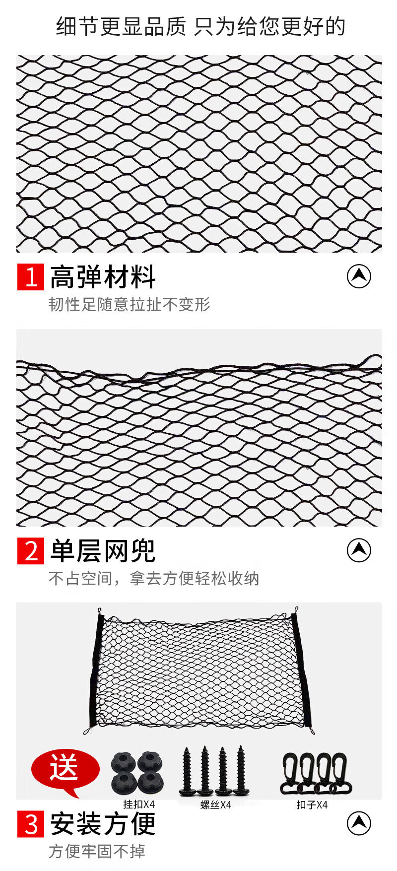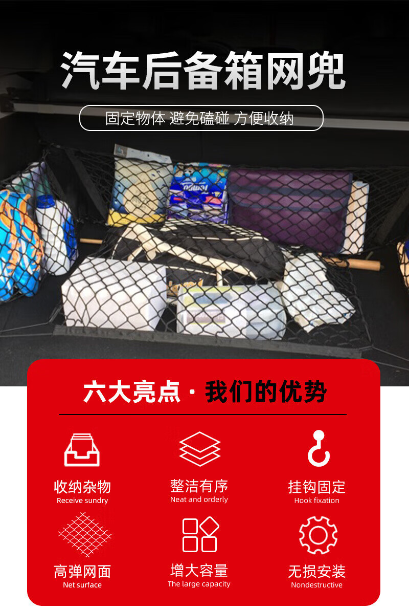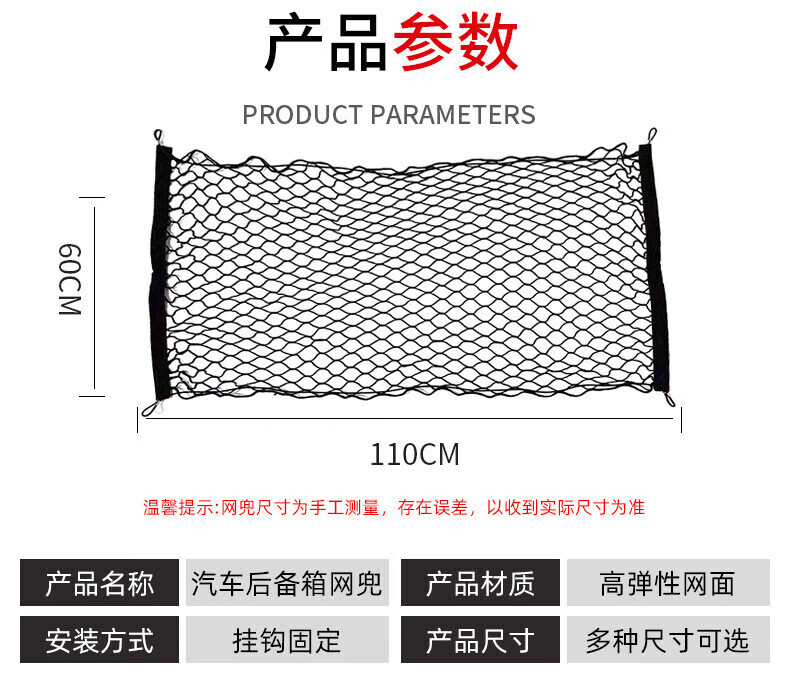 牧山通用后备箱网兜尾箱网罩汽车行李网遮物网储物网 平网【110x60CM】