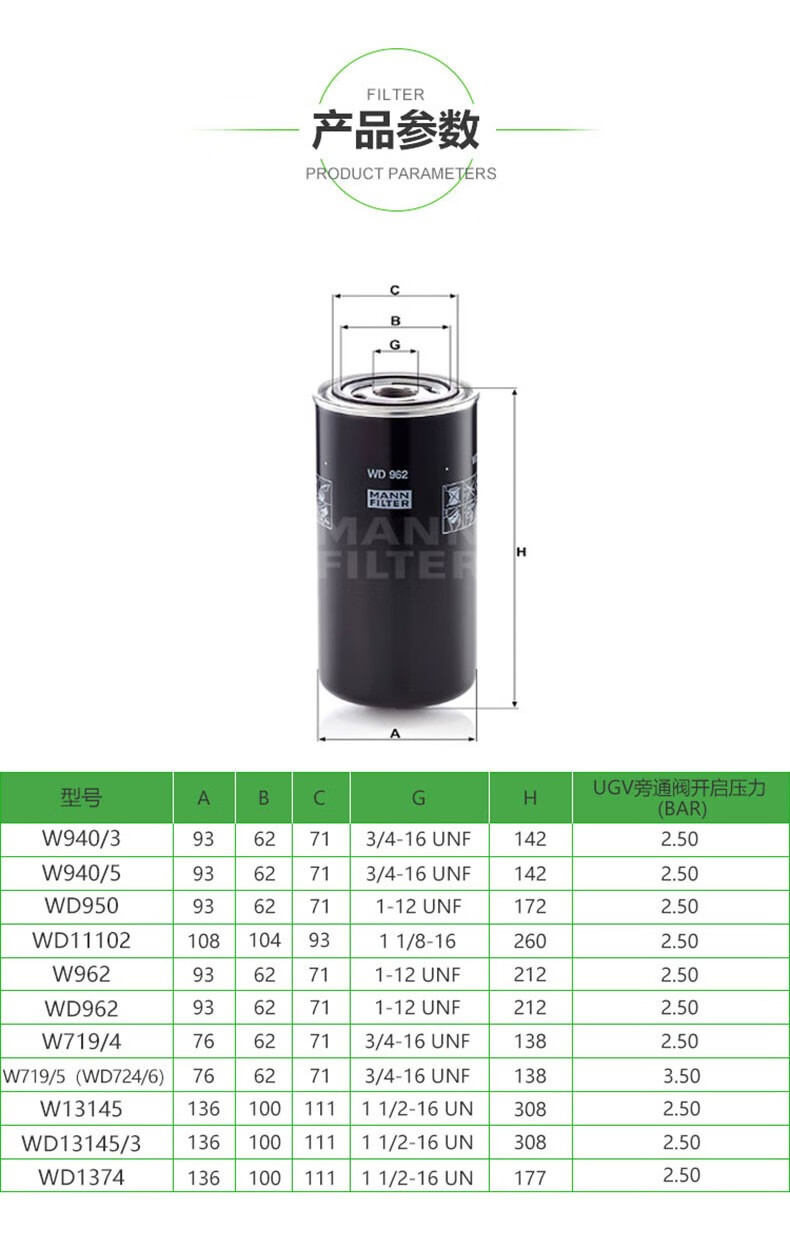 Schraubenluftkompressor-Ölfilter MANN-Ölfilter W962 W950 W719-Filter SH8705-Ölfilter