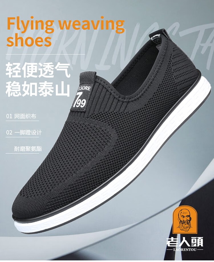Zapatos de hombre con cabeza de anciano, novedad de verano, transpirables, informales, deportivos, perezosos, zapatos de malla de un pie, antiolor, zapatos de malla voladores JG682 negro 38