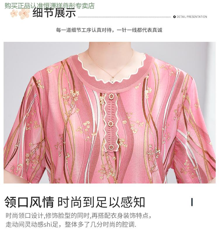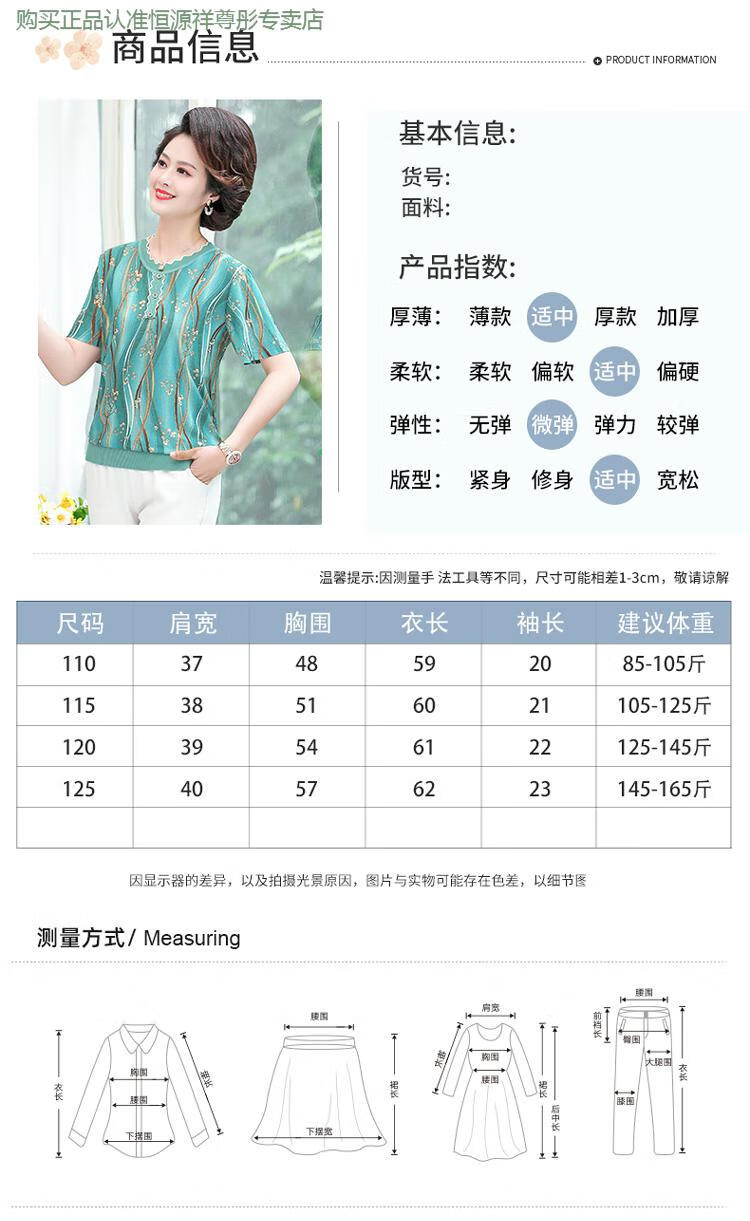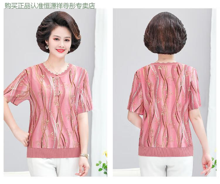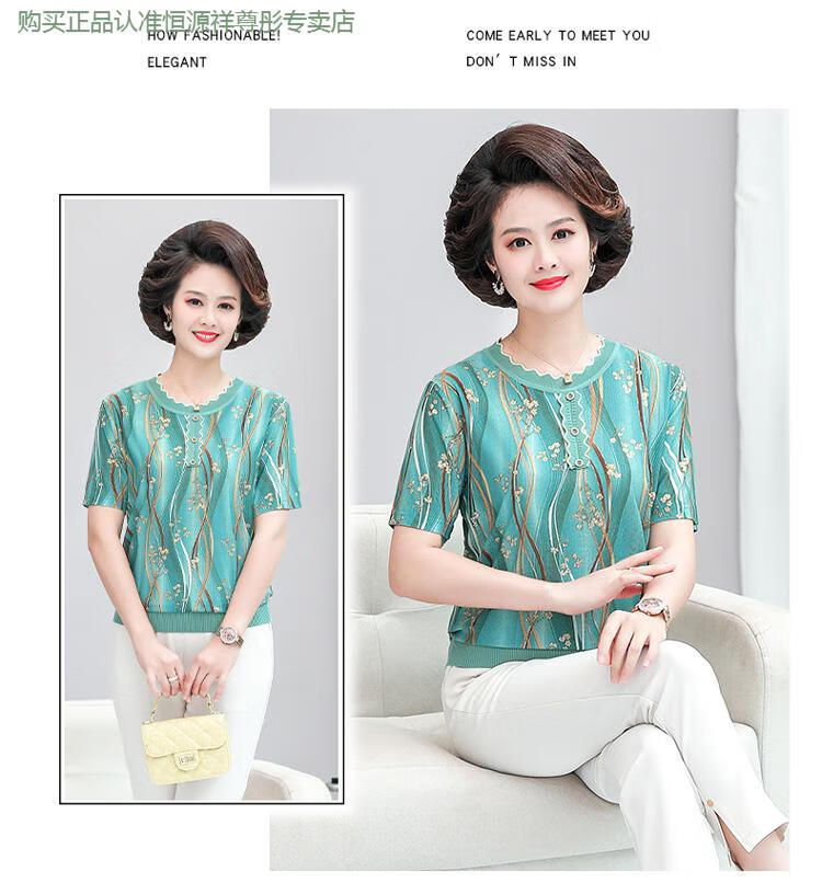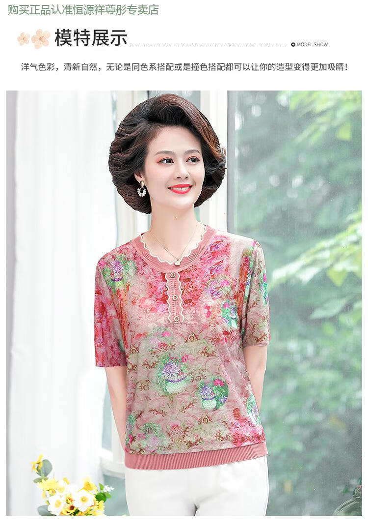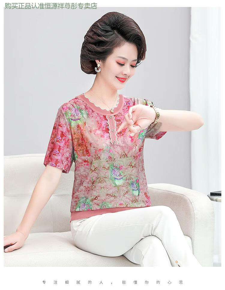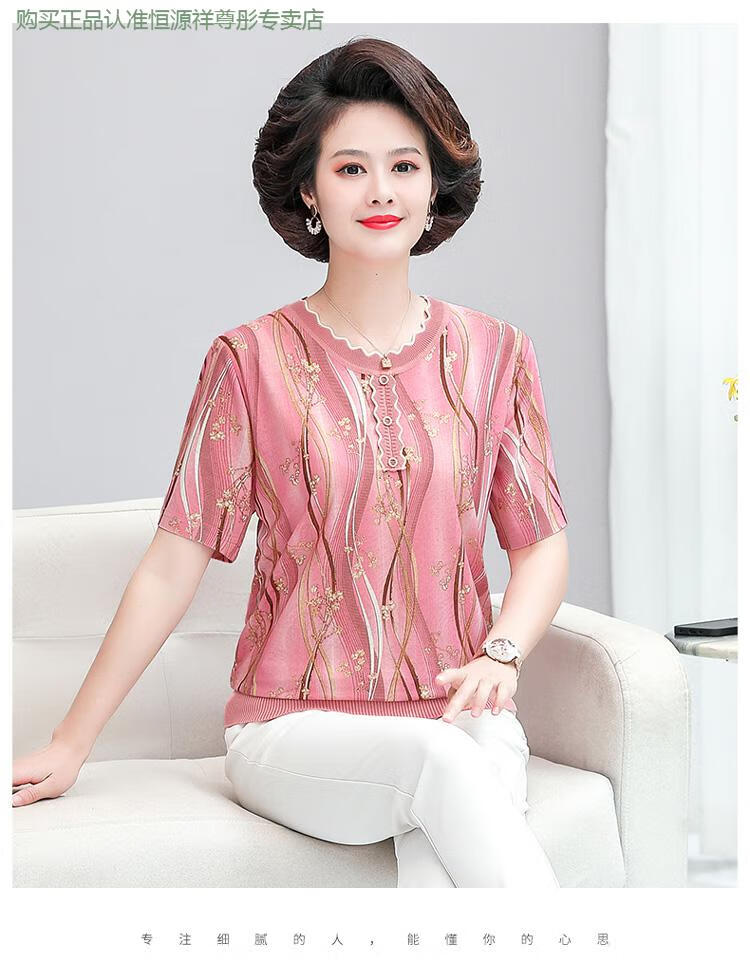 恒源祥2025新款妈妈夏装短袖冰丝小衫中年妇女洋气T恤上衣中老年人套装 9720蓝色+T69黑色 3XL 建议140-150斤