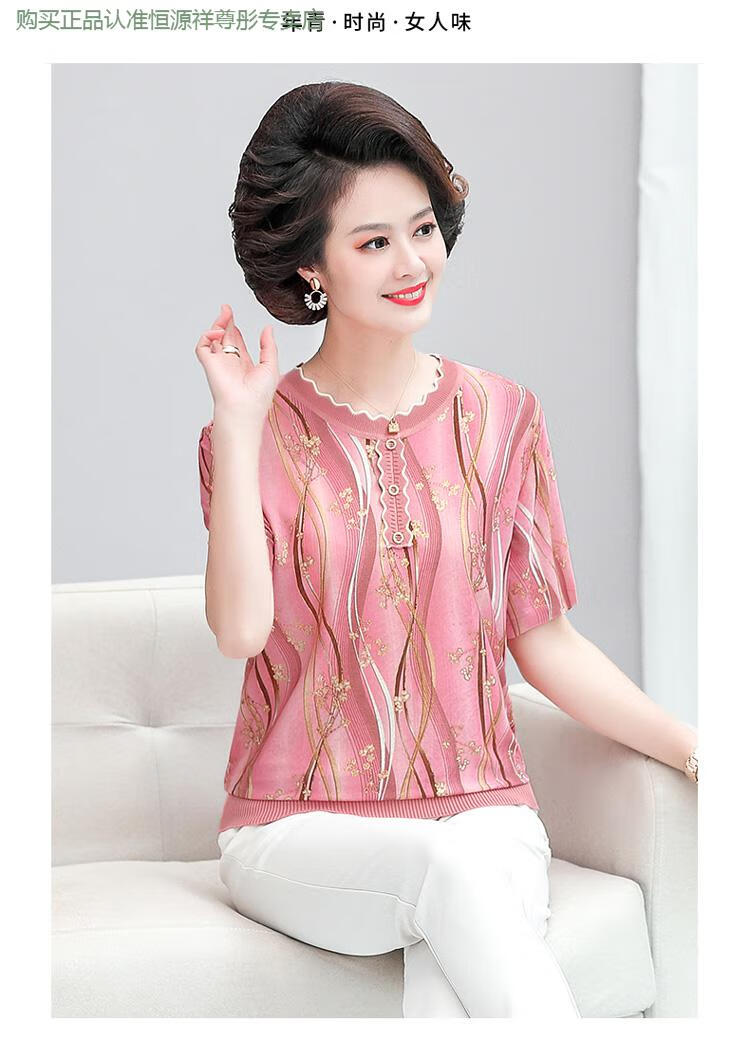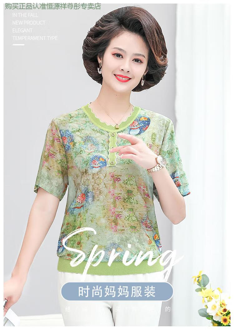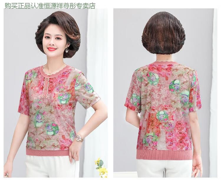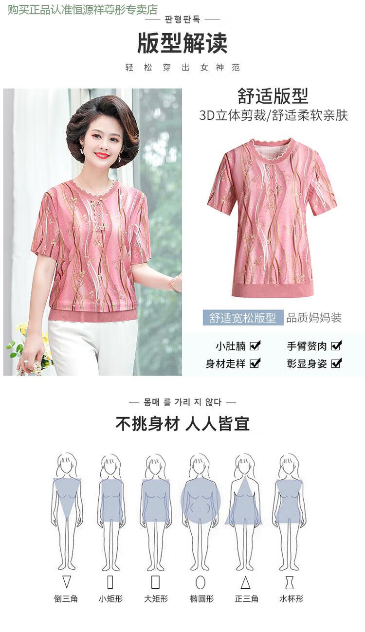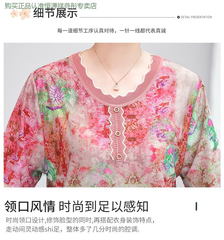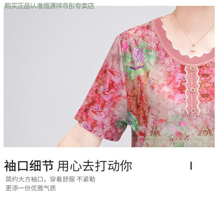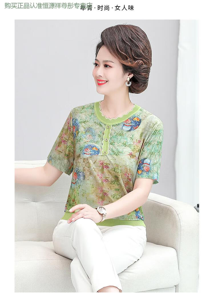 恒源祥2025新款妈妈夏装短袖冰丝小衫中年妇女洋气T恤上衣中老年人套装 9720蓝色+T69黑色 3XL 建议140-150斤