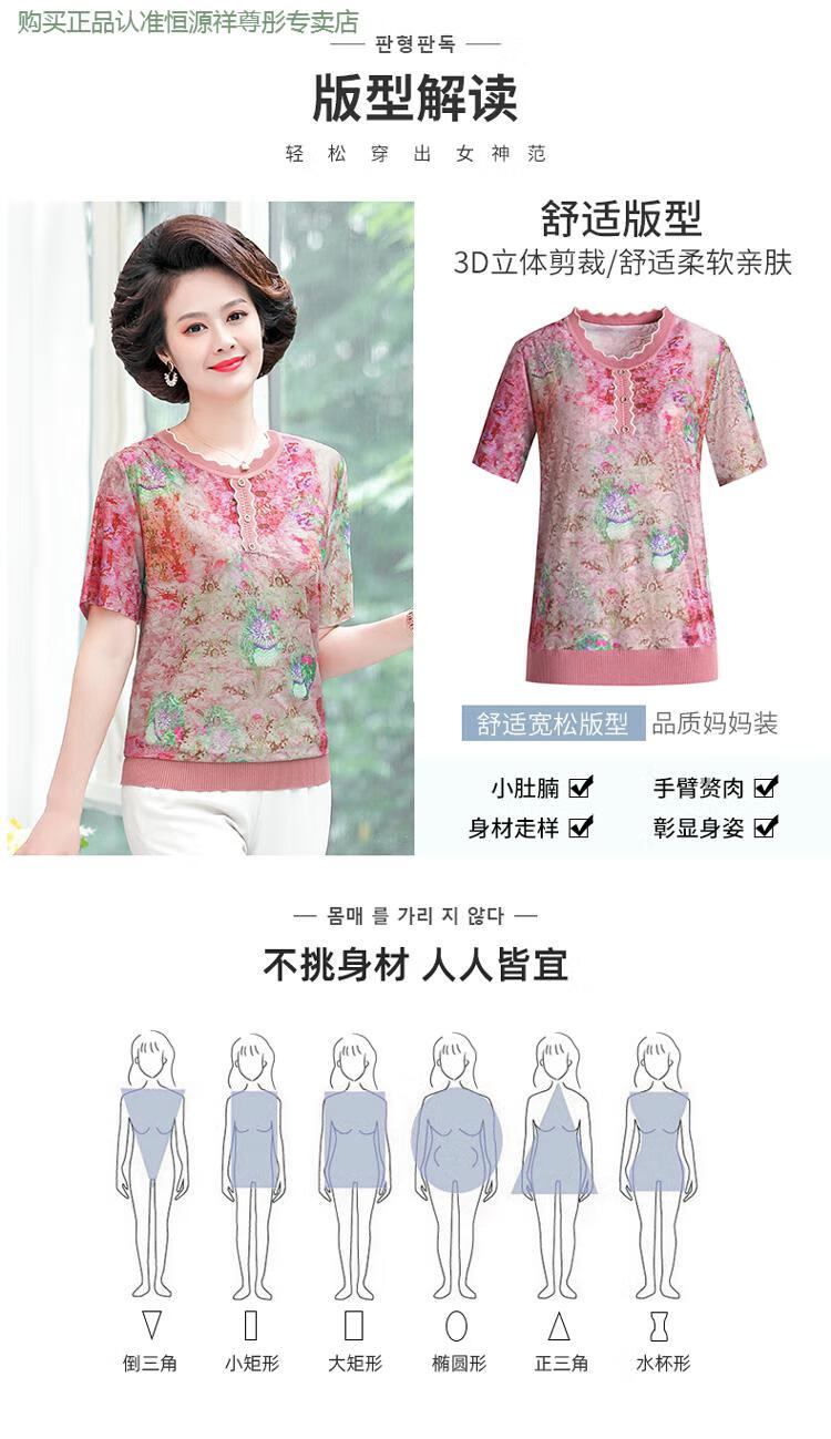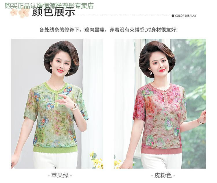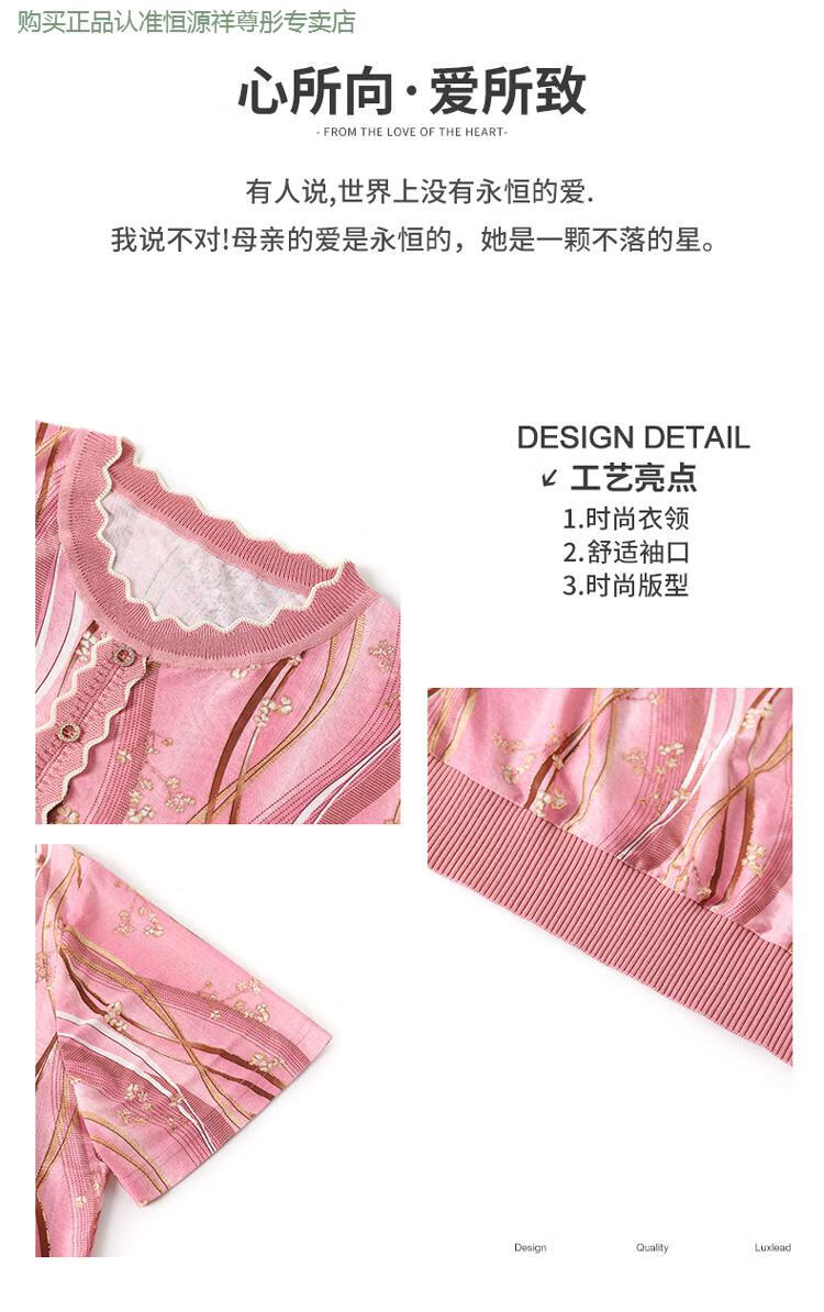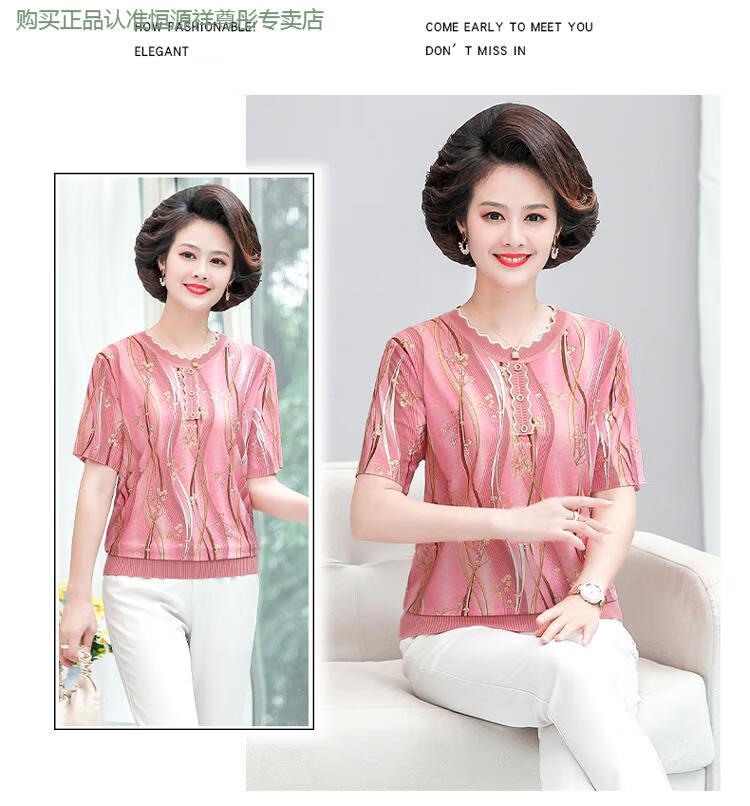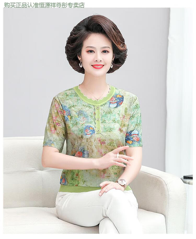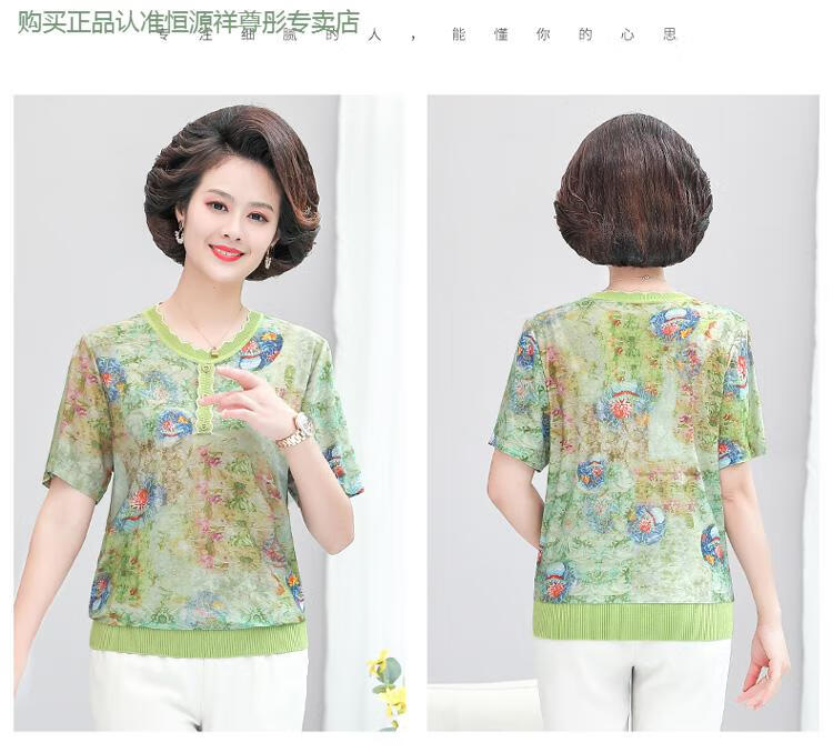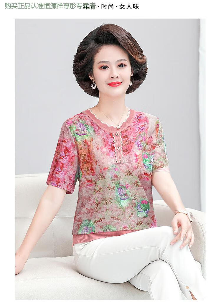 恒源祥2025新款妈妈夏装短袖冰丝小衫中年妇女洋气T恤上衣中老年人套装 9720蓝色+T69黑色 3XL 建议140-150斤