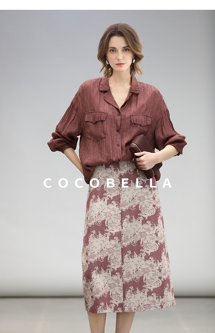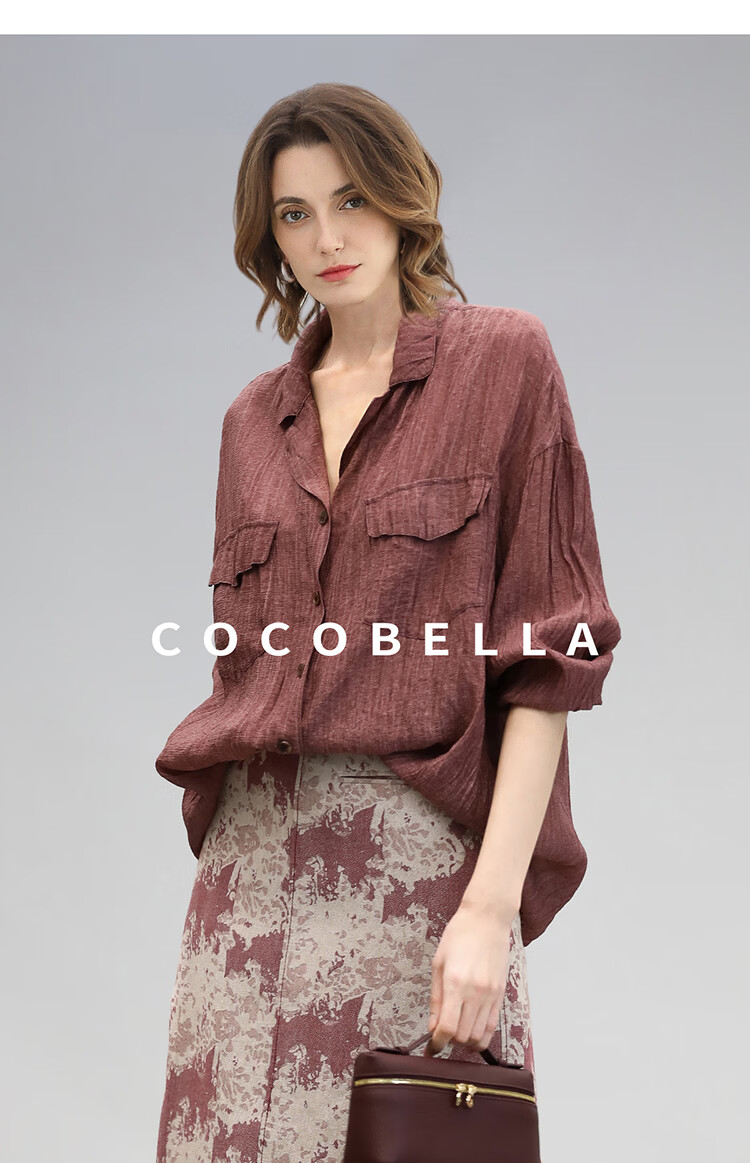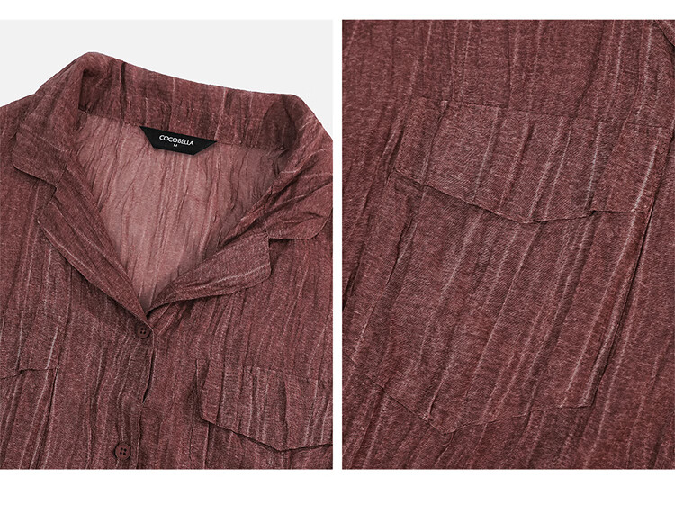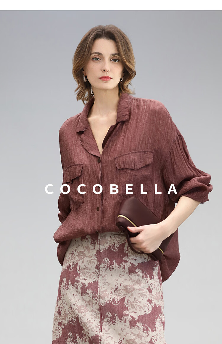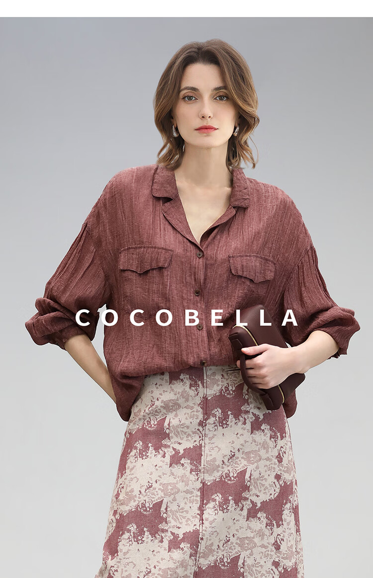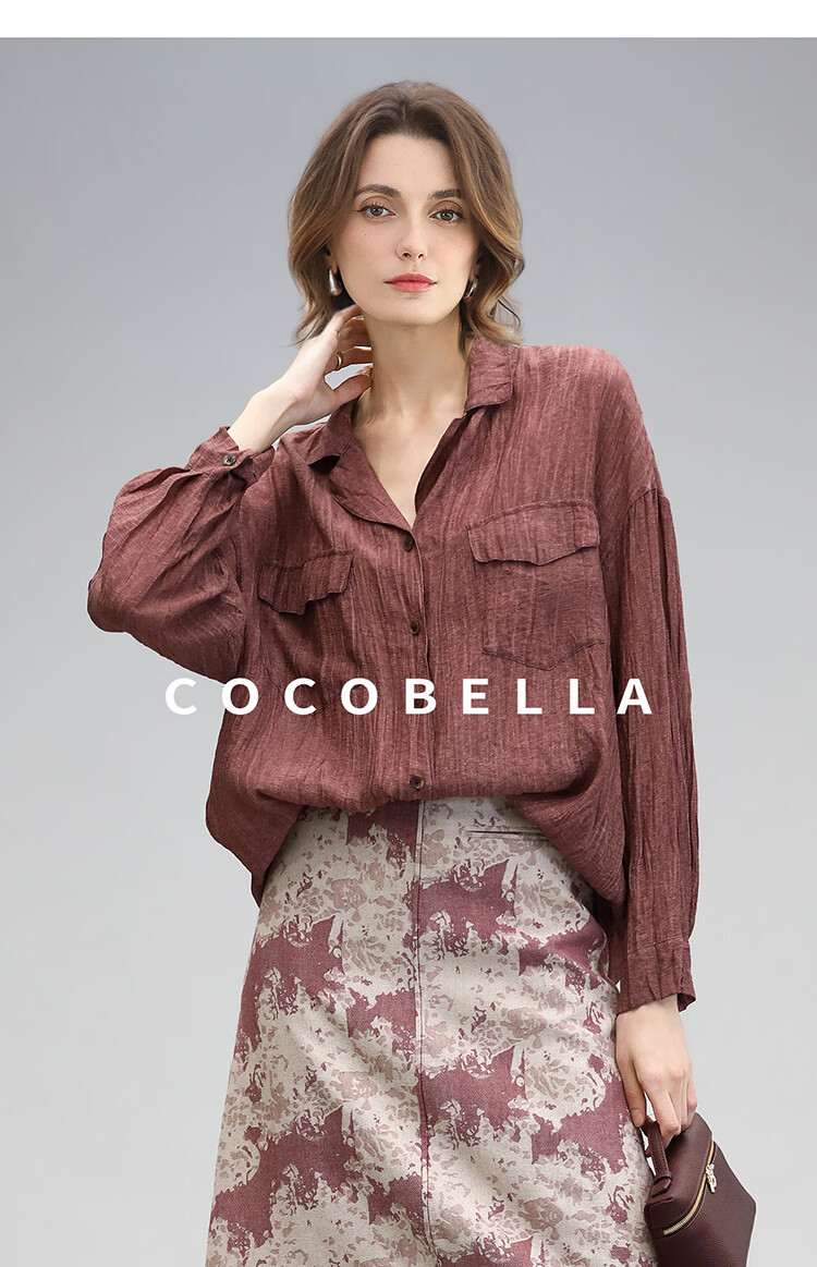 COCOBELLA重工炒色压褶气质酒红衬衫早秋通勤长袖衬衣SR7029 酒红色(古法苏木炒色) M