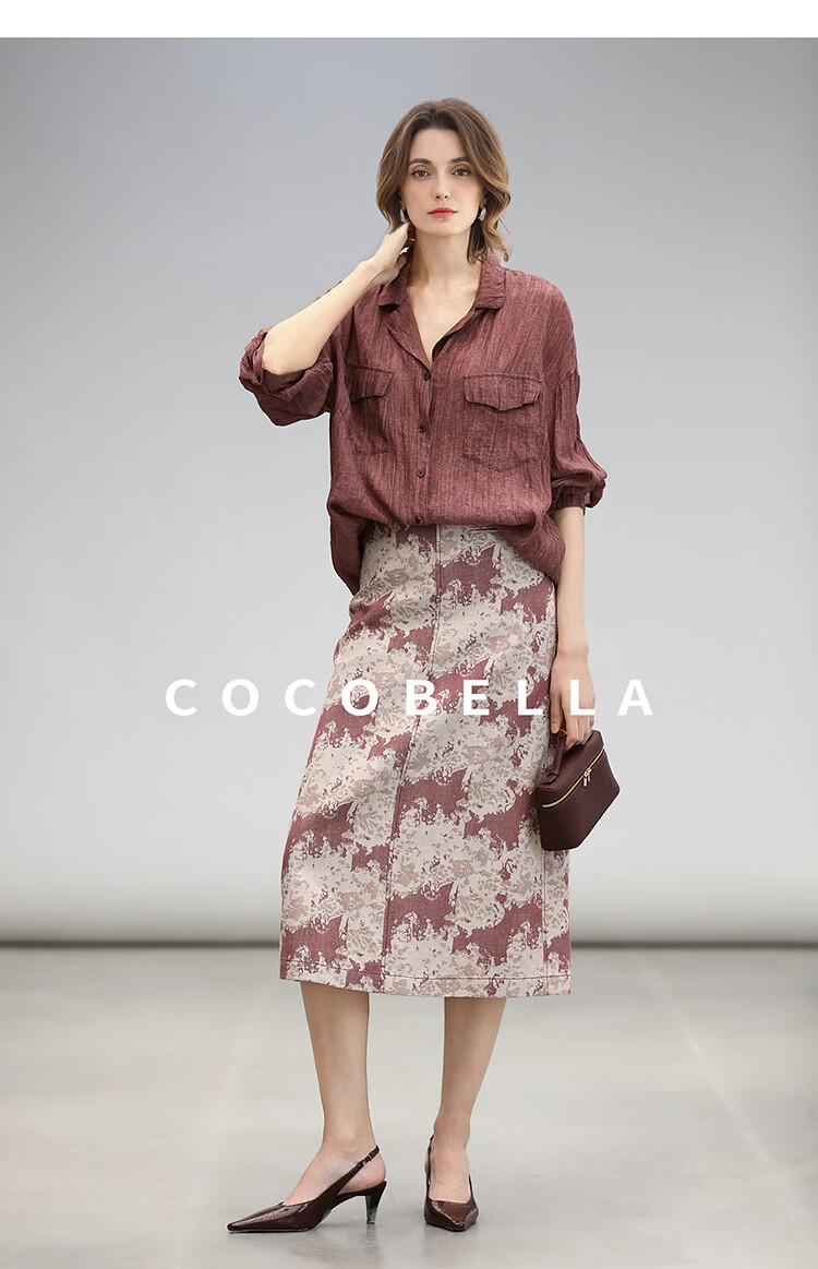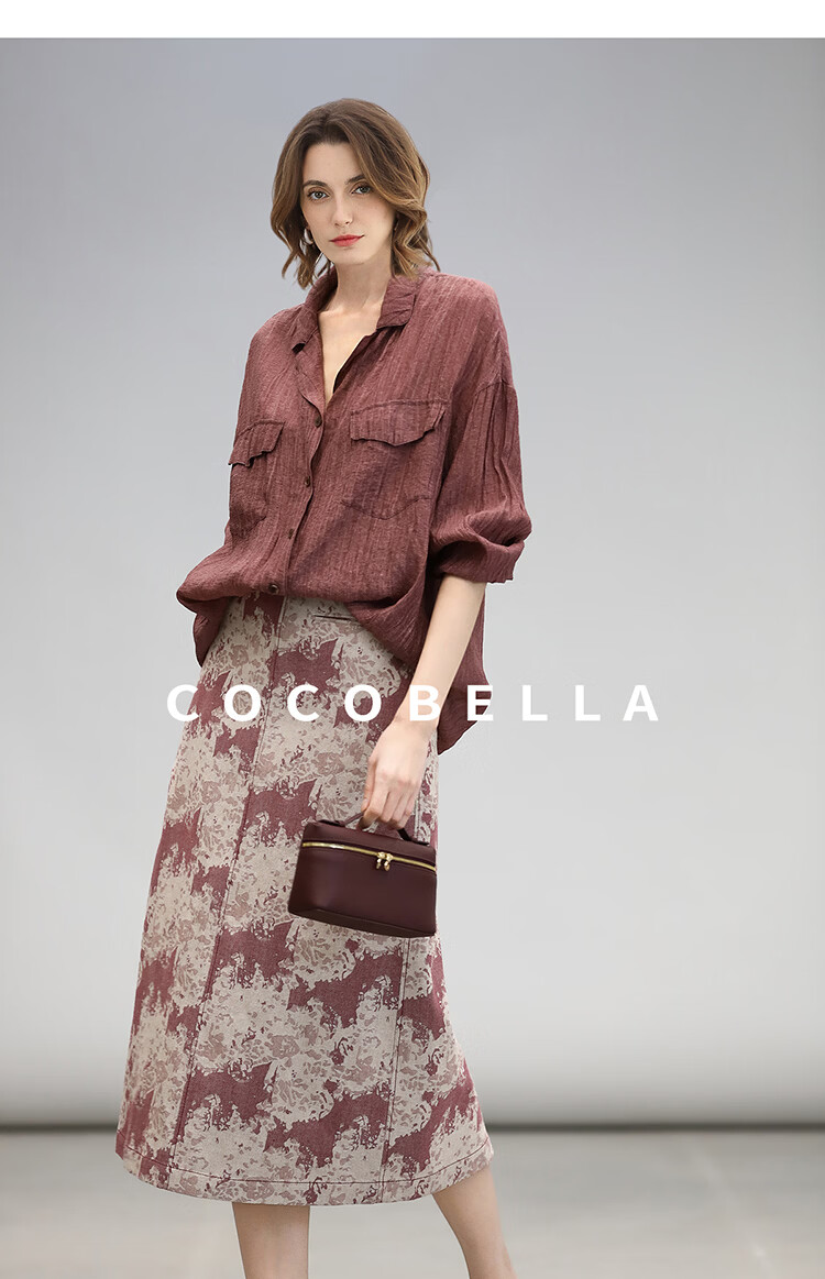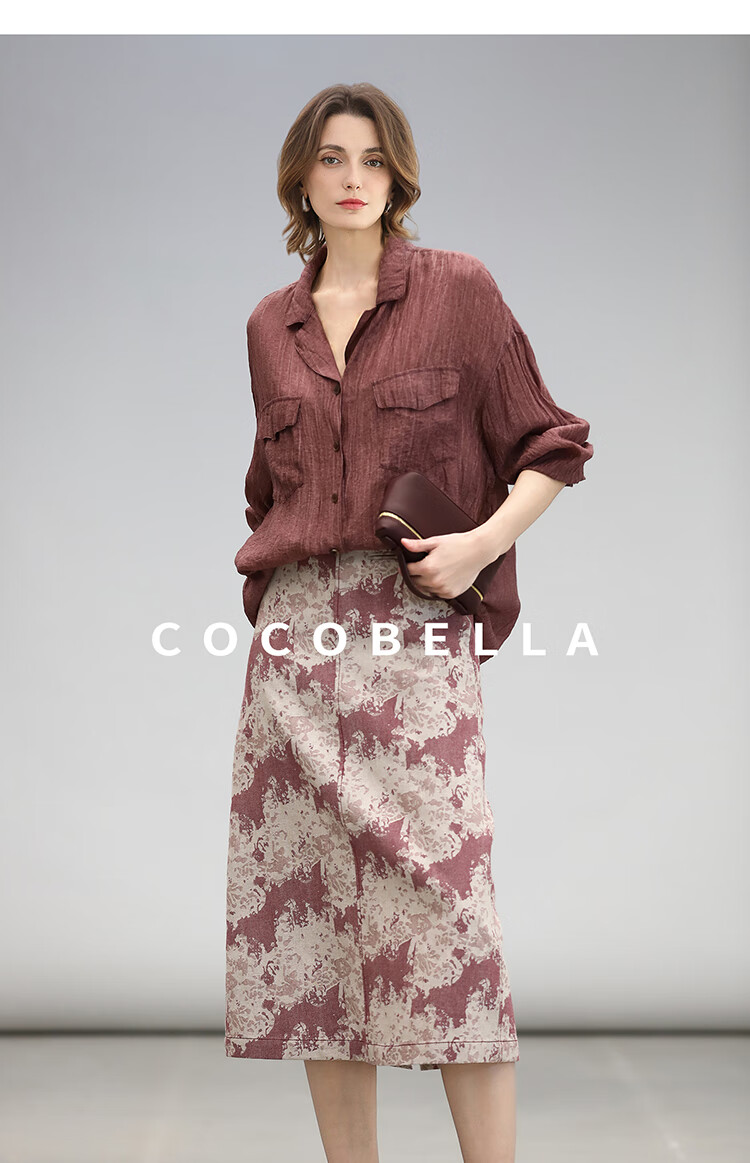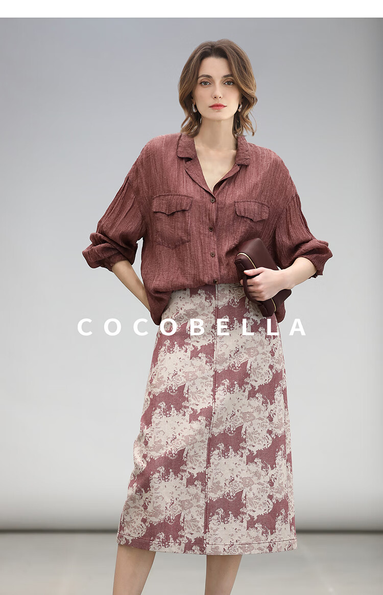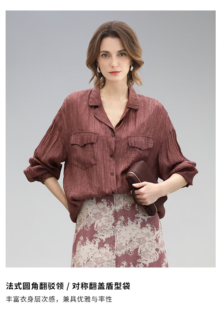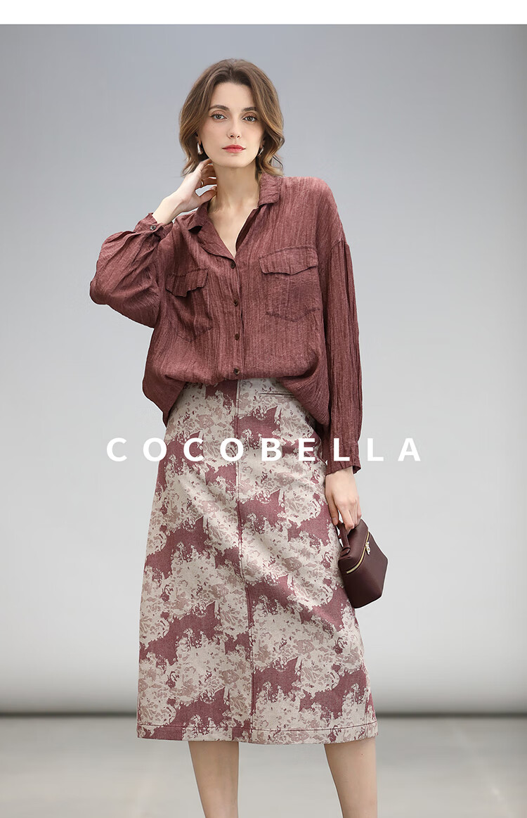 COCOBELLA重工炒色压褶气质酒红衬衫早秋通勤长袖衬衣SR7029 酒红色(古法苏木炒色) M
