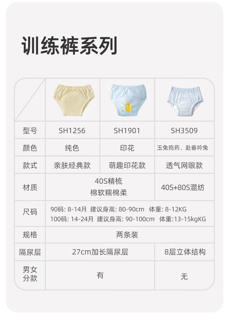 October Crystal Baby Potty Training Pants Baby Diaper Pants Washable and Waterproof Baby Girl-Solid Color 2 Pack 90 Size Recommended Weight 8-12KG