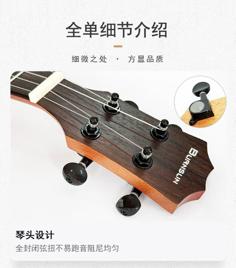 本森全单板尤克里里初学者新手入门尤克里里乌克丽丽小吉他成人 全单23英寸