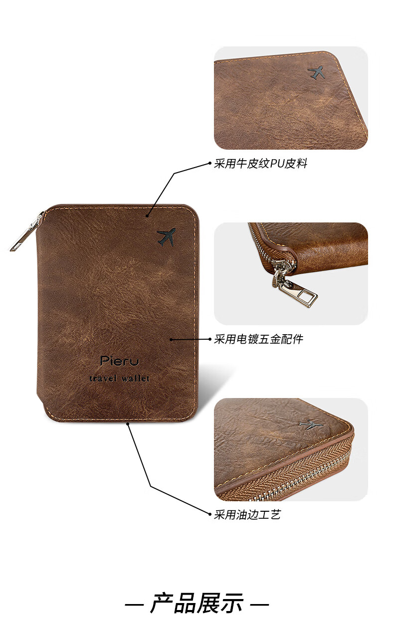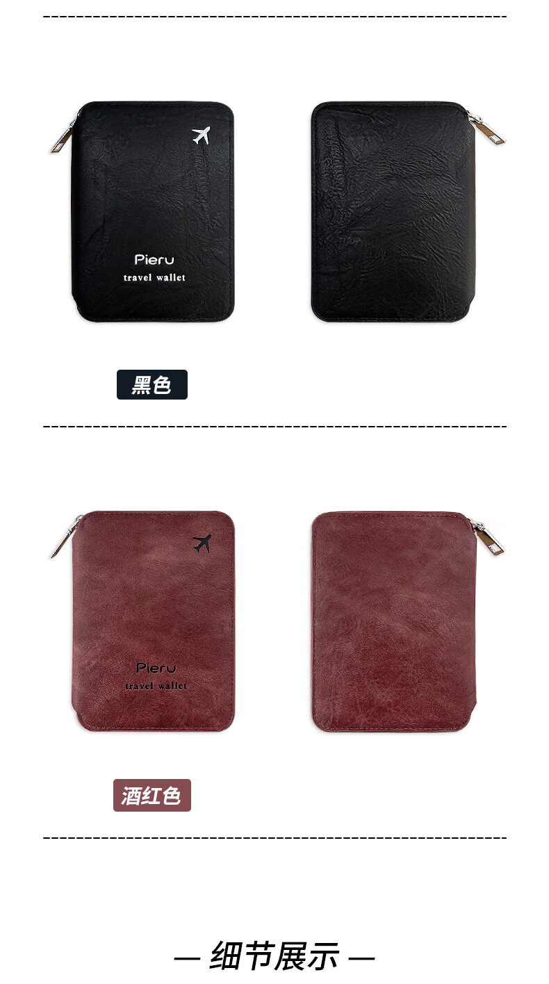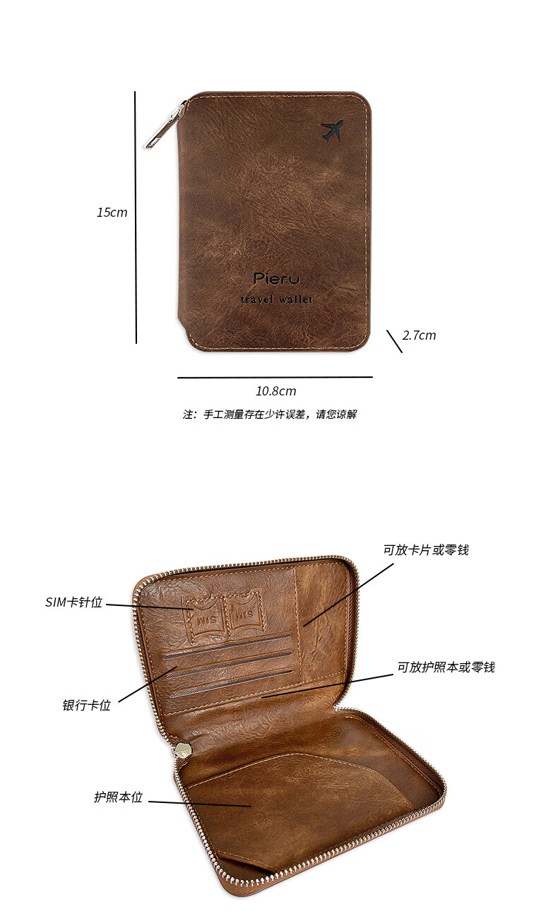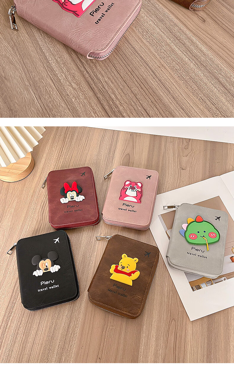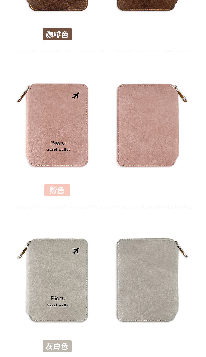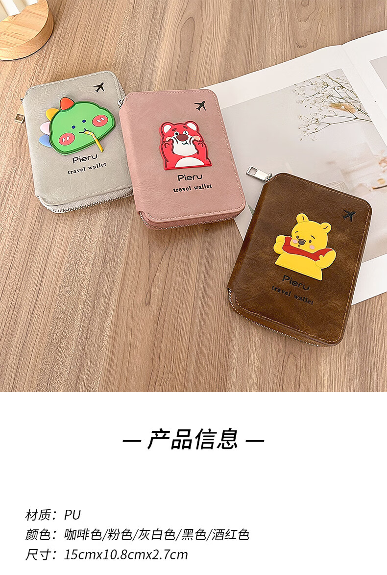 细草护照夹可爱拉链卡包证件收纳包护照保护套出国留学旅游便携简约包 小恐龙灰白色