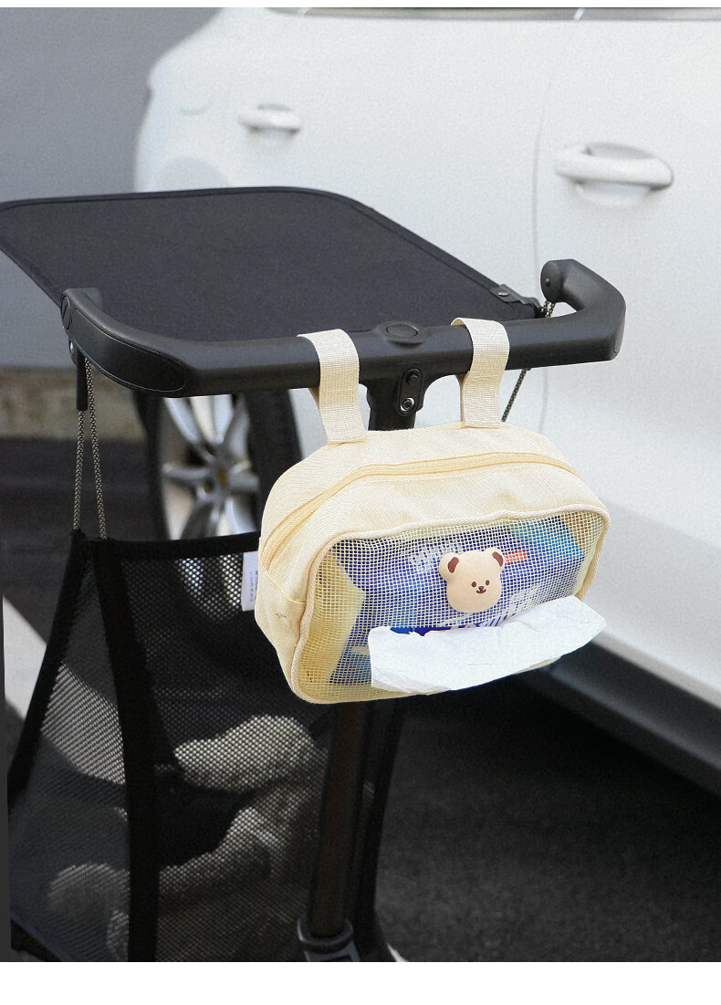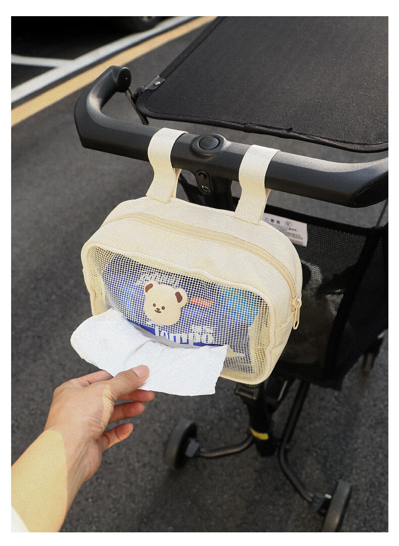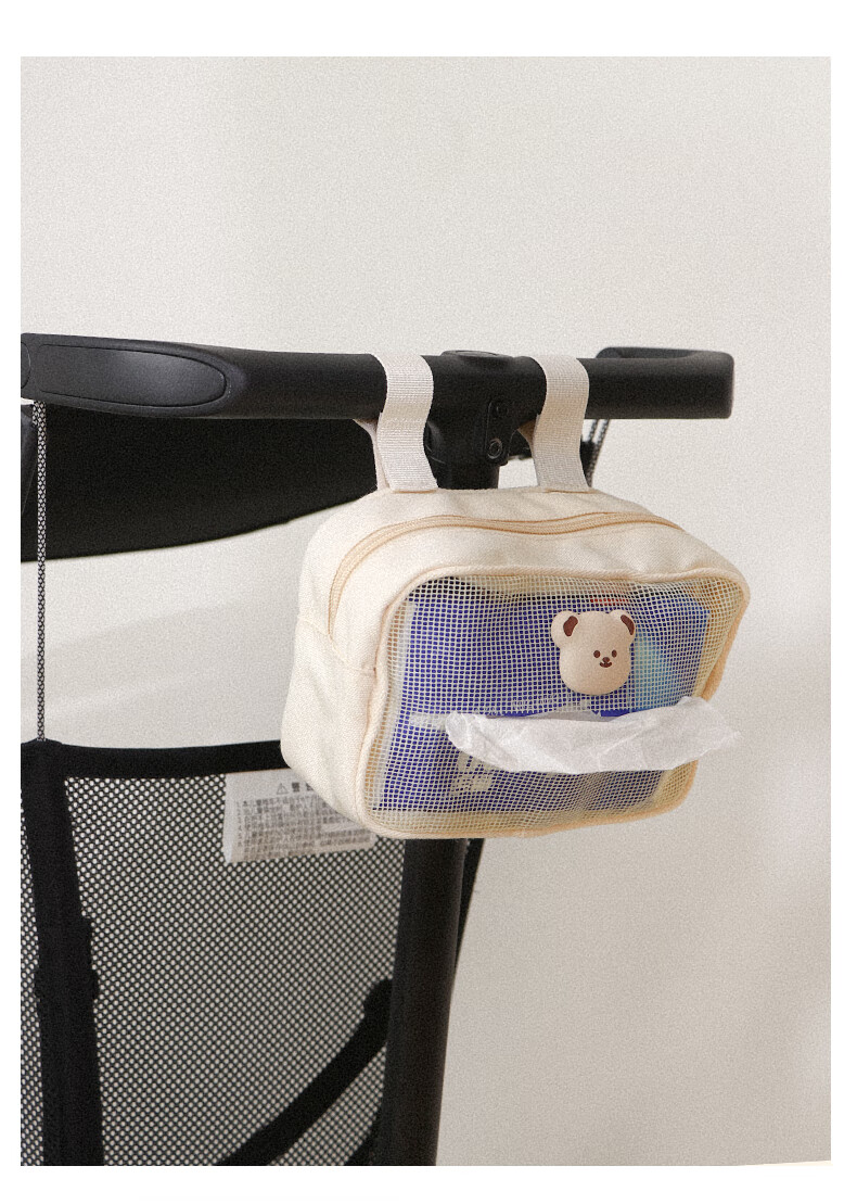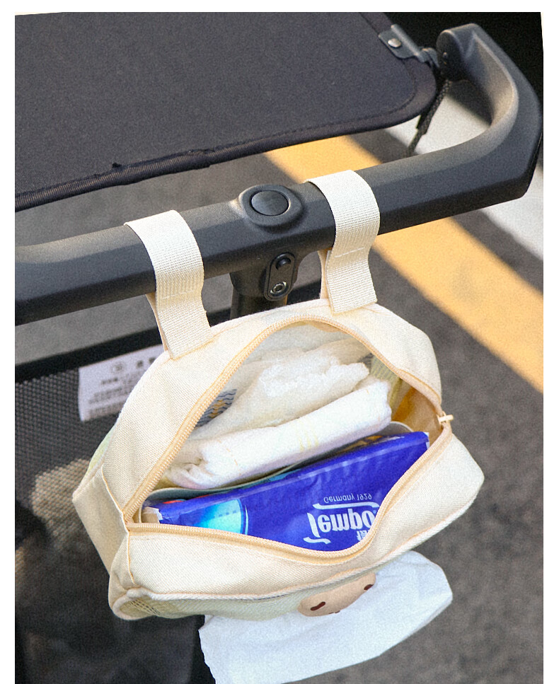 Sac de rangement d'artefact de marche de bébé heureux sac suspendu Xiaohuzi poussette sac de rangement de mouchoirs de poussette de bébé sac suspendu de poussette sac de mouchoirs en coton ours crème universel