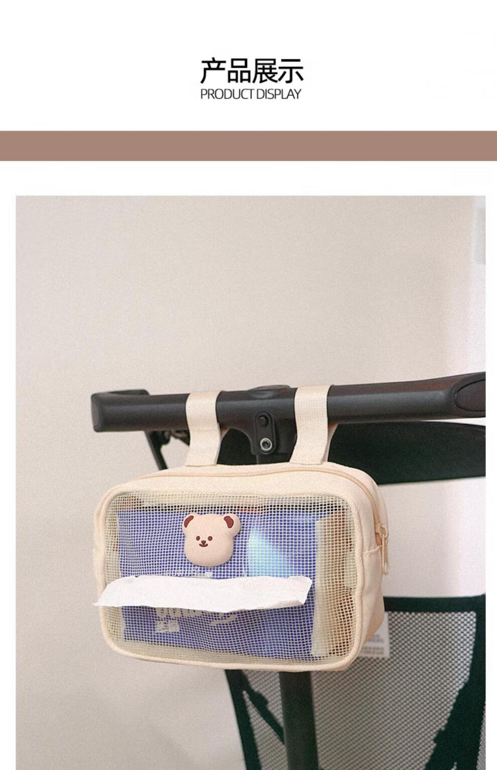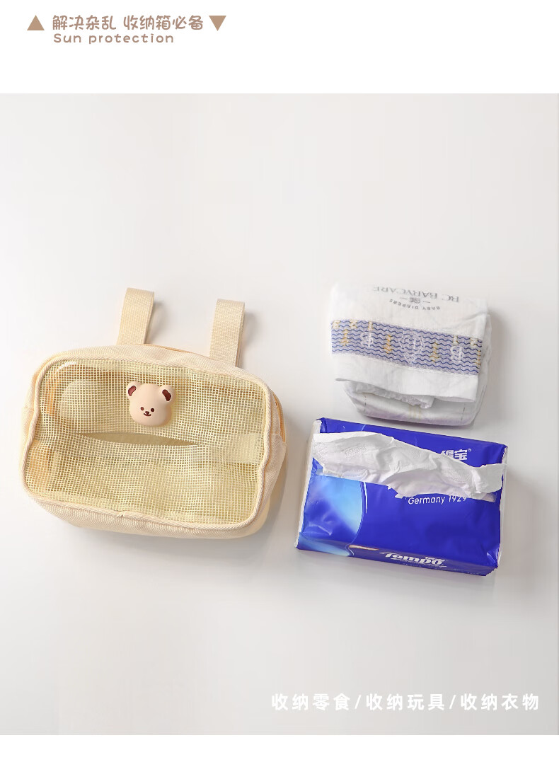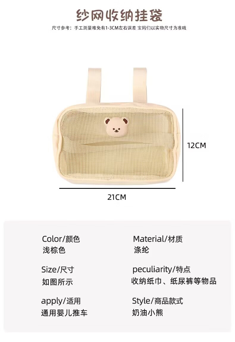 Sac de rangement d'artefact de marche de bébé heureux sac suspendu Xiaohuzi poussette sac de rangement de mouchoirs de poussette de bébé sac suspendu de poussette sac de mouchoirs en coton ours crème universel