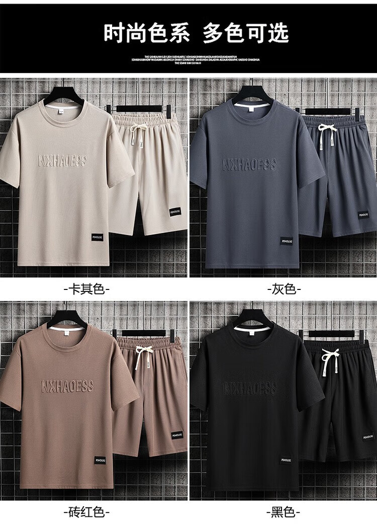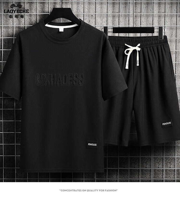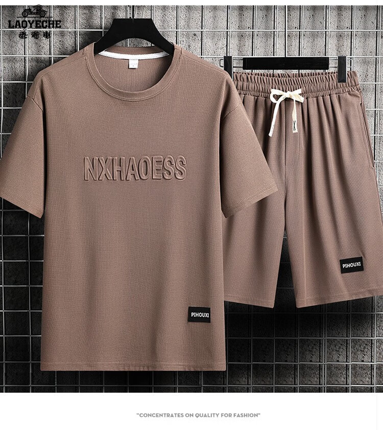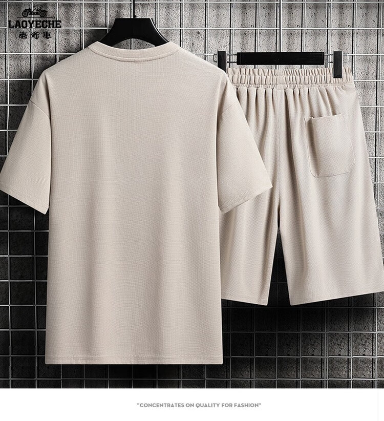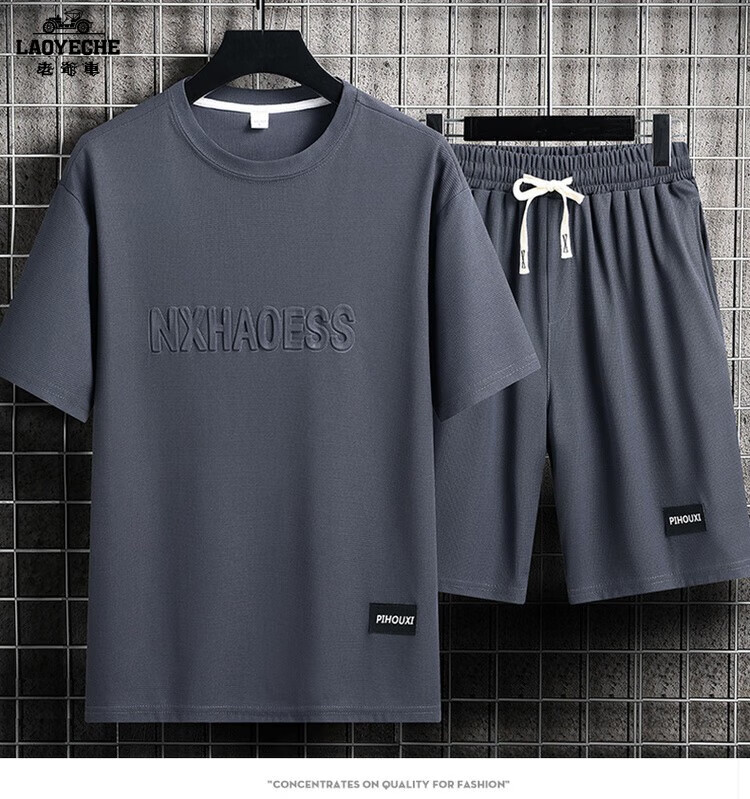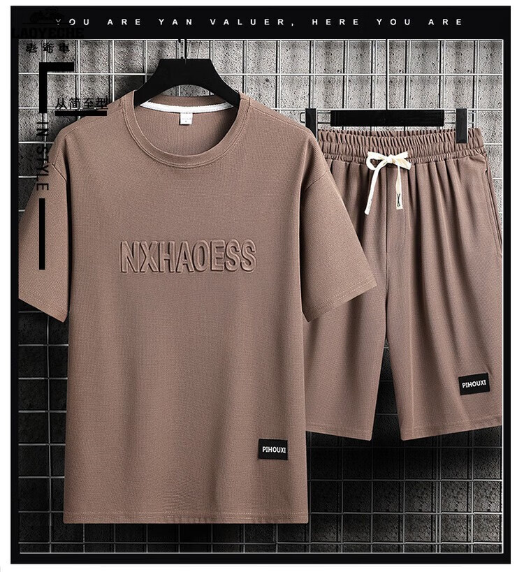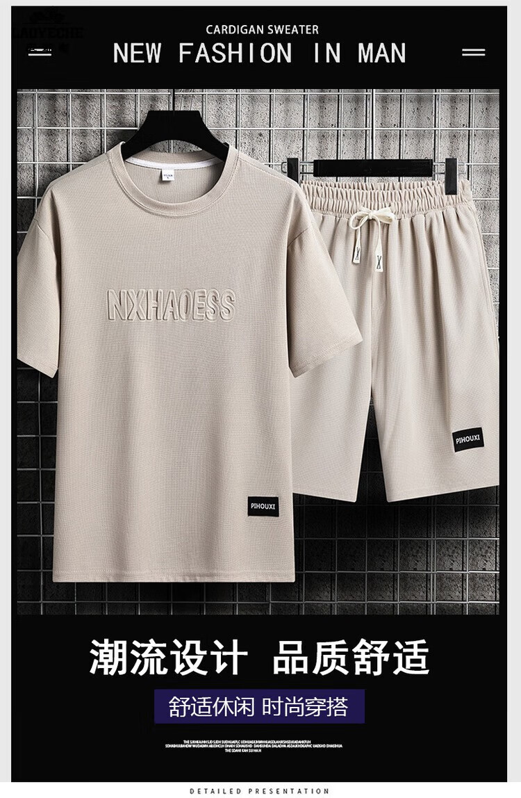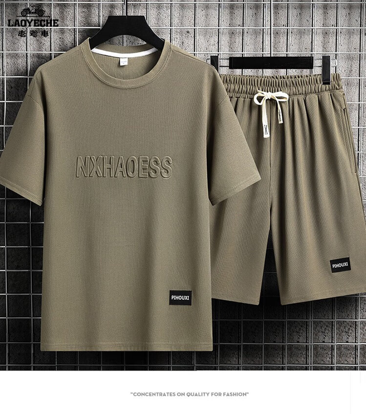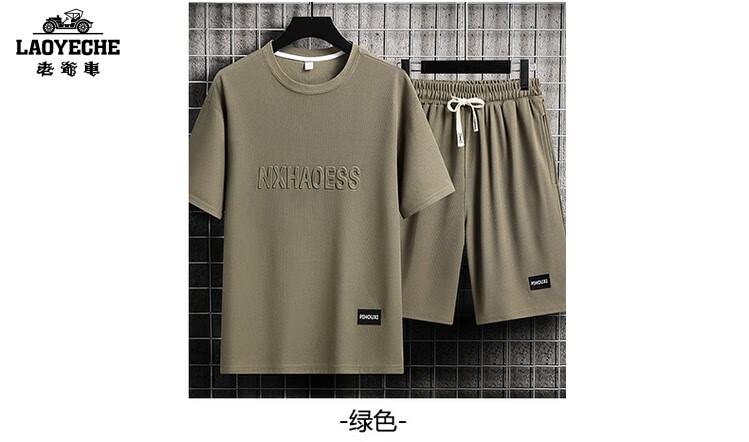 Classic car (LAOYECHE) high-end casual sports suit men's summer fashion brand ice silk T-shirt thin shorts large size short-sleeved handsome matching two suit-TZ829 khaki top + pants M recommended 90-110Jin Jin equals 0.5 kg