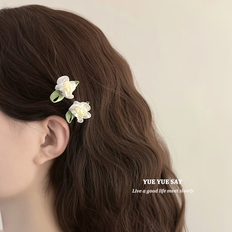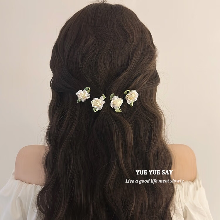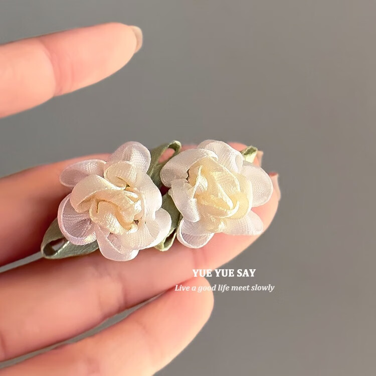 松窗梦语 少女与茉莉 复古氛围感缎面花朵发夹 气质小众刘海边夹碎发卡发 小花朵发夹两个装
