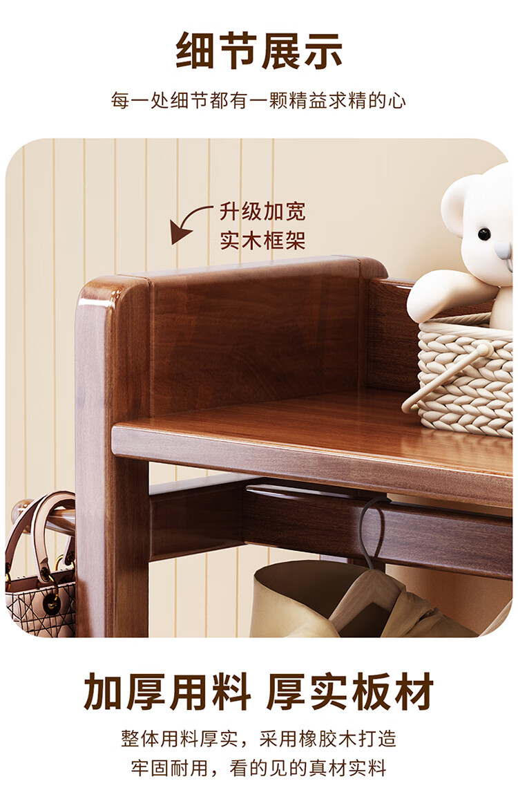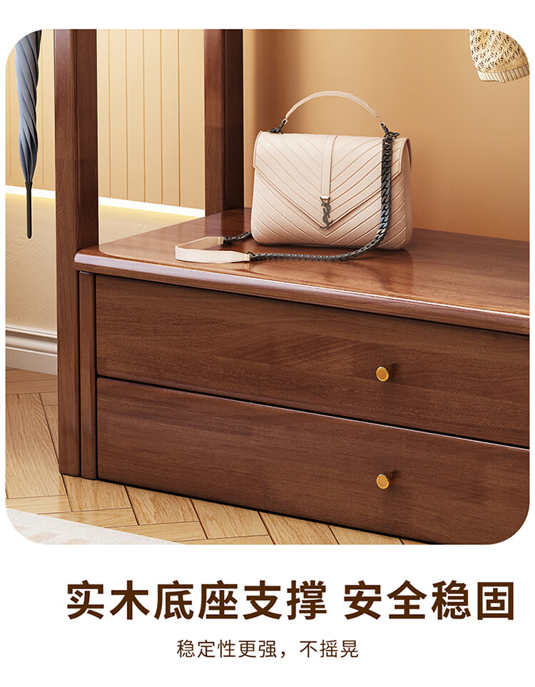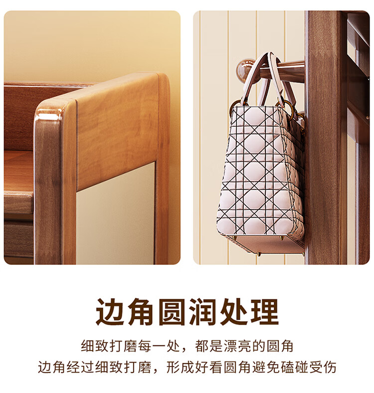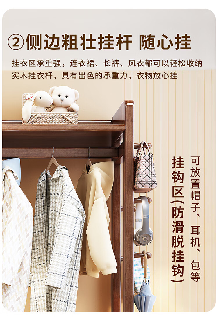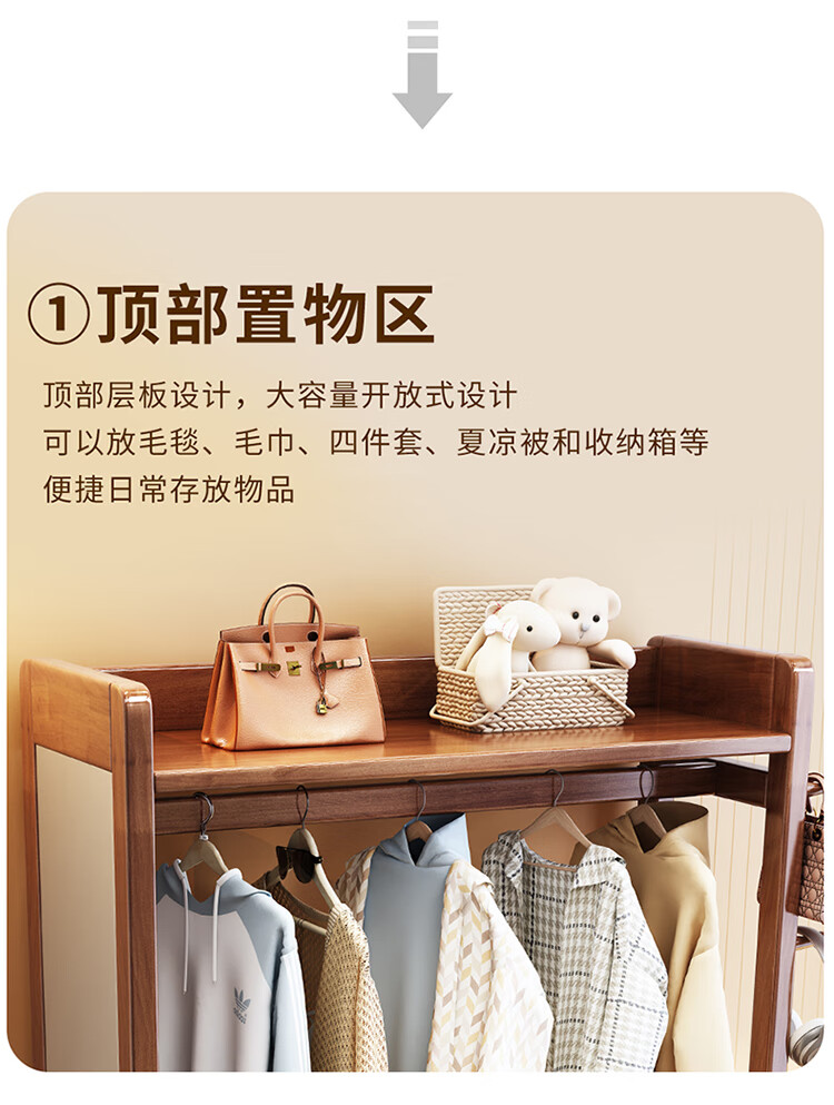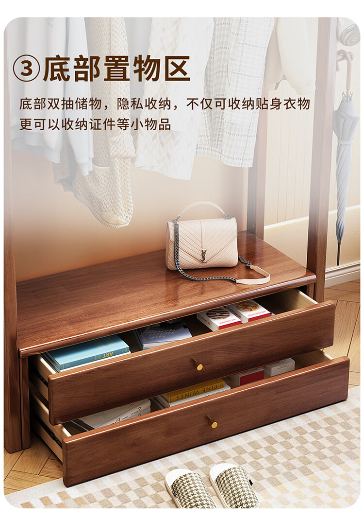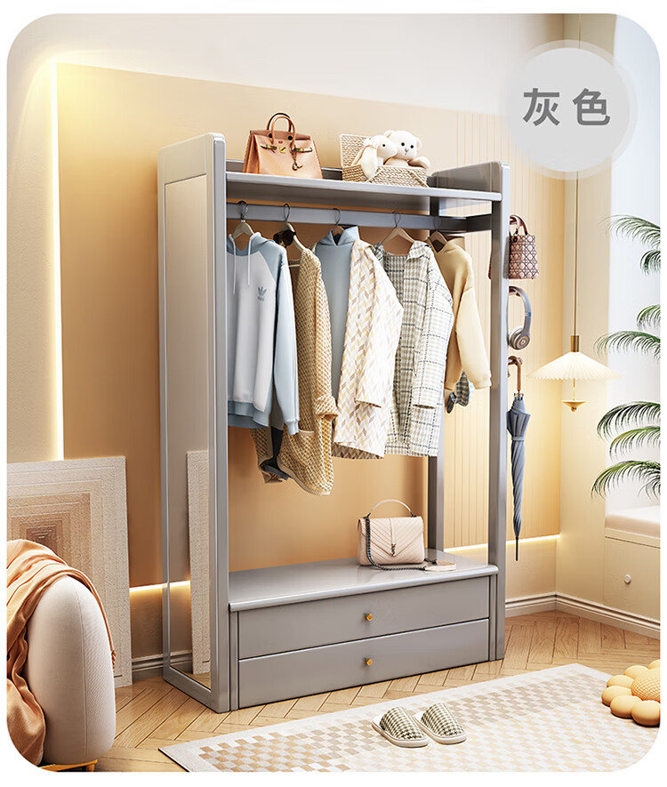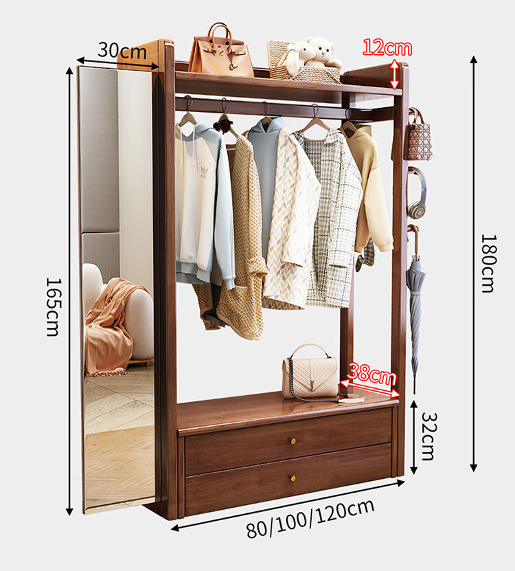 普莱蒂旺衣架置物架落地全实木挂家用卧室带镜子储物简约衣帽架穿衣镜多功 实木环保原木色【100CM】 可折叠