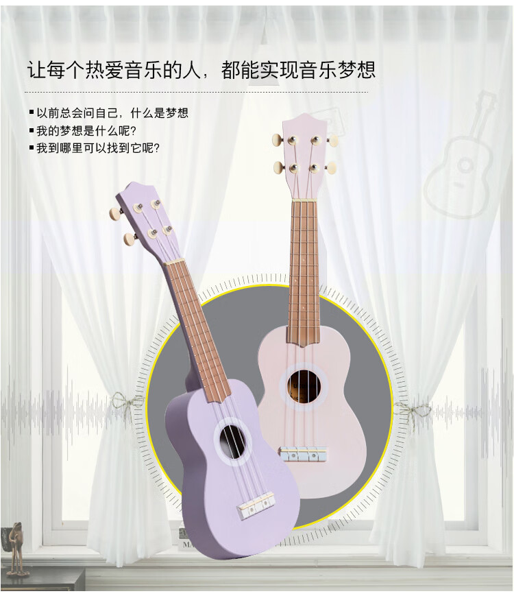 莫琳尤克里里初学男女生学生儿童高颜值入门乐器小吉他21寸感ins 21英寸 粉色 官方标配