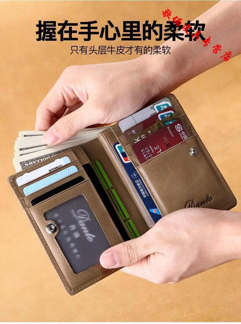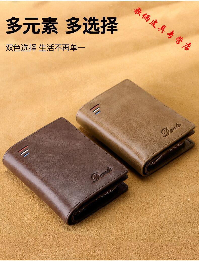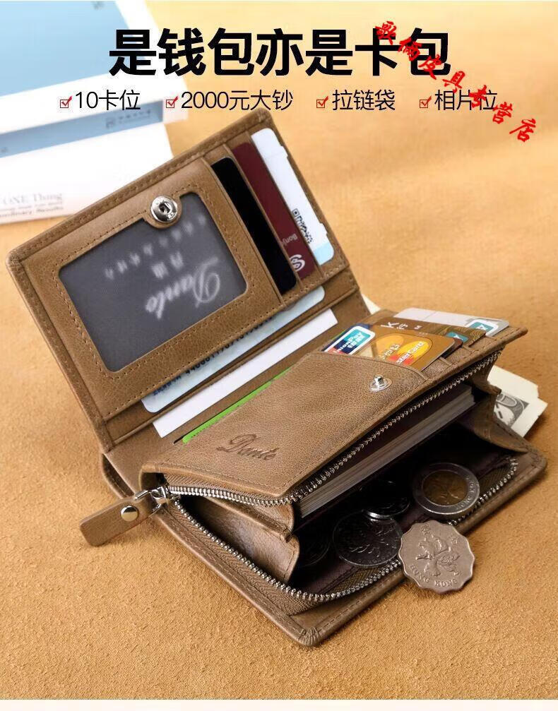 casa-kups真皮钱包男短款拉链复古头层牛皮零钱卡包驾驶证一体皮夹 咖啡色(复古头层牛皮