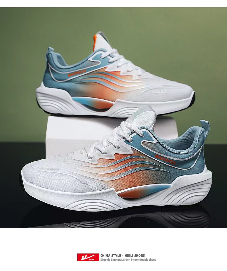 Pull back new men's shoes summer mesh shoes men's breathable sports shoes thin running mesh shoes thick sole versatile E719C white light blue orange 41