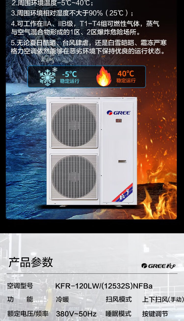 格力(GREE)防爆空调5匹特种专业仓库粉尘车间防静电柜机定频冷暖380V【货期25天】KFR-120LW/(12532S)NFBa 5匹 套装 380V 一价全含:含25米铜管