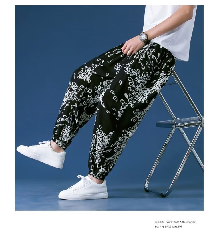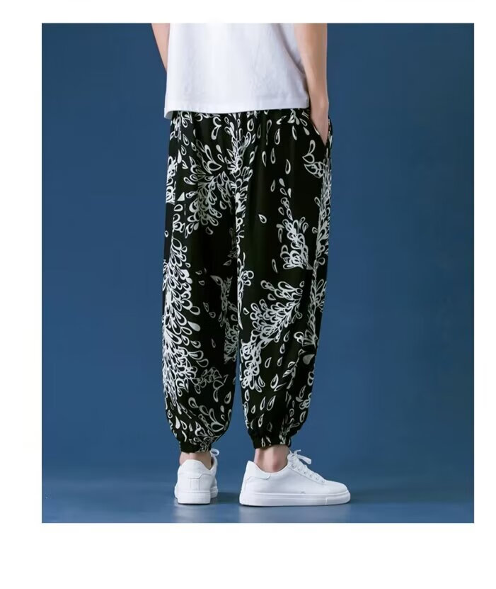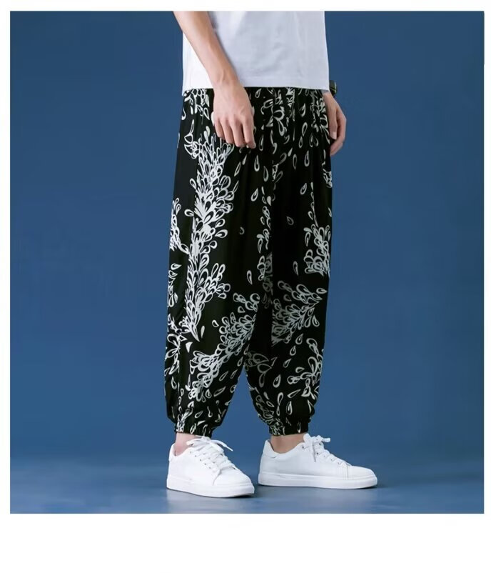 界模潮裤子男夏季复古印花哈伦灯笼裤潮牌宽松束脚休闲九分裤中国风裤子 C318-图色 4XL