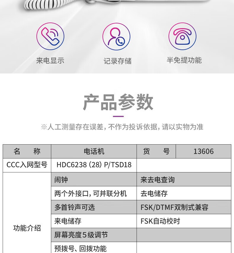 Deli landline telephone wired office hotel hotel home two-line fixed caller ID telephone landline wide screen black battery-free/13567