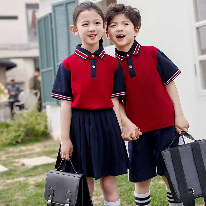 雷姆汀夏季中学小学生校服单件班服儿童英伦风毕业照服装幼儿园园服夏装 828白色T恤 100
