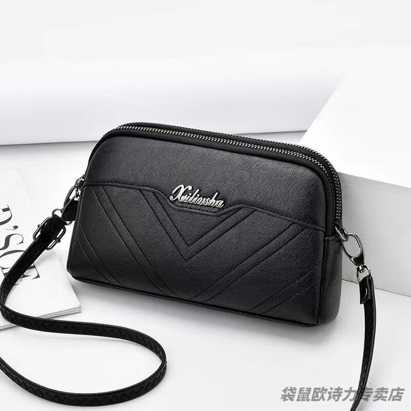 酷奇袋鼠双层小包单肩斜挎包女秋季中年妈妈女士钱包欧美贝壳手机包潮 叶子款