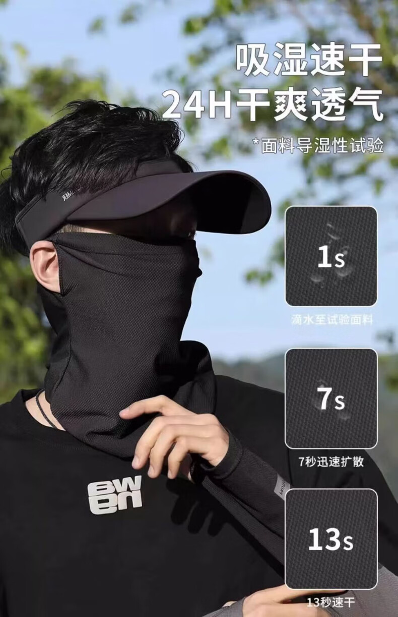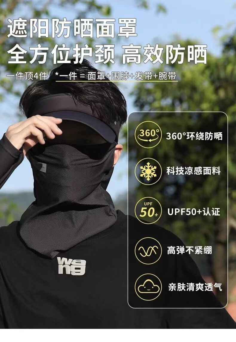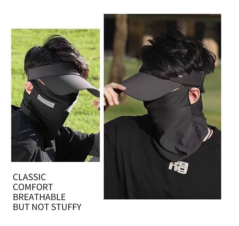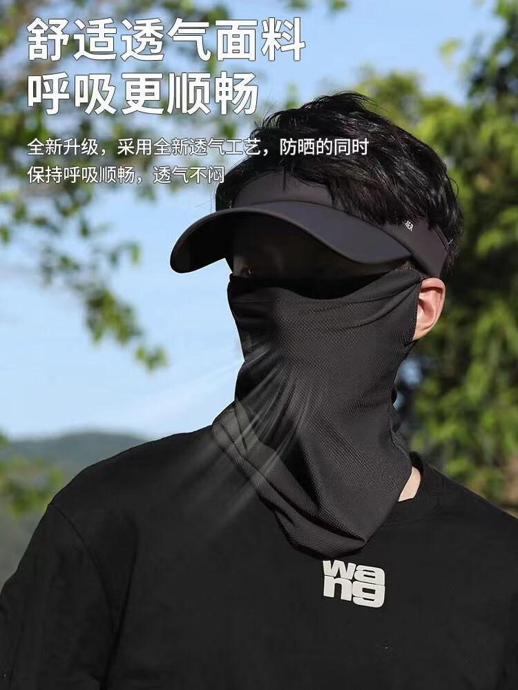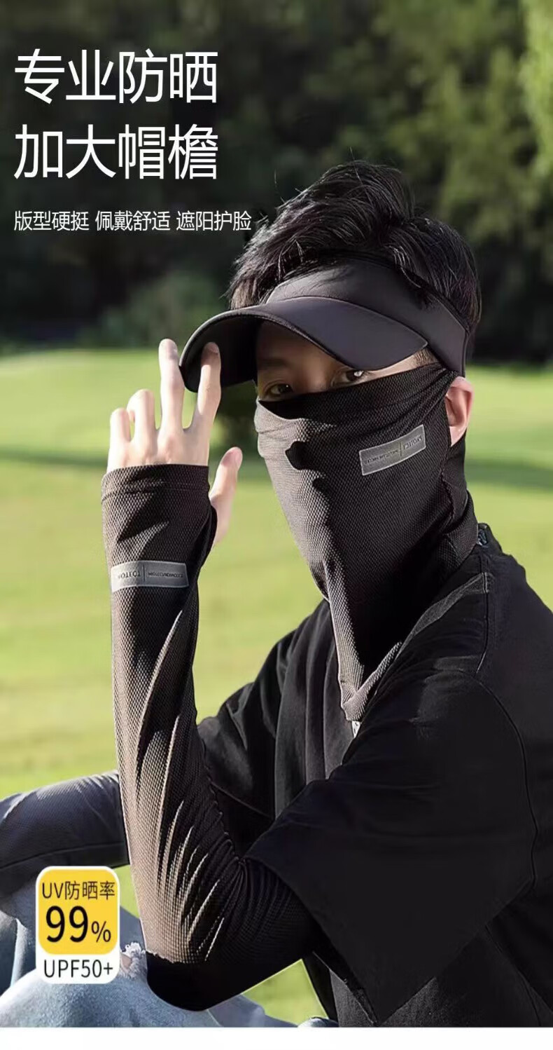 靓魅姿防晒帽子套装全护脸面罩冰袖夏季遮阳帽户外冰丝防晒三件套男 黑色 (帽子+冰袖+面罩)
