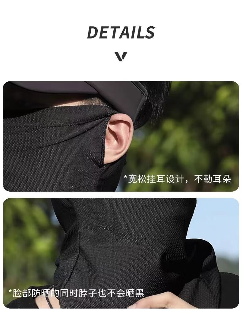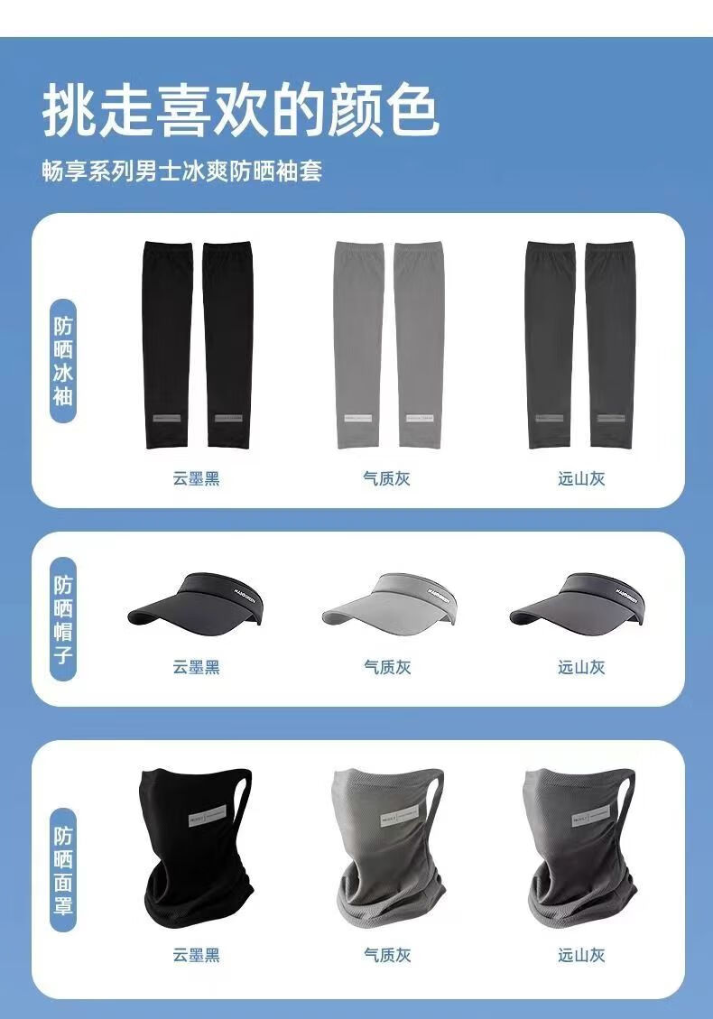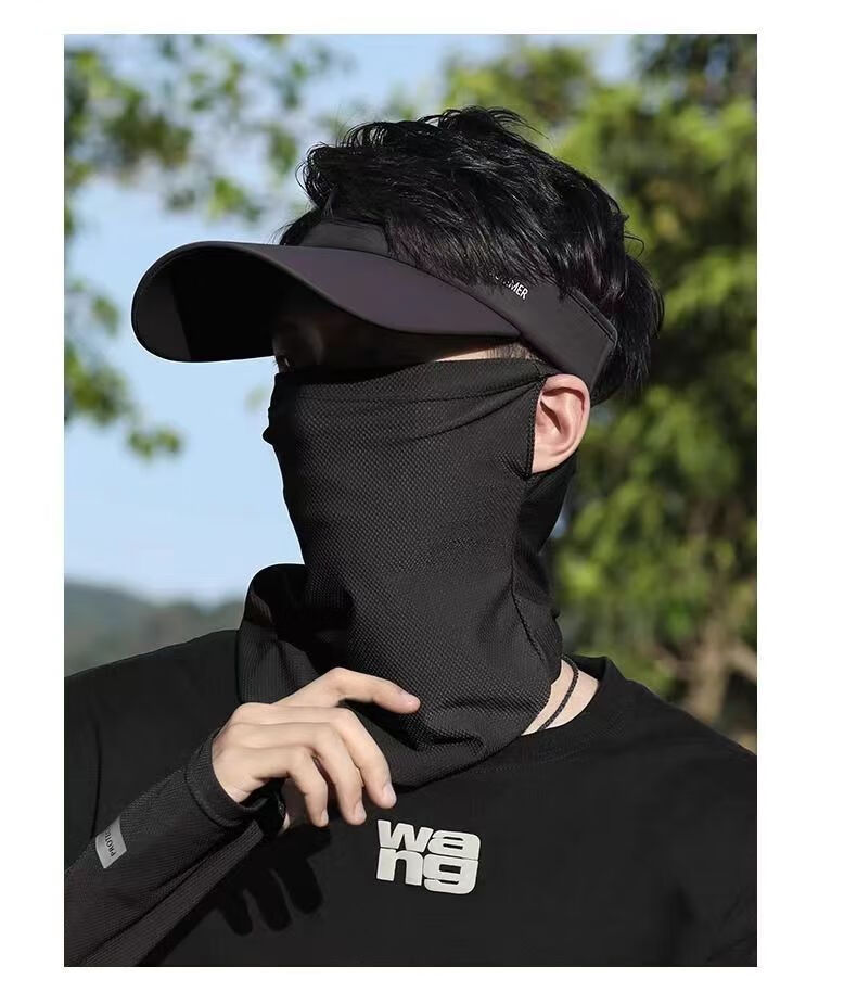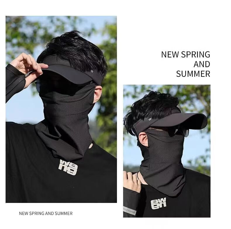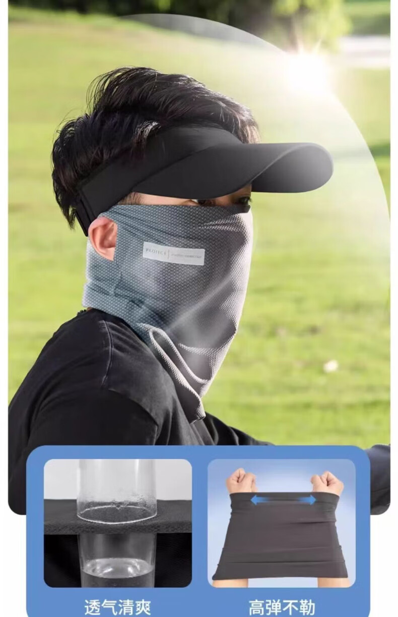 靓魅姿防晒帽子套装全护脸面罩冰袖夏季遮阳帽户外冰丝防晒三件套男 黑色 (帽子+冰袖+面罩)
