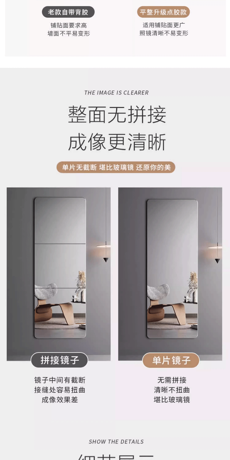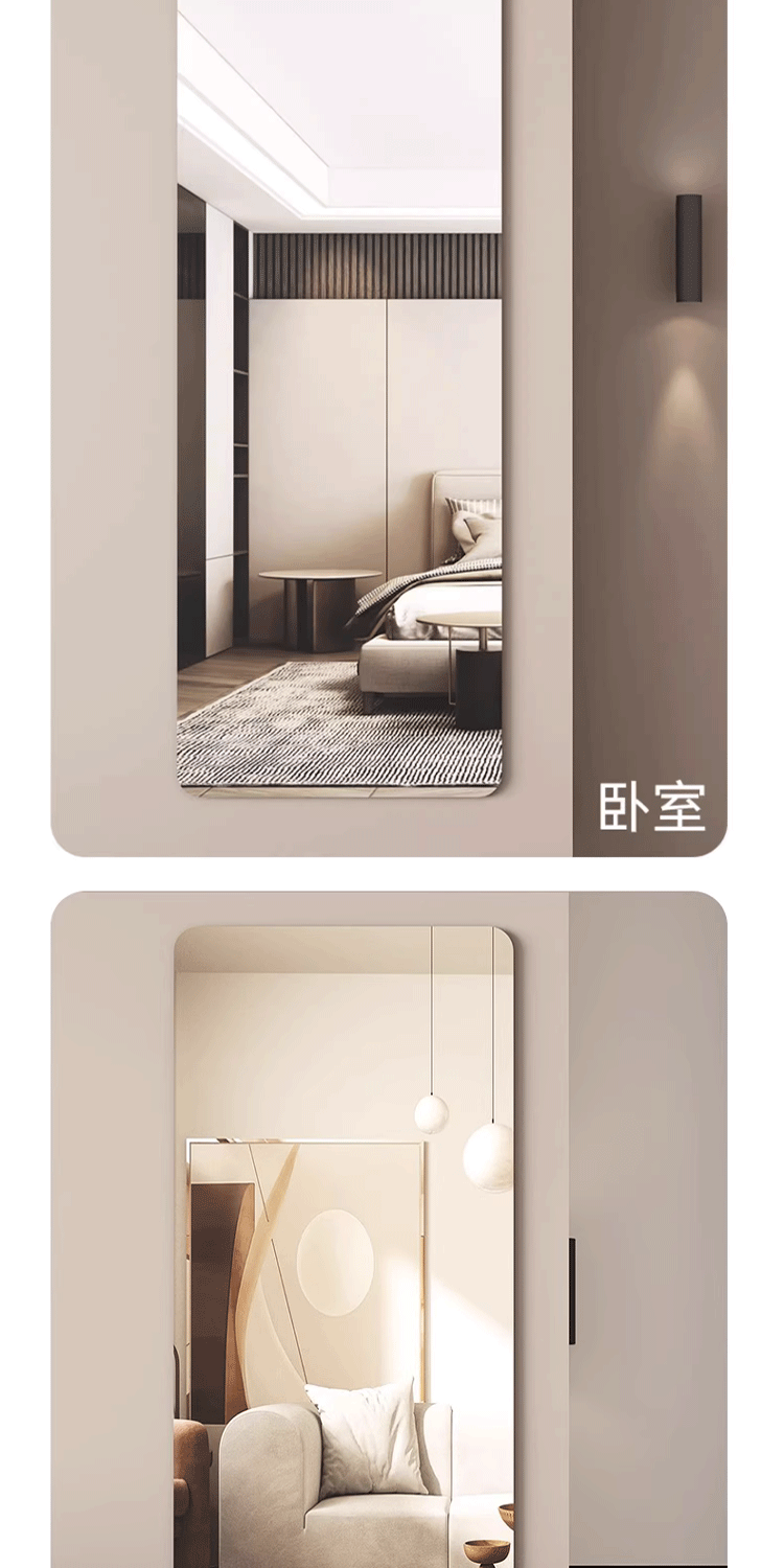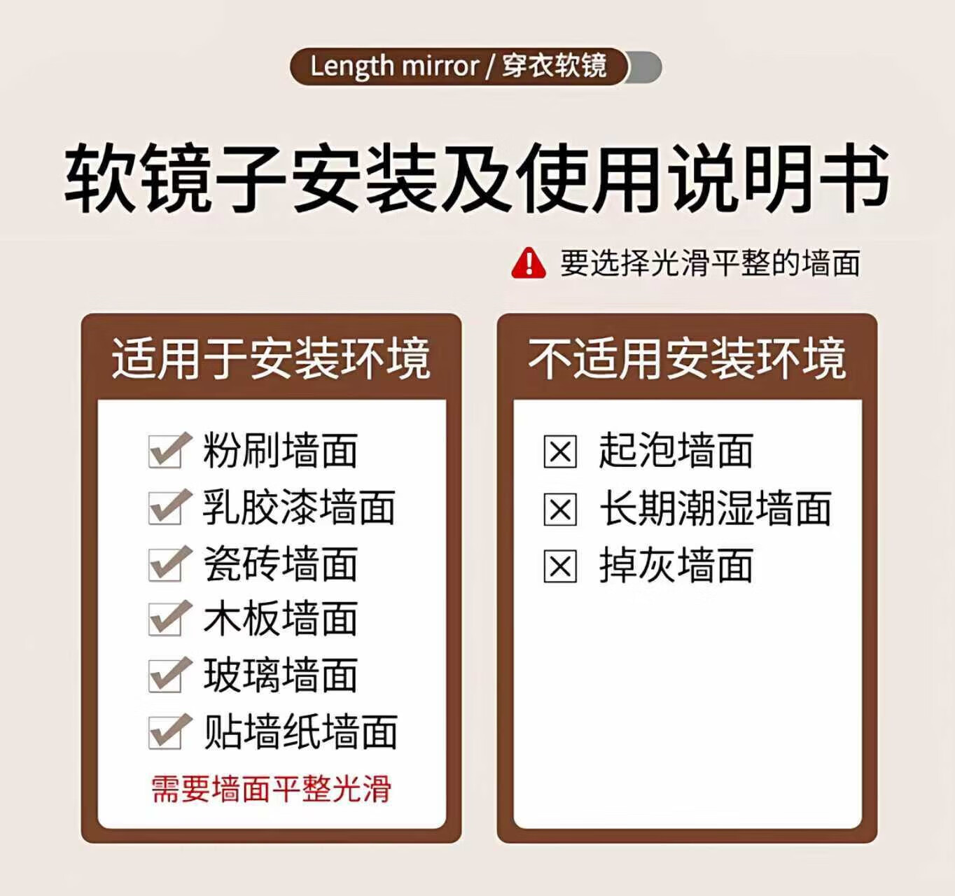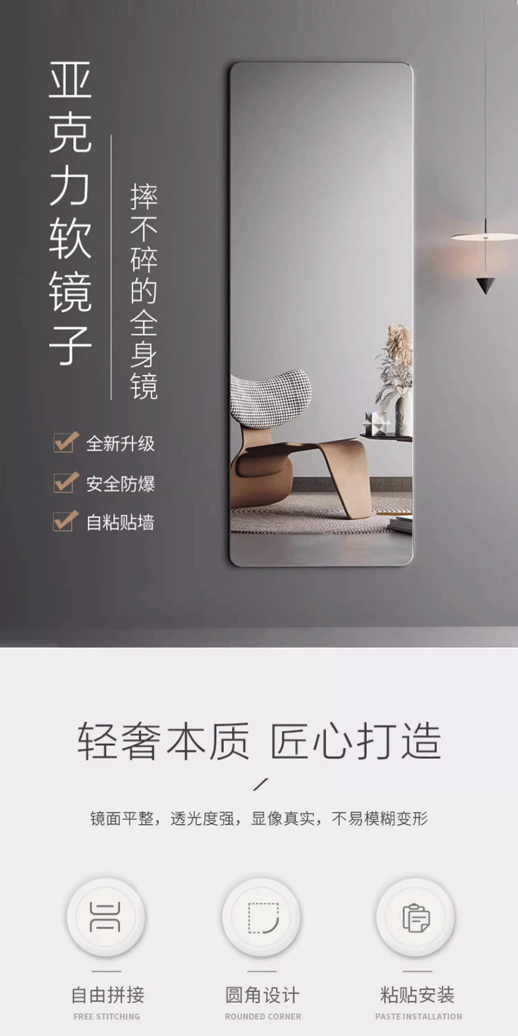 Feiwang Tengda espejo acrílico suave espejo de cuerpo entero autoadhesivo montado en la pared para el dormitorio del hogar etiqueta de espejo HD espejo adhesivo de pared engrosado 1,8 mm esquinas redondeadas a prueba de explosiones 80 * 180 cm etiqueta de pared libre