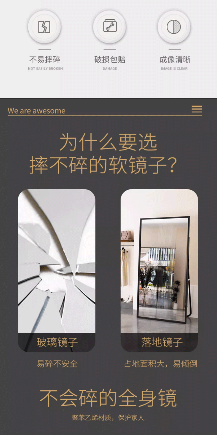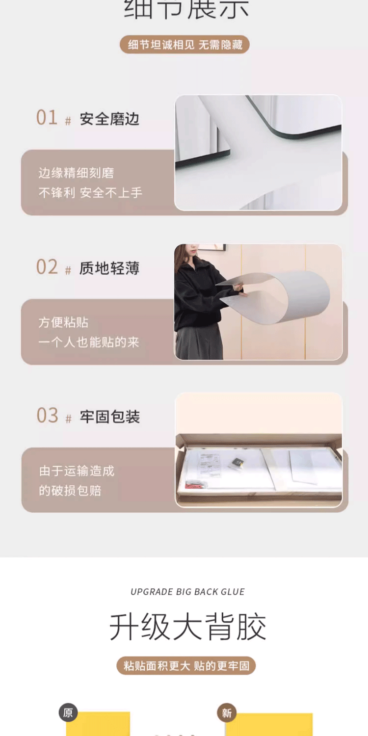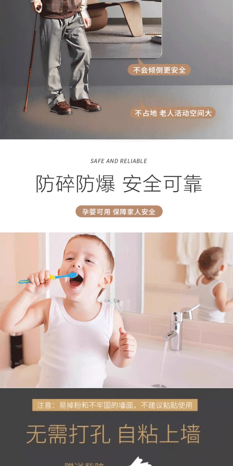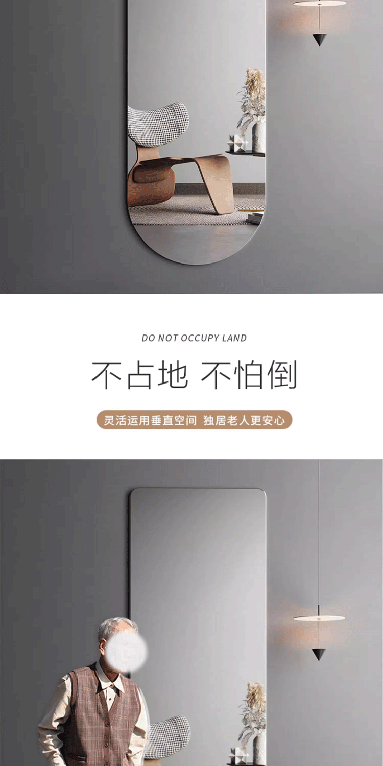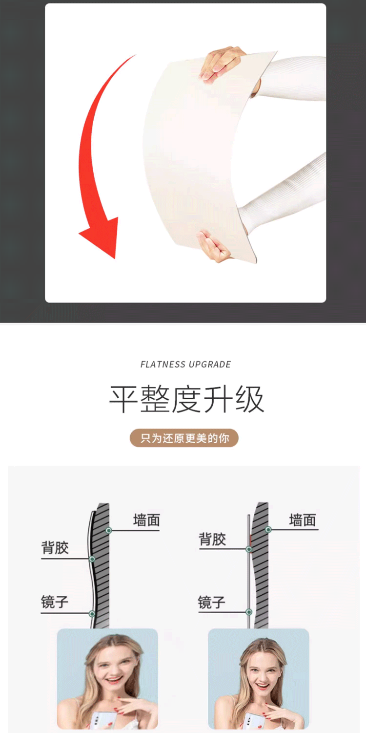 Feiwang Tengda espejo acrílico suave espejo de cuerpo entero autoadhesivo montado en la pared para el dormitorio del hogar etiqueta de espejo HD espejo adhesivo de pared engrosado 1,8 mm esquinas redondeadas a prueba de explosiones 80 * 180 cm etiqueta de pared libre