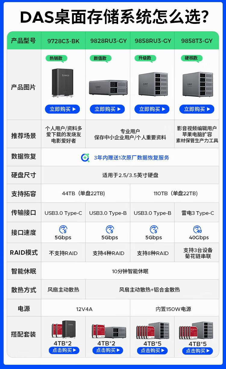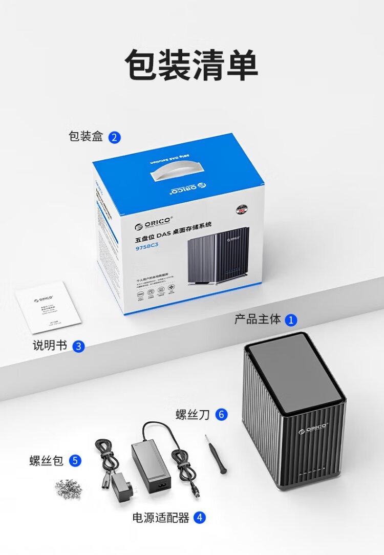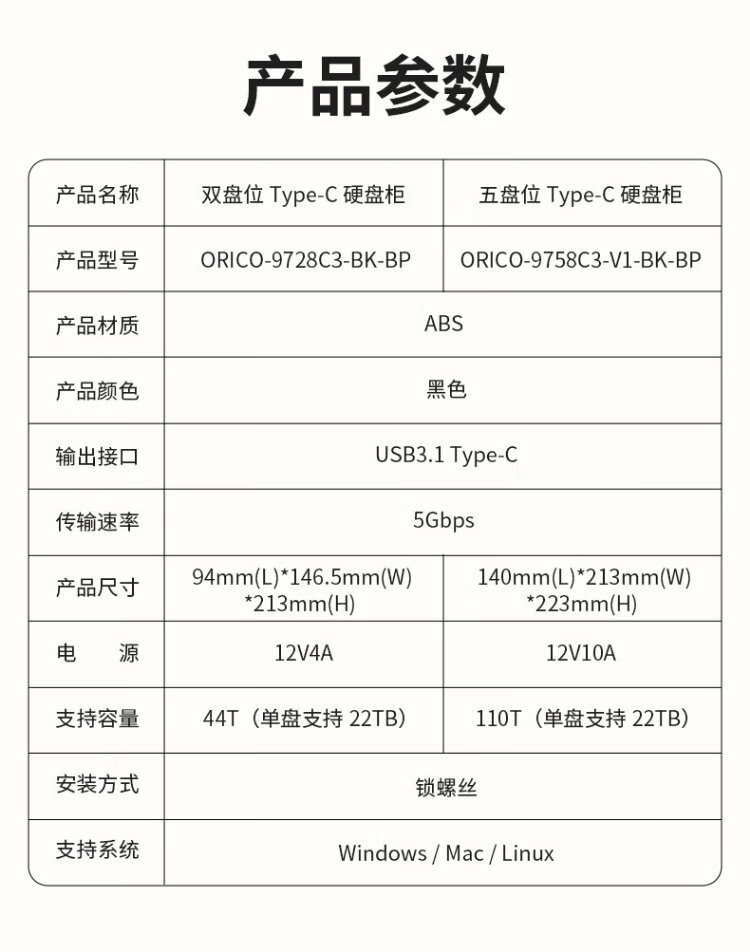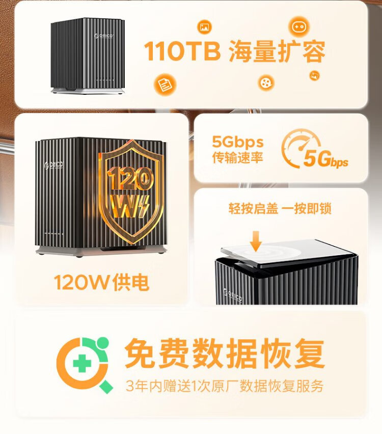 奥睿科(ORICO)硬盘柜2.5/3.5英寸机械硬盘硬盘盒存储读取sata多盘位外置外接存储盒子硬盘笼 【五盘位-不带盘版本】110TB扩容