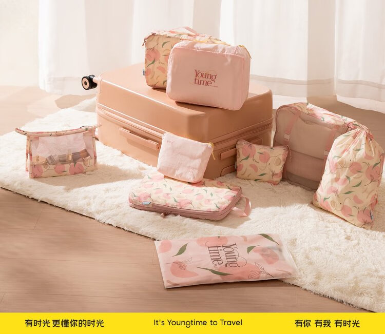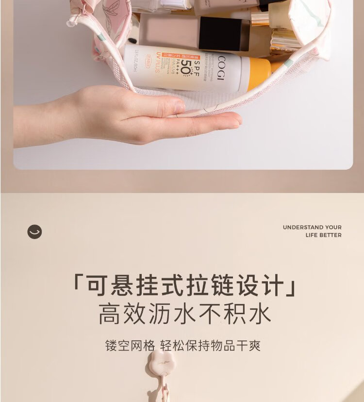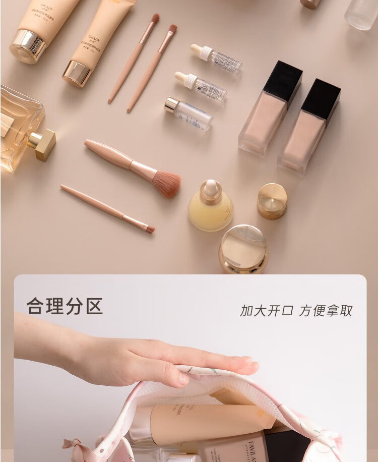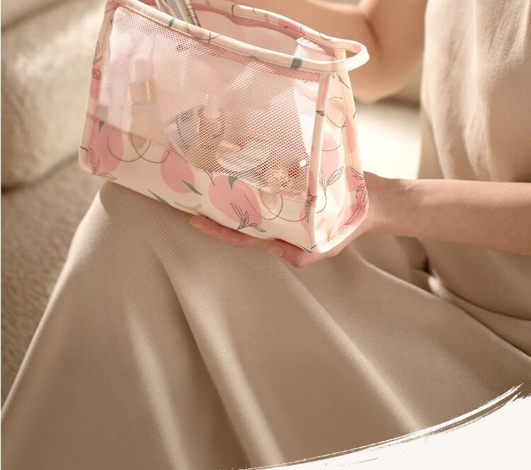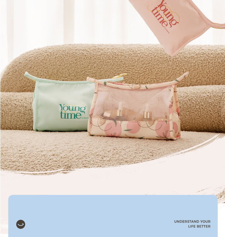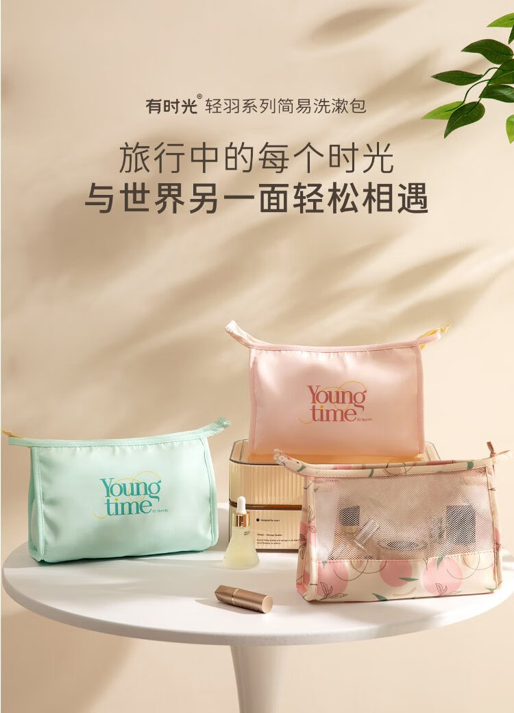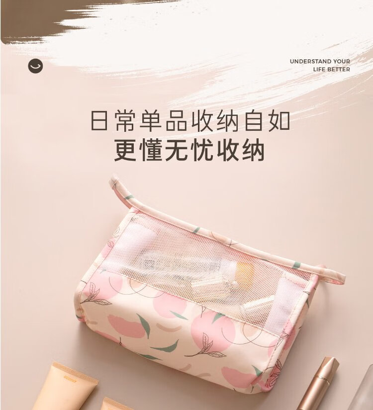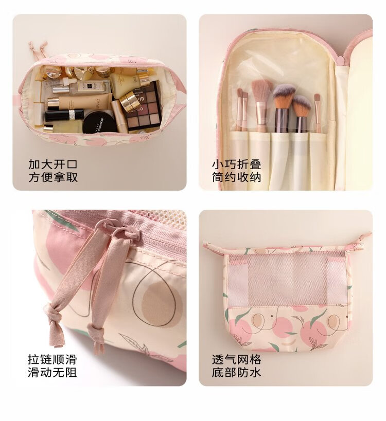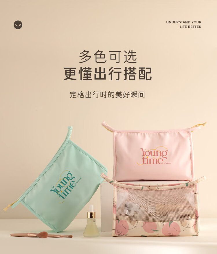 有时光干湿分离大容量化妆包女防水便携旅行收纳袋游泳洗澡洗漱包 蜜桃粉