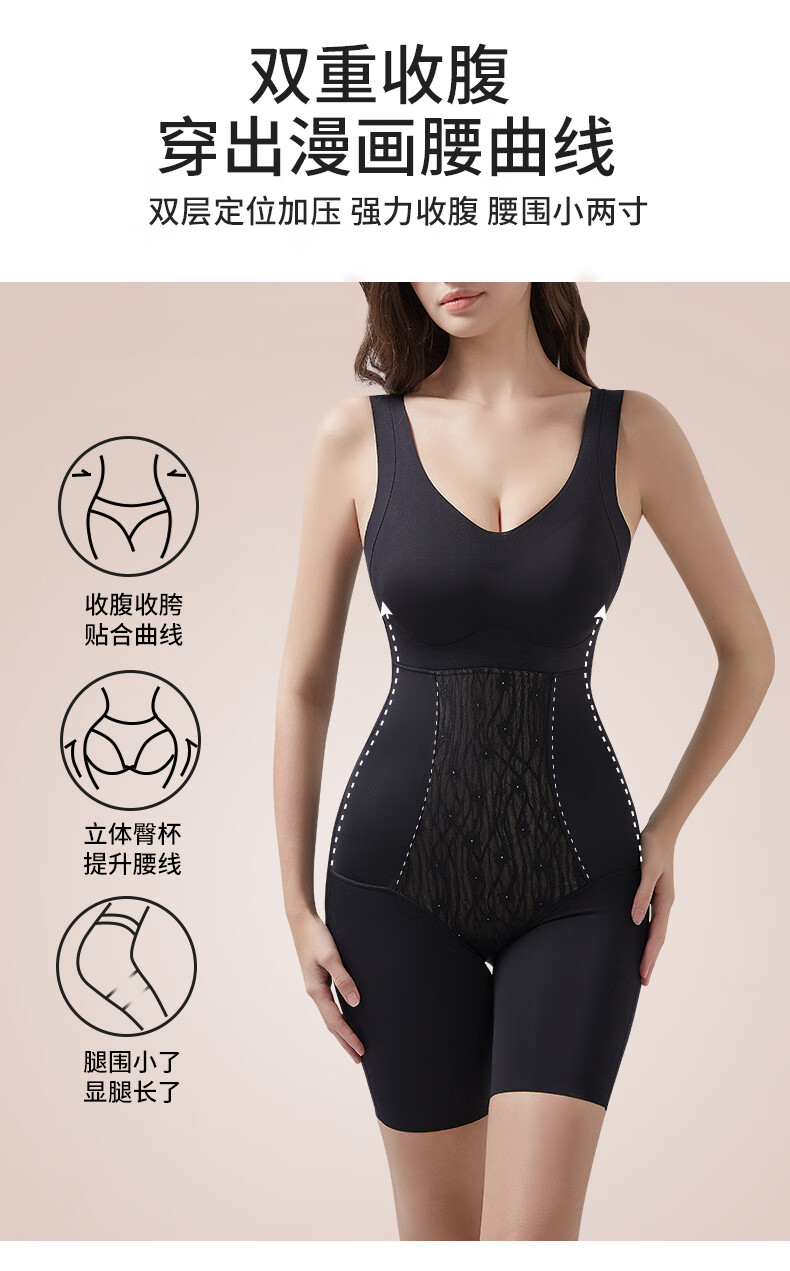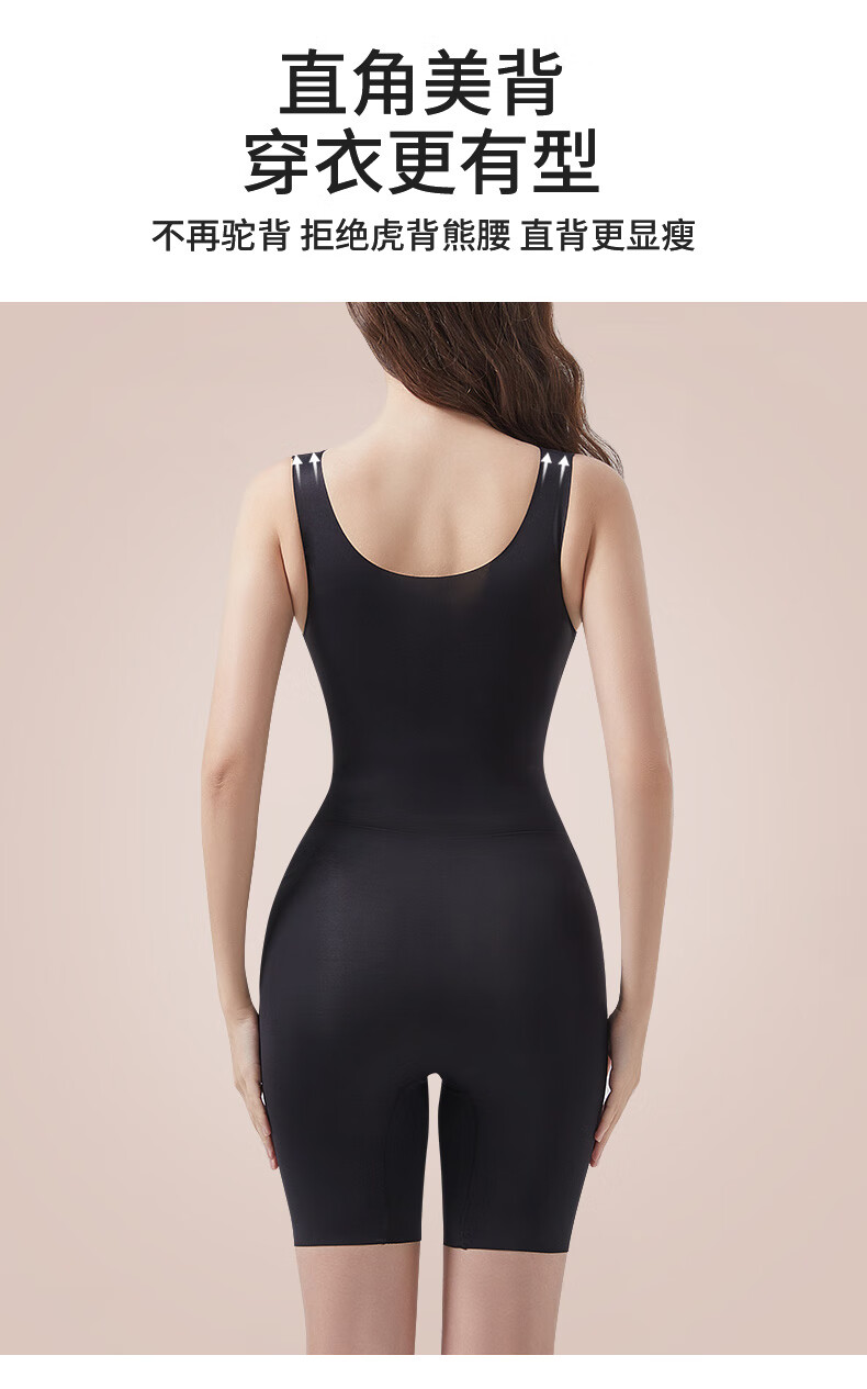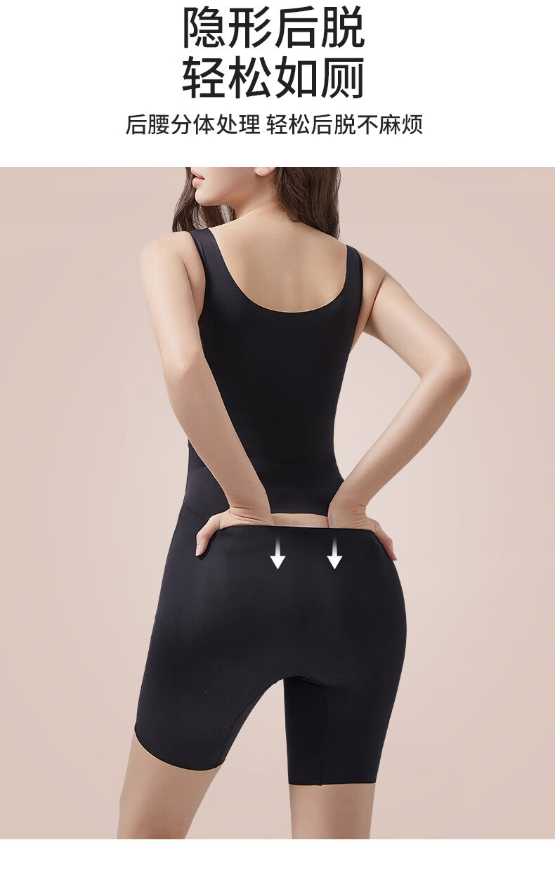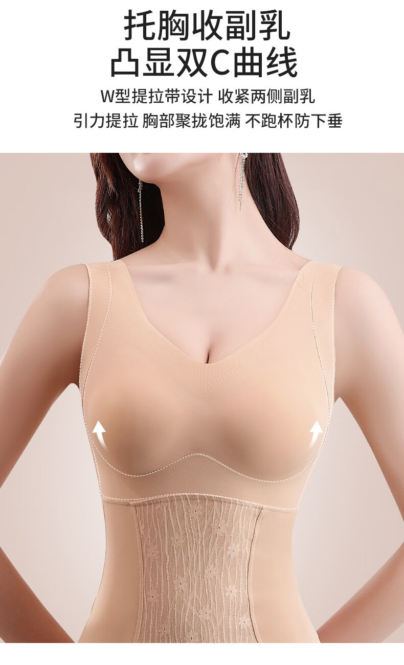 婷美免穿文胸连体塑身衣无痕反重力收腹收腰托胸高弹防垂束身衣 黑色 3XL