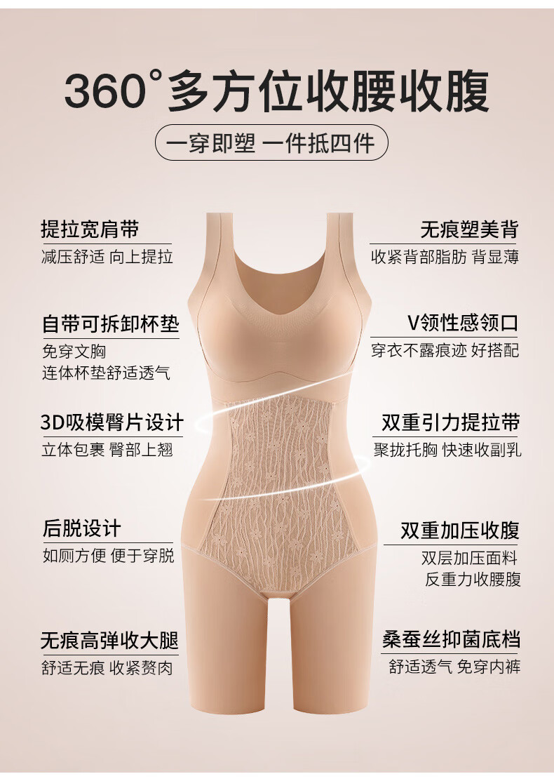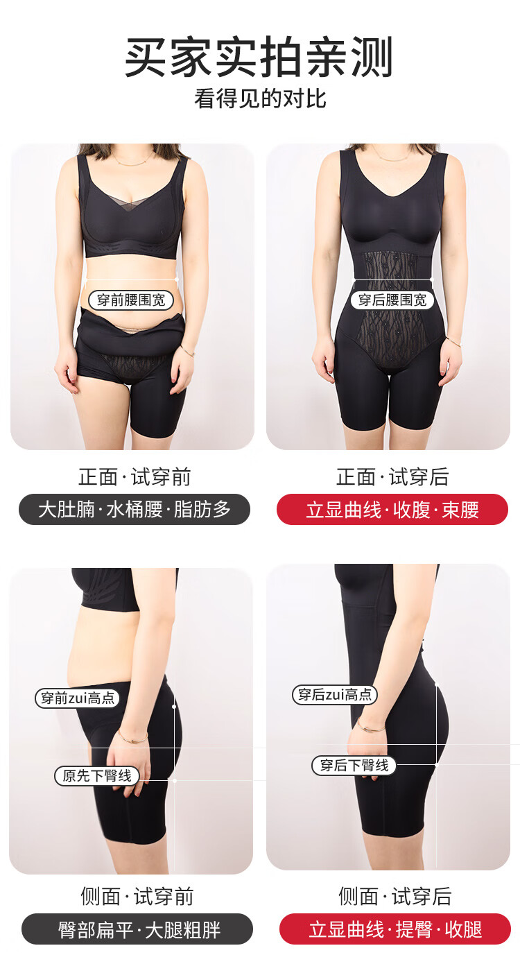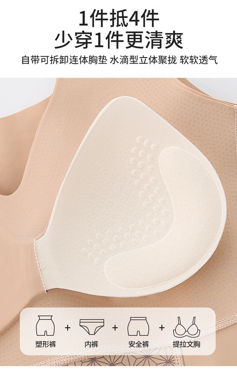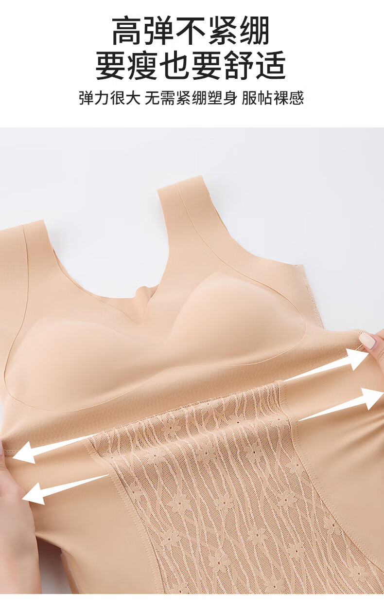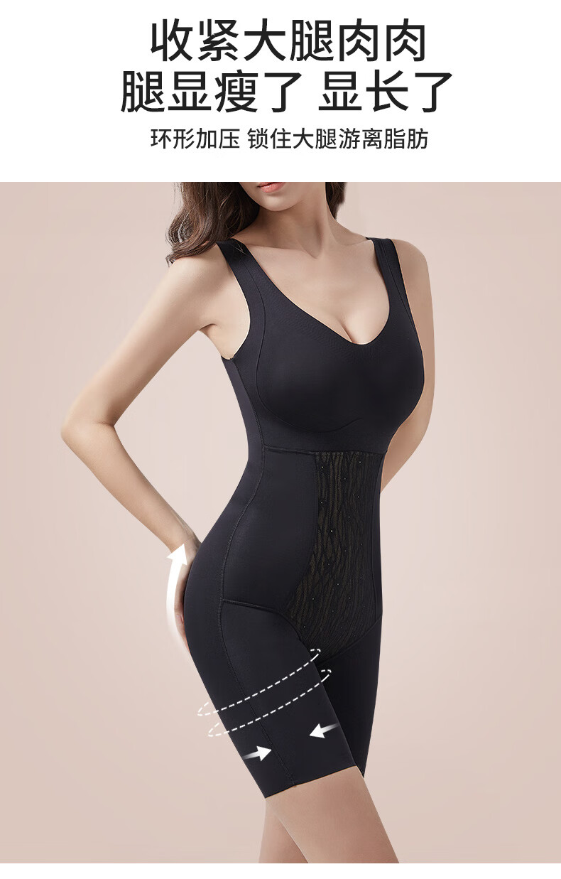婷美免穿文胸连体塑身衣无痕反重力收腹收腰托胸高弹防垂束身衣 黑色 3XL
