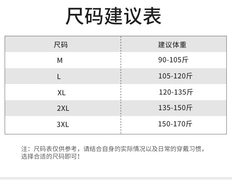 China (cm) 165 / 88-90 170 / 96-98 175 / 108-110 180 / 118-122 185 / 126-130