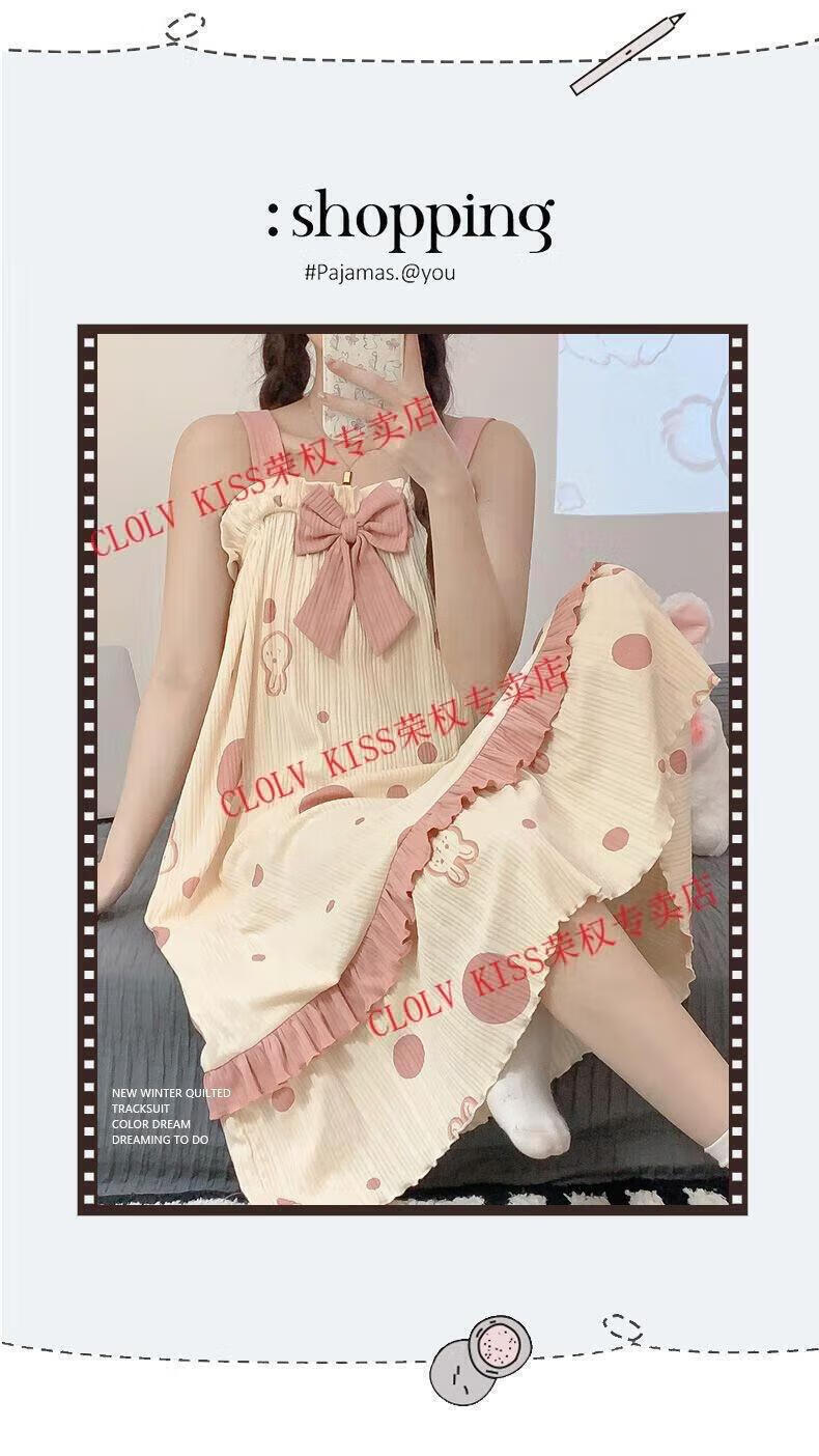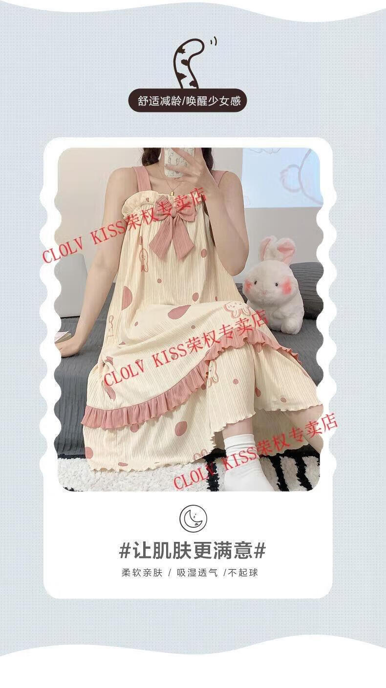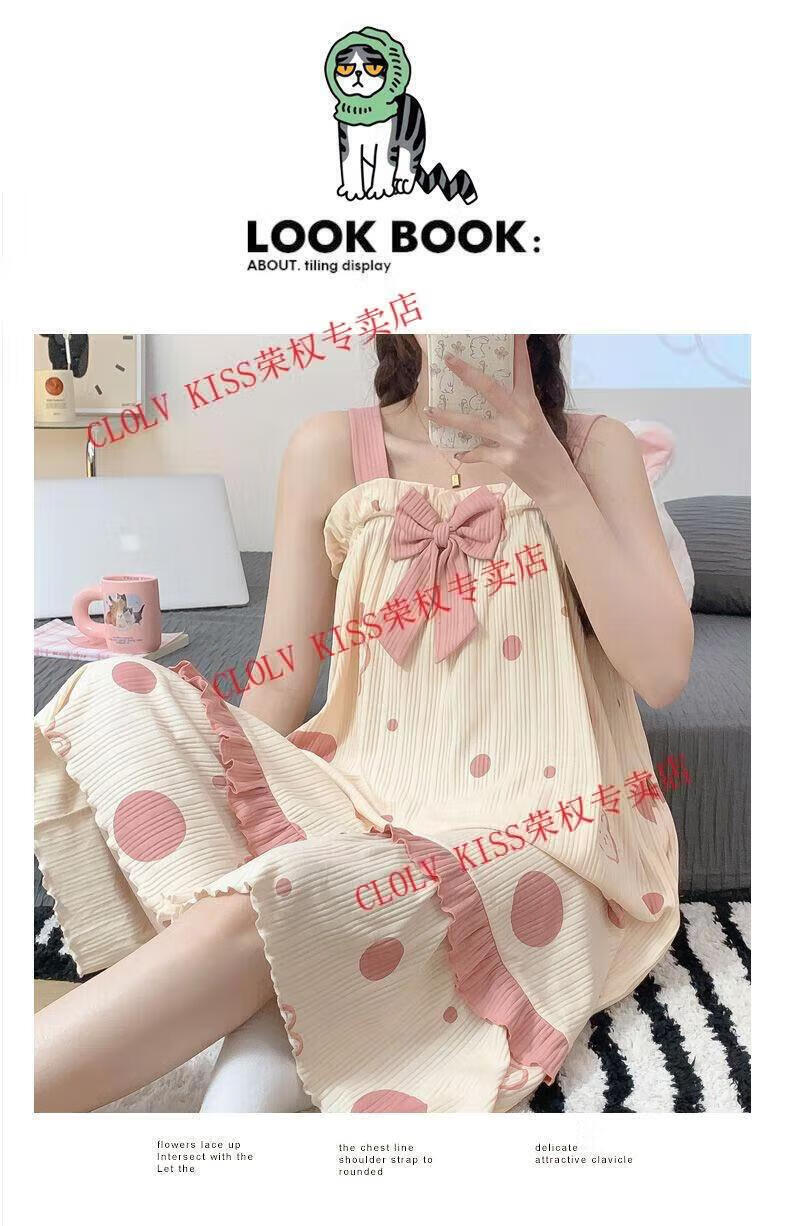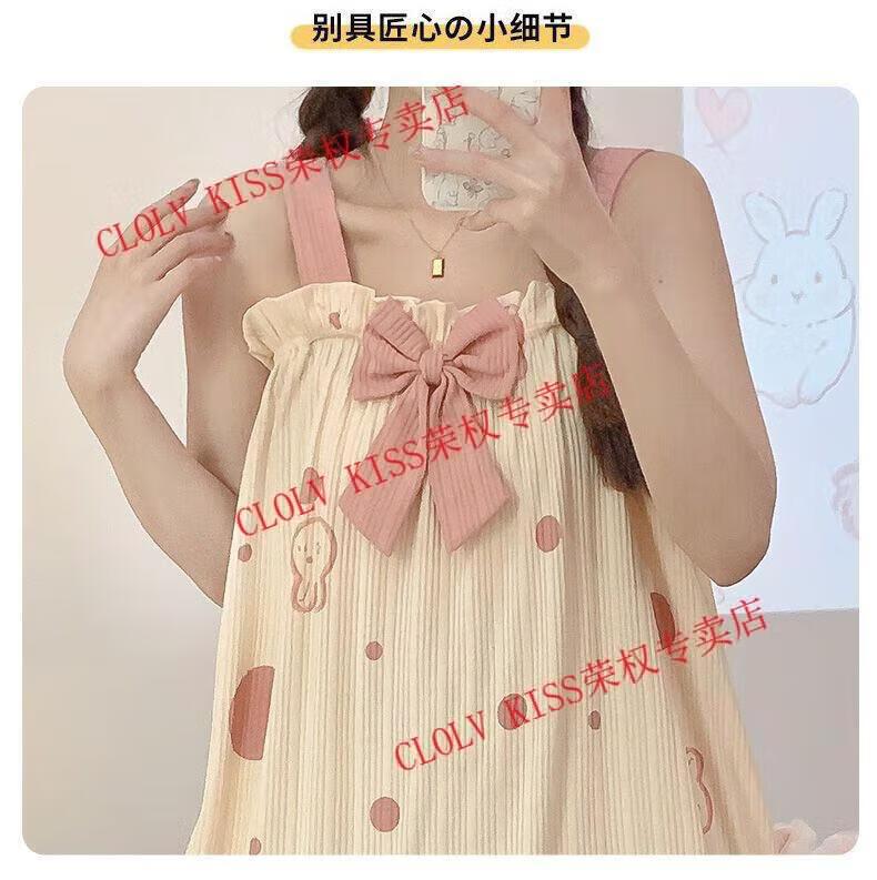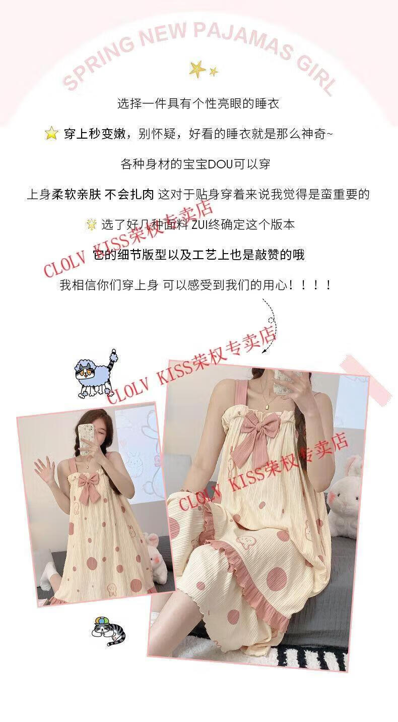 clolv kiss CK 100%纯棉吊带睡裙女夏天甜美可爱学生睡衣女夏季ins风居家服 纯棉834 L 推荐100-120斤