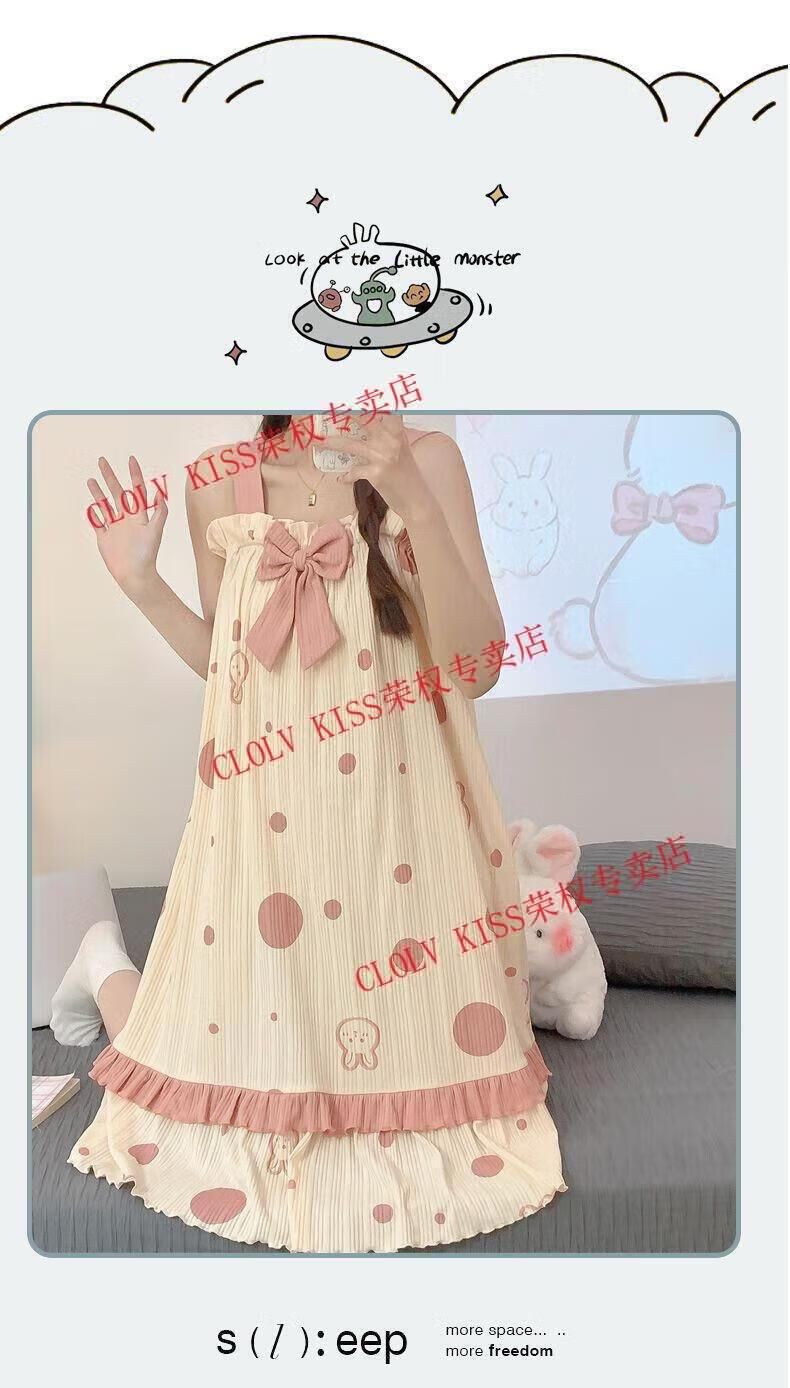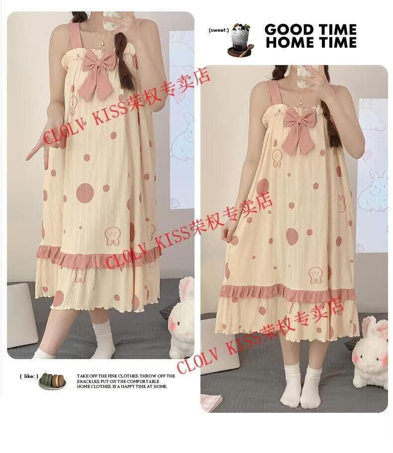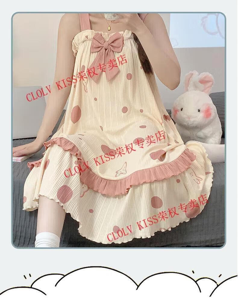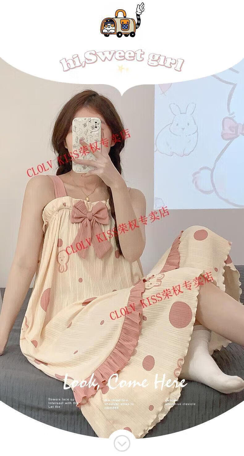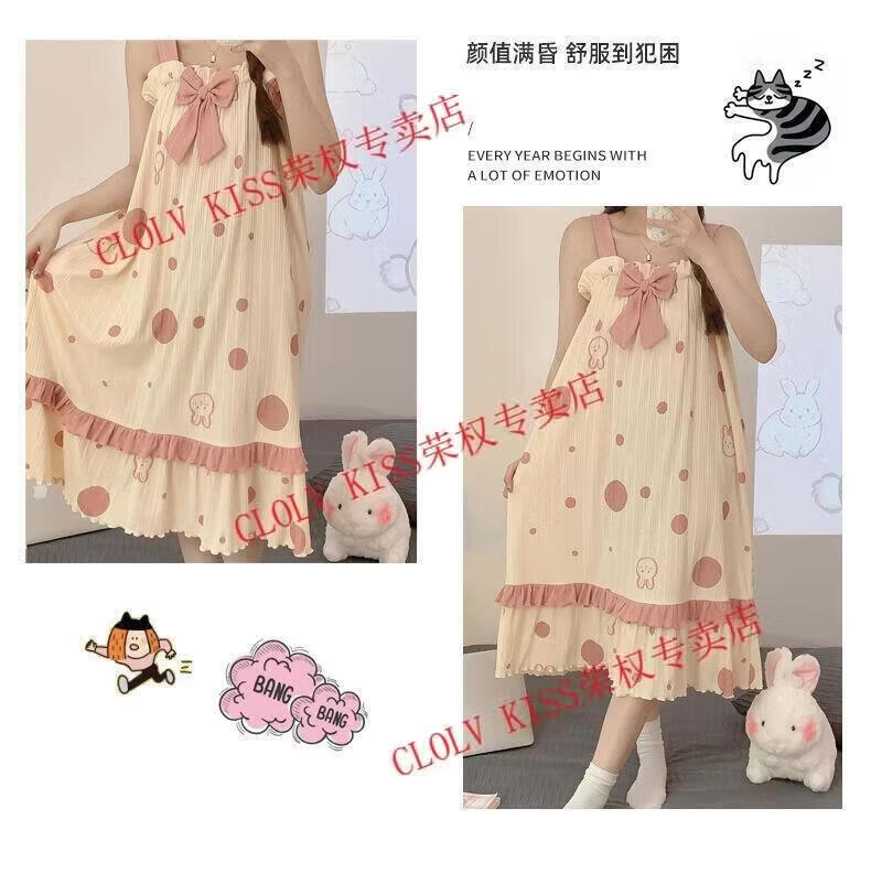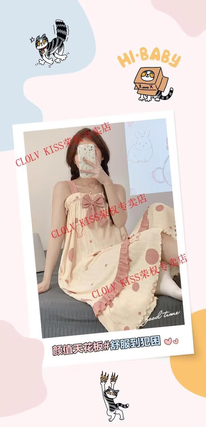 clolv kiss CK 100%纯棉吊带睡裙女夏天甜美可爱学生睡衣女夏季ins风居家服 纯棉834 L 推荐100-120斤