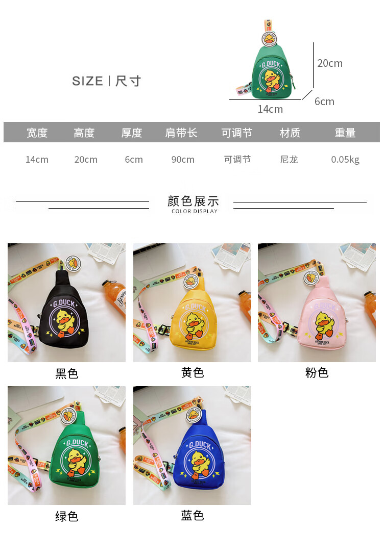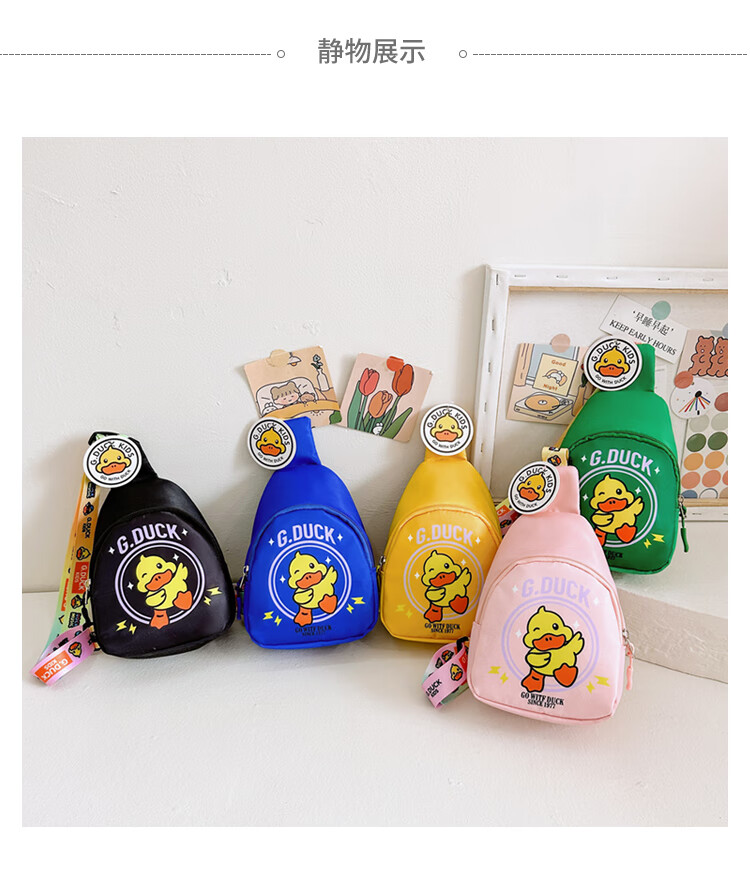 G.duck儿童包包卡通小男孩胸包2024新款可爱小黄鸭女童斜挎包宝宝零钱包 (#6636)黑色
