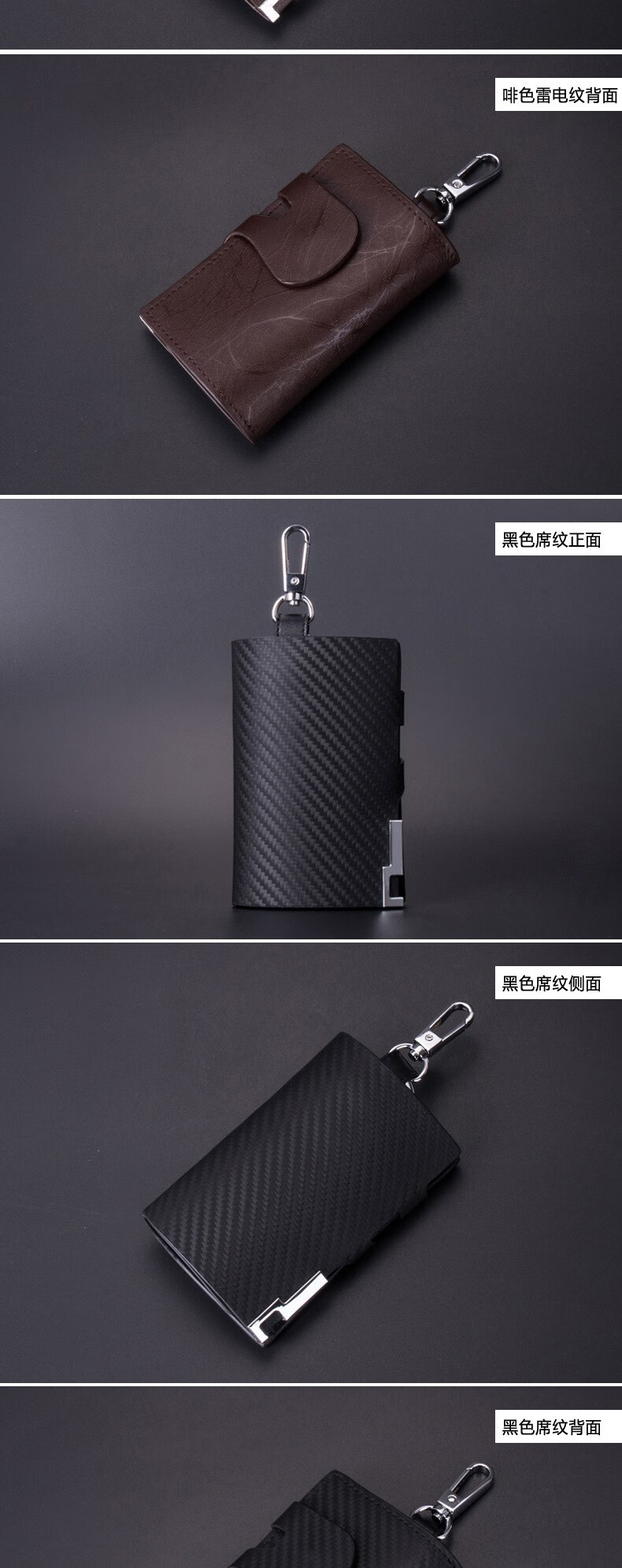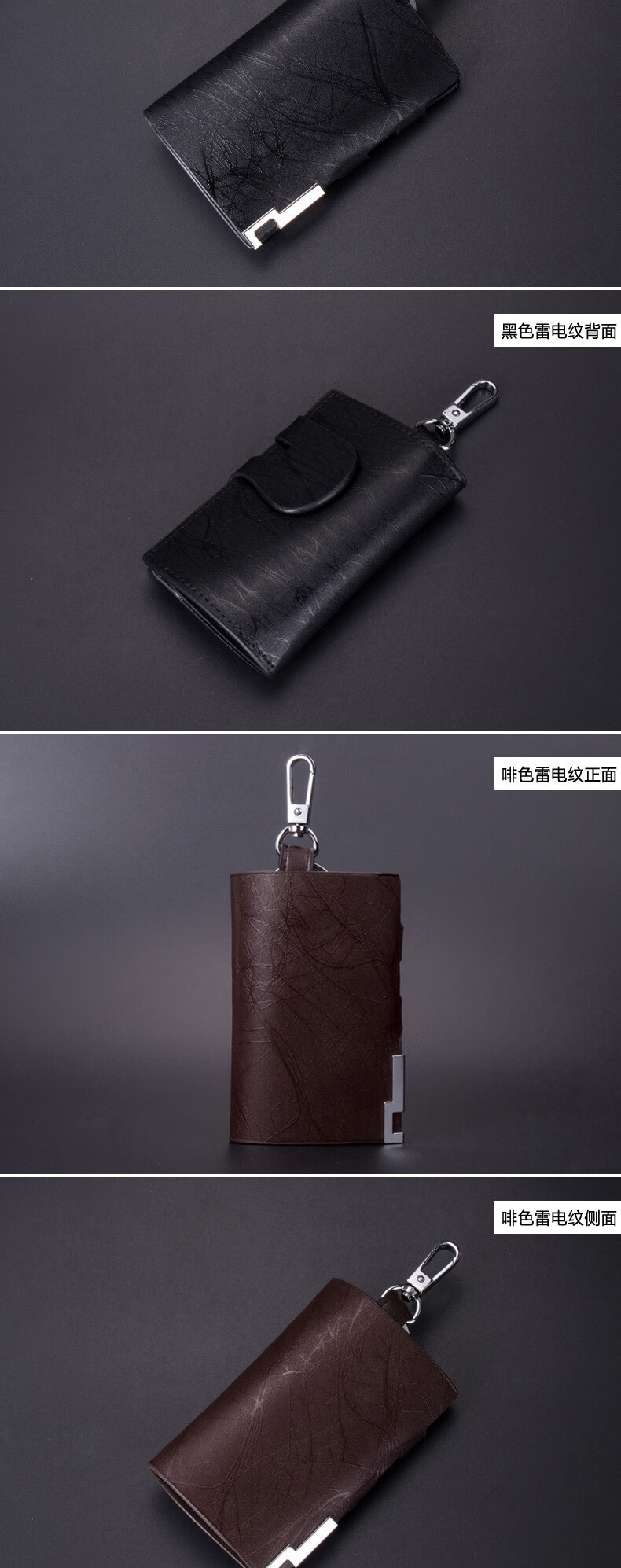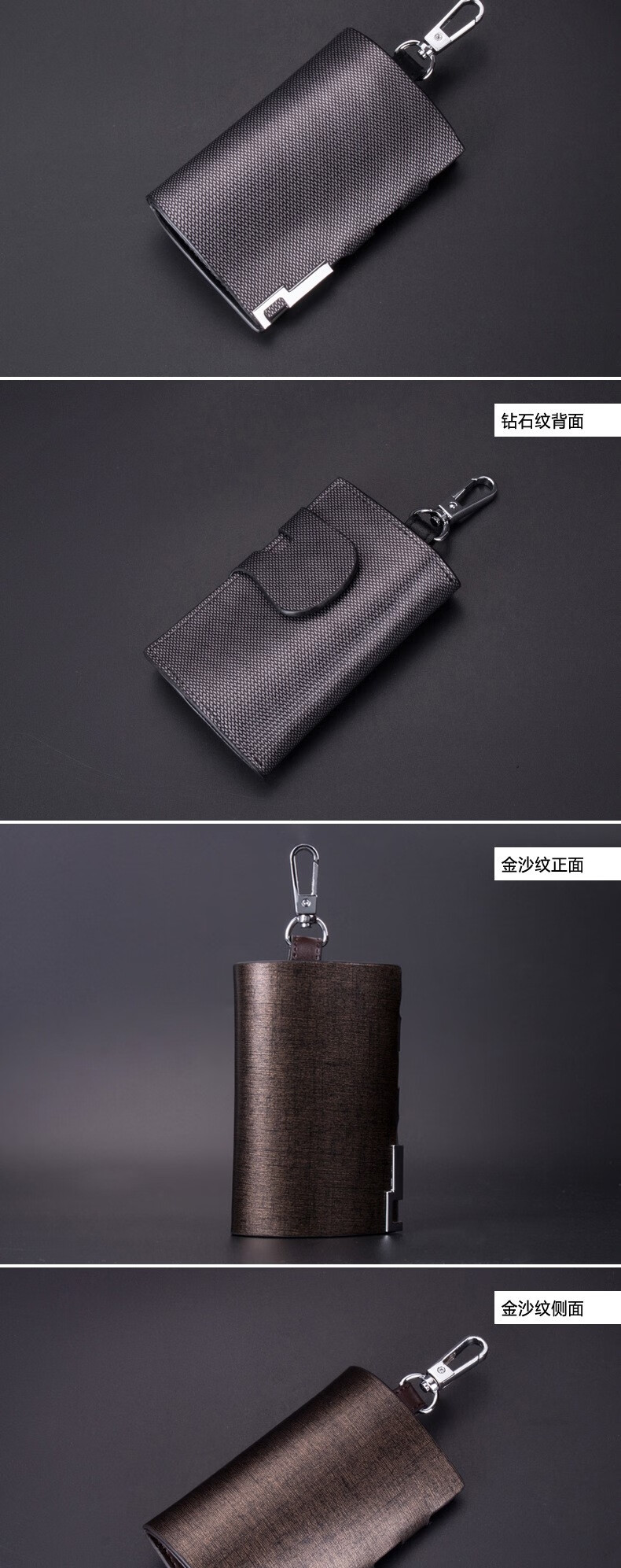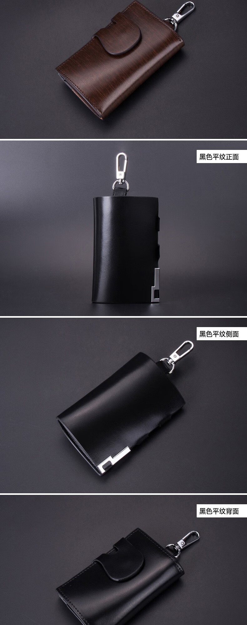 袋鼠男士真皮钥匙包2024时尚新款多功能锁匙包男士时尚休闲包 黑色平纹