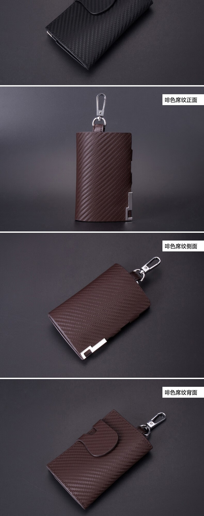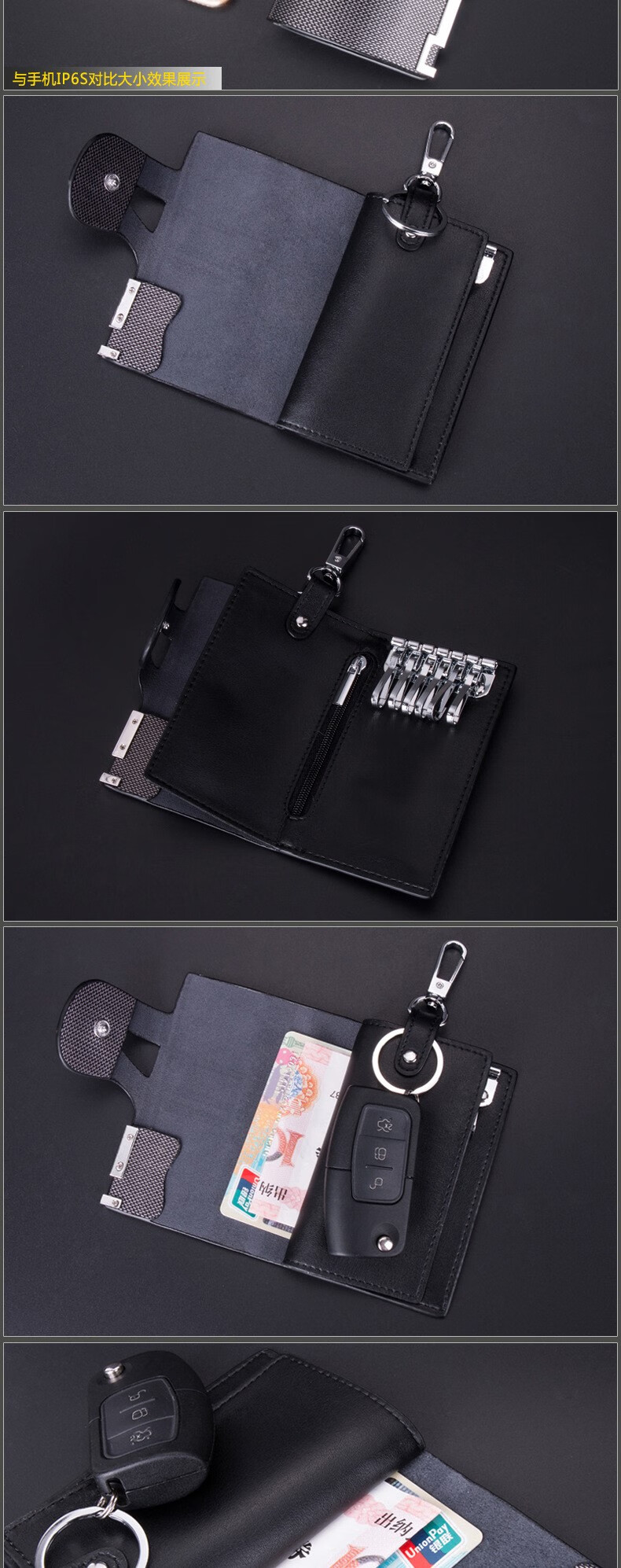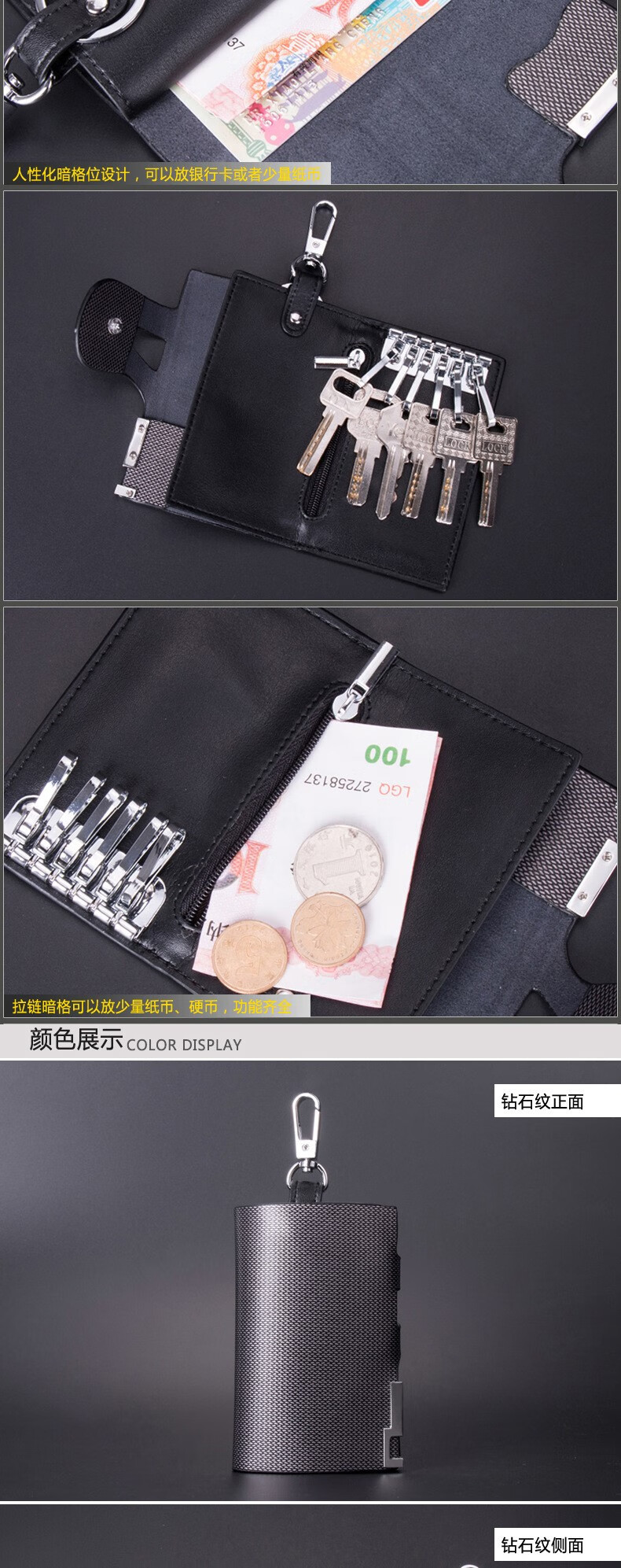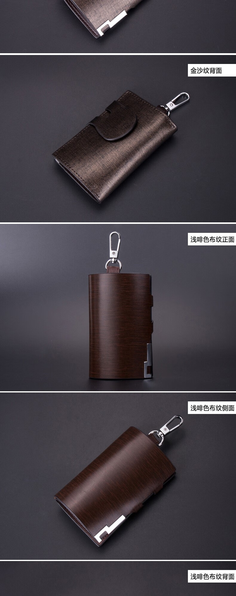 袋鼠男士真皮钥匙包2024时尚新款多功能锁匙包男士时尚休闲包 黑色平纹