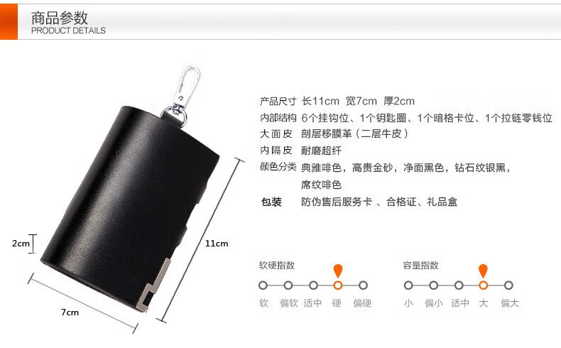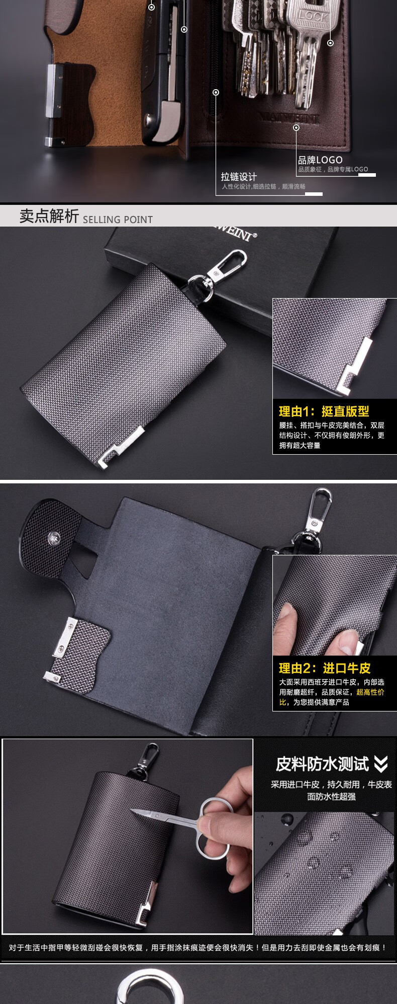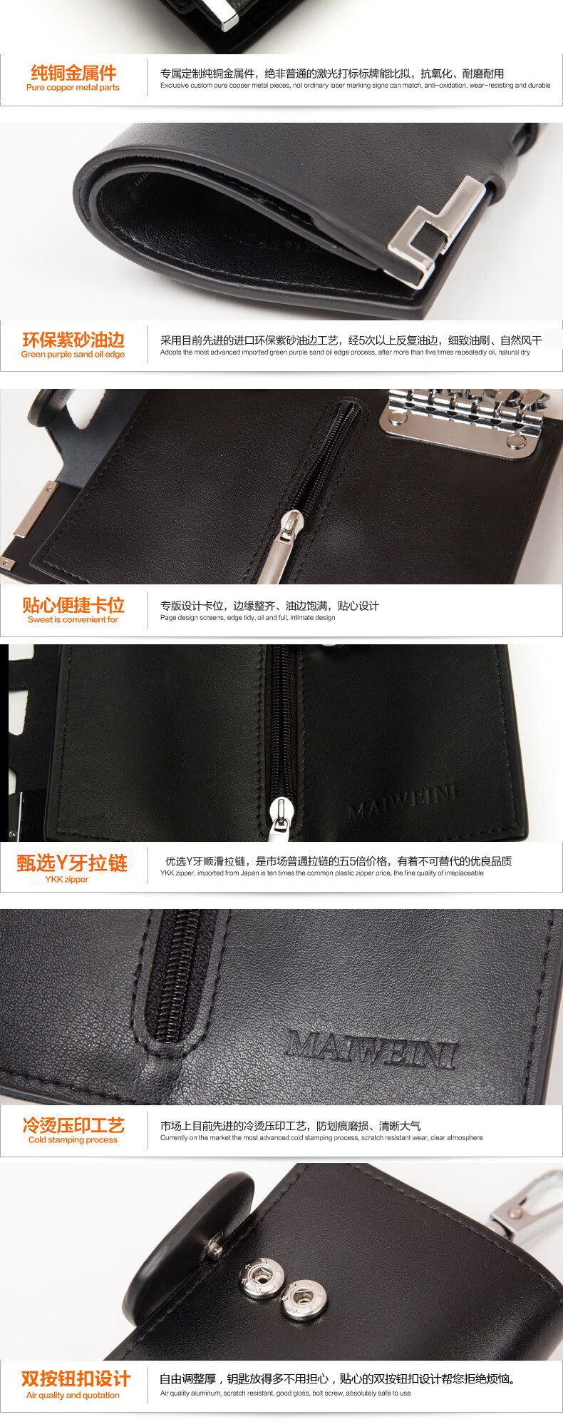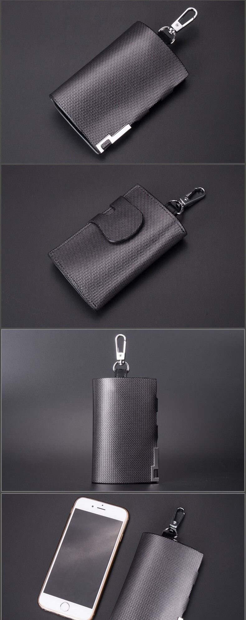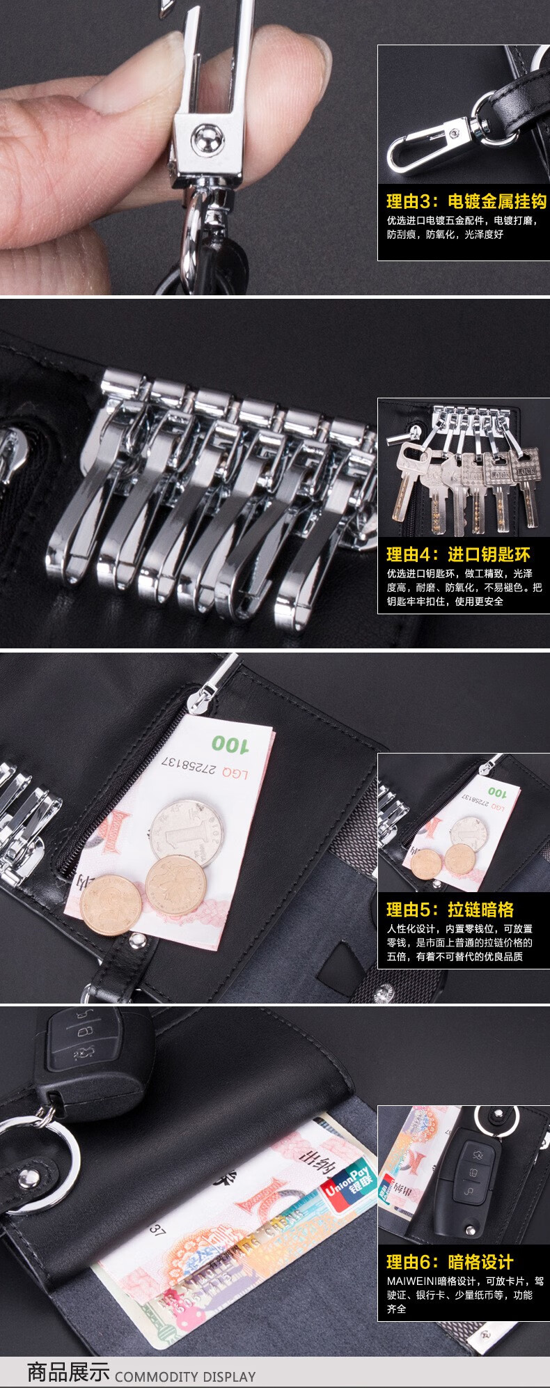 袋鼠男士真皮钥匙包2024时尚新款多功能锁匙包男士时尚休闲包 黑色平纹