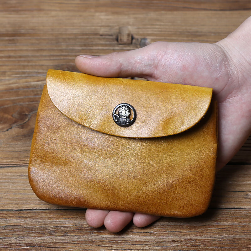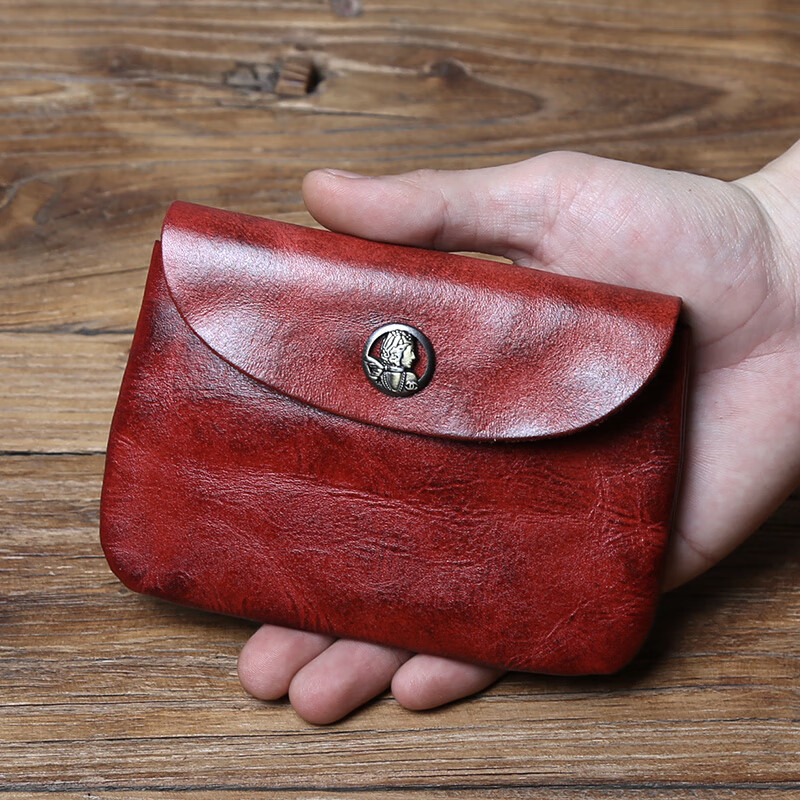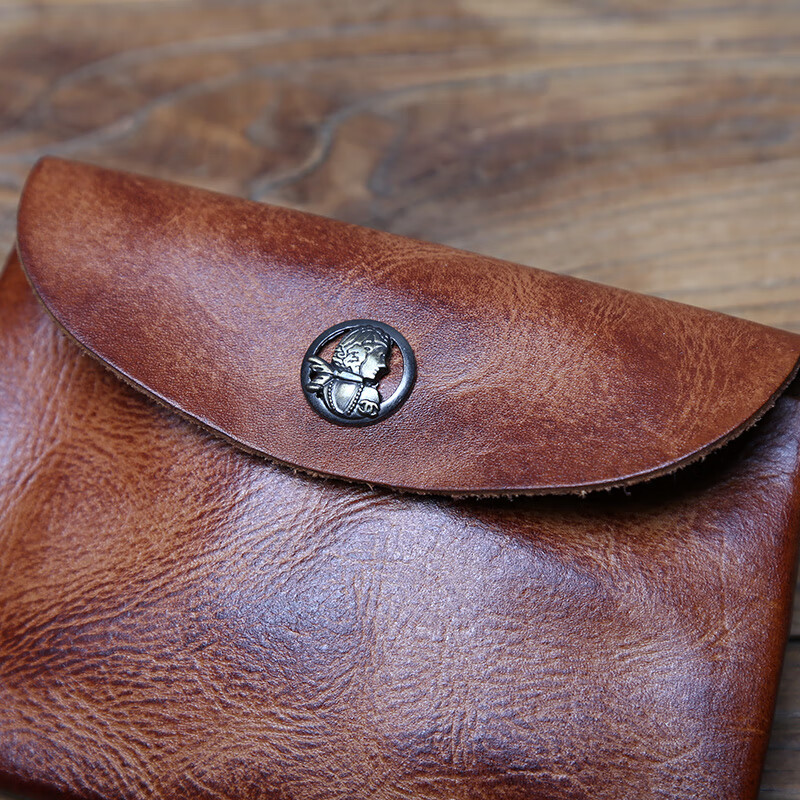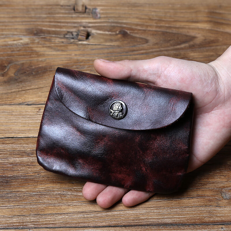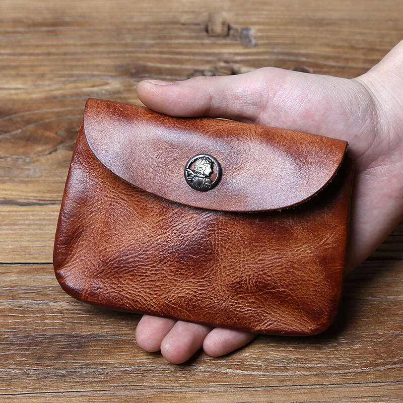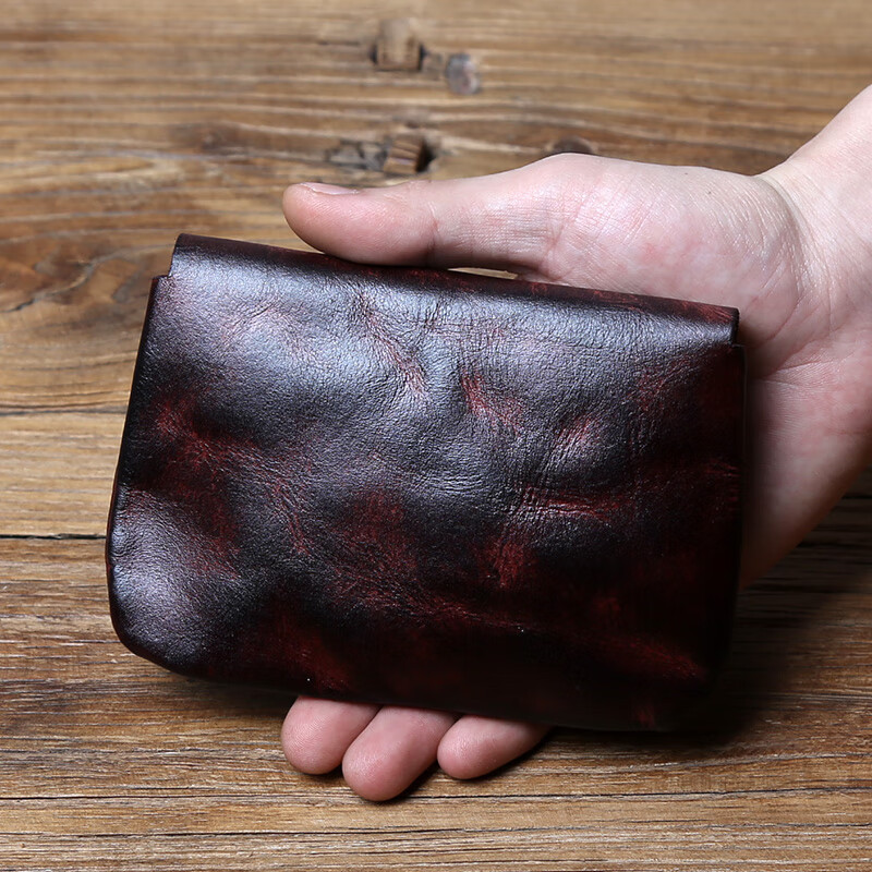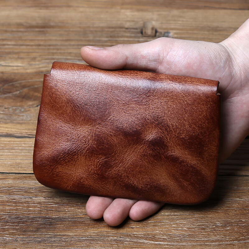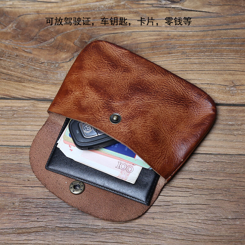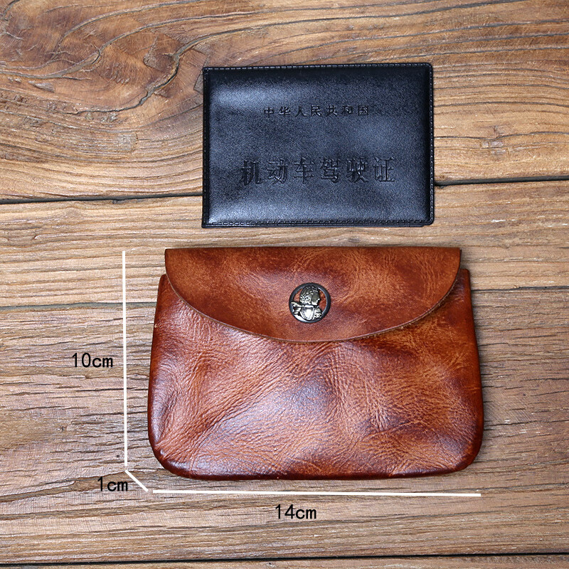 JLFGPJ复古真皮卡包植鞣头层牛皮简约女零钱包做旧硬币收纳包男驾驶证包 深棕色 1个