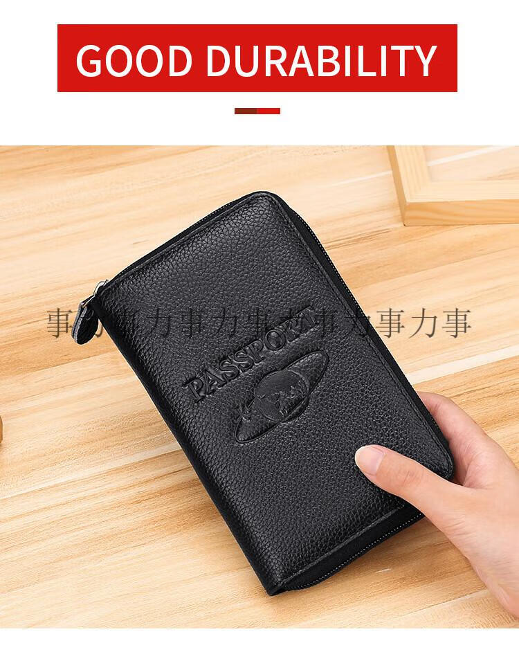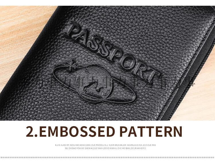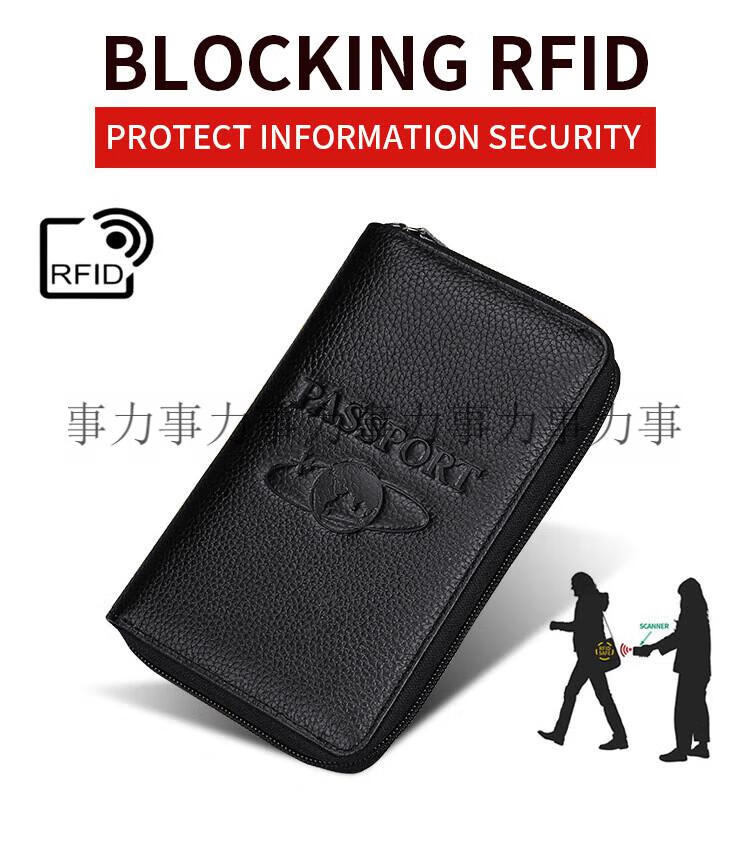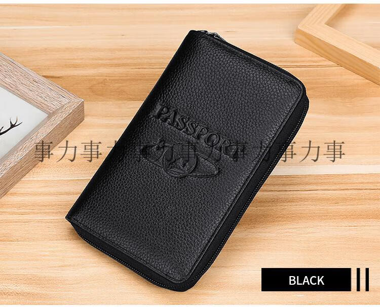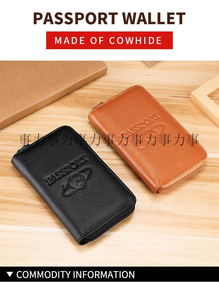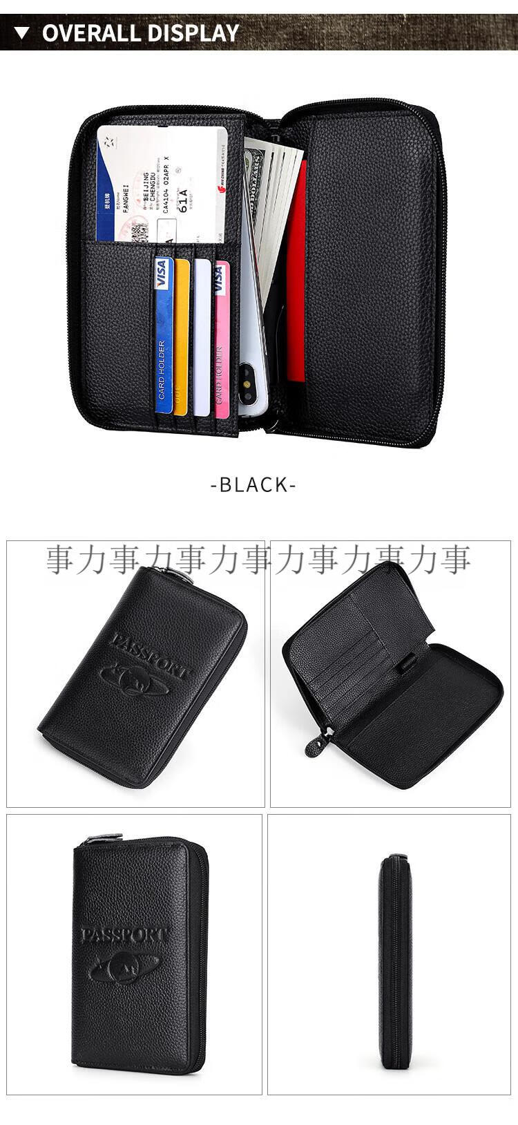 袋鼠(KANGAROO)护照包头层牛皮出国旅游钱包rfid护照本防盗刷卡位证件包 黑色