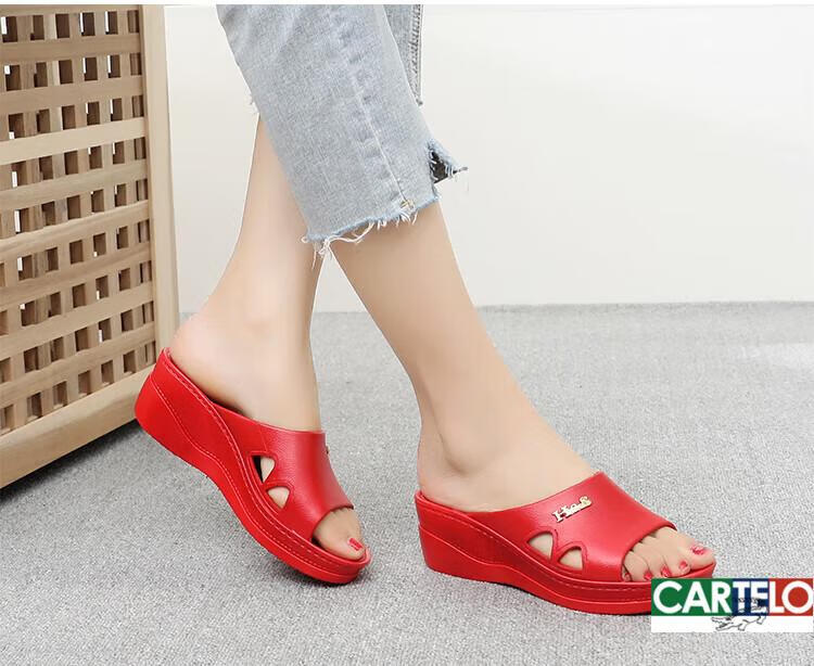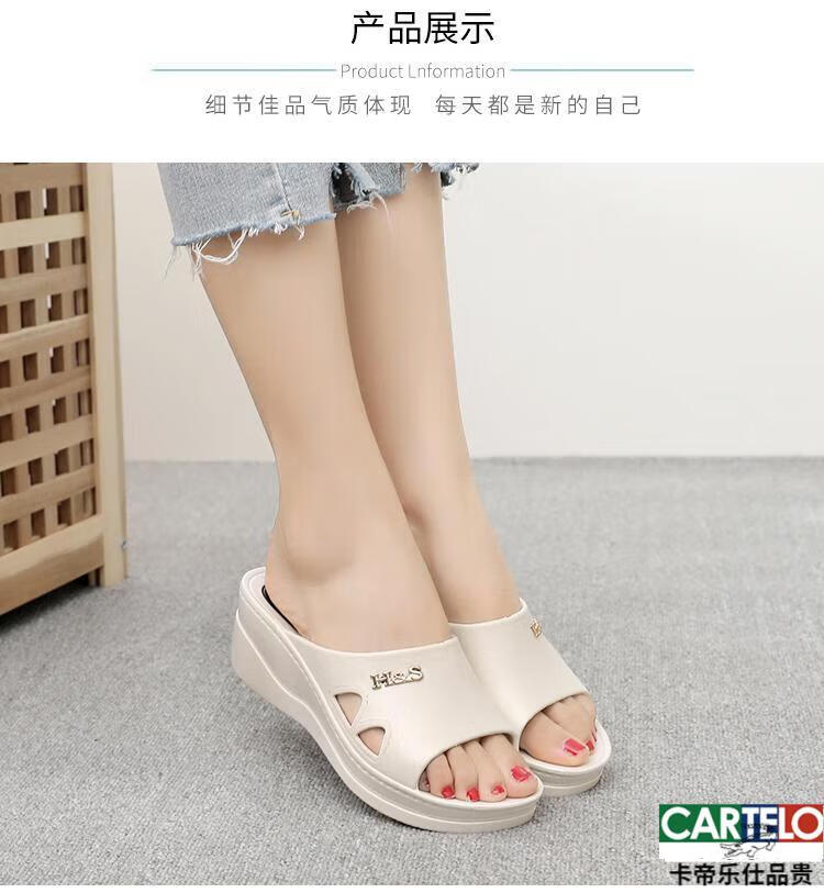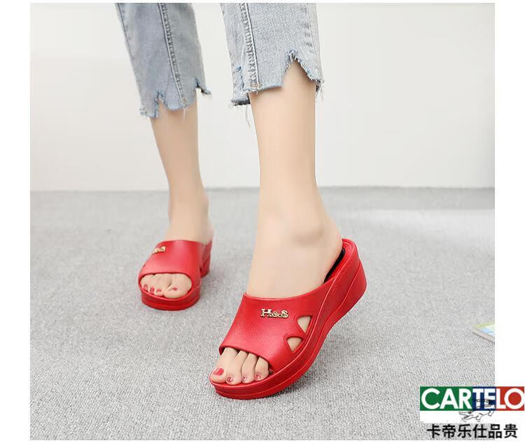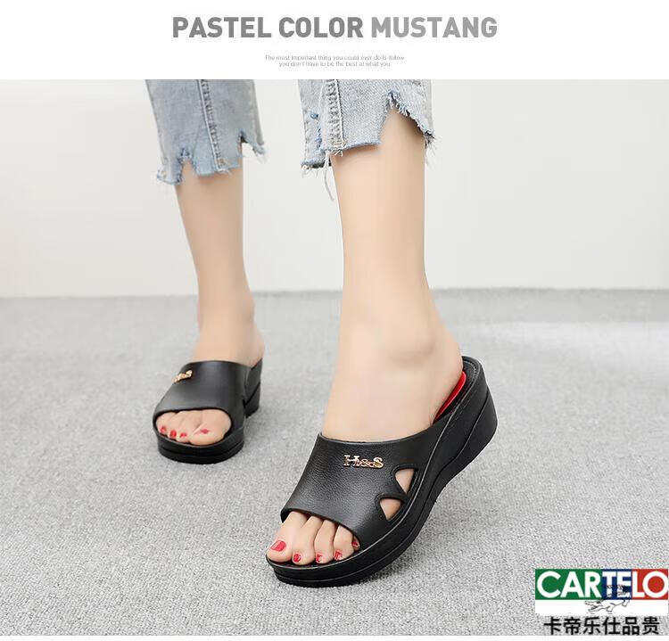 卡帝乐鳄鱼(CARTELO)女士高跟拖鞋夏季外穿厚底时尚家居防滑软底坡跟防水凉鞋2025新款 黑色 795 41 码【适合39的脚】