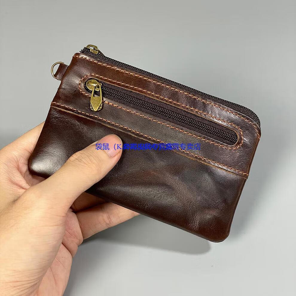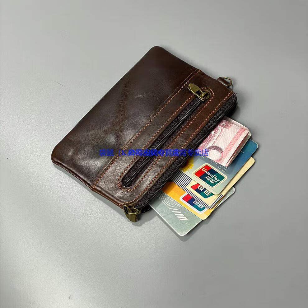 Casa-kupsCK Echtleder-Geldbörse mit Reißverschluss, Herren-Kartentasche, Retro-Tasche aus echtem Leder, ultradünn, kleine Geldbörse, Kartentasche, Münztasche Mini