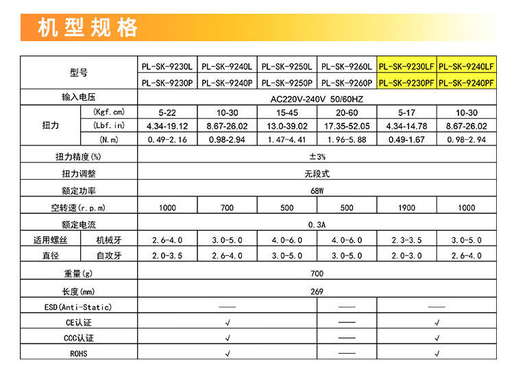 奇力速SK9230L/P 9240 9250 9260 9231LF/PF电批大扭力 P1LSK9230L