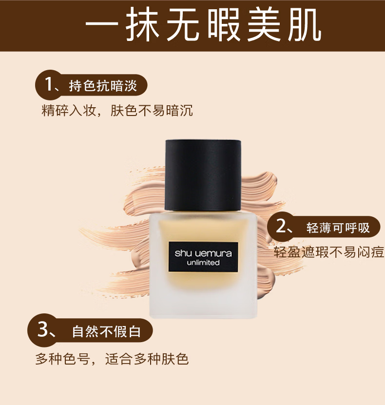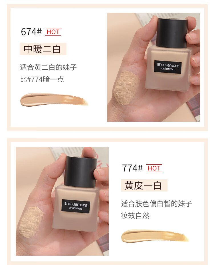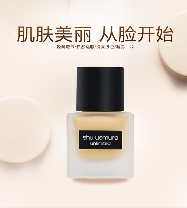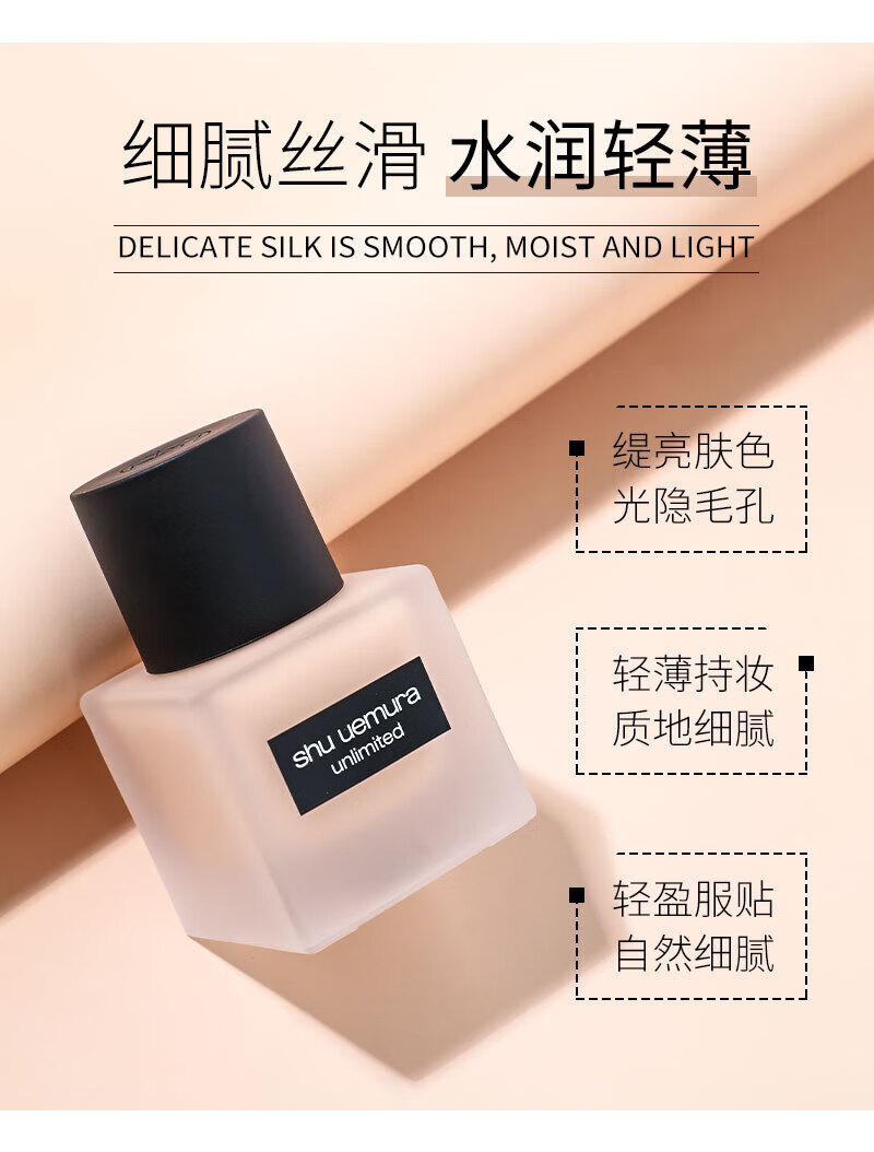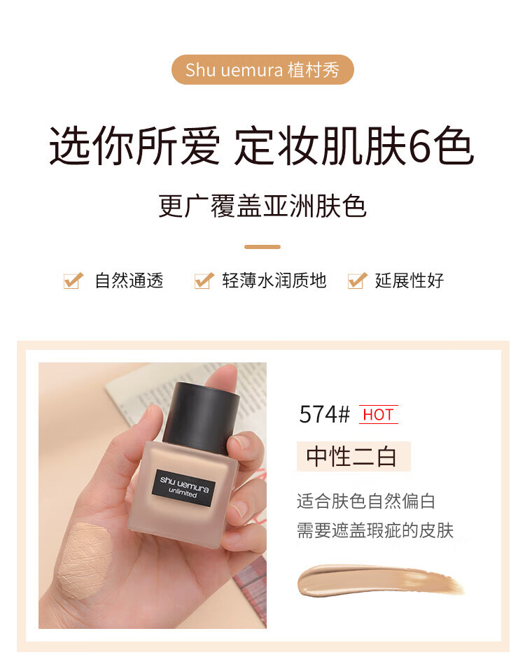 植村秀(shu uemura)羽纱持妆小方瓶粉底液粉底霜遮瑕轻薄控油自然生日礼物送女友 小方瓶674#中暖一白 35ml