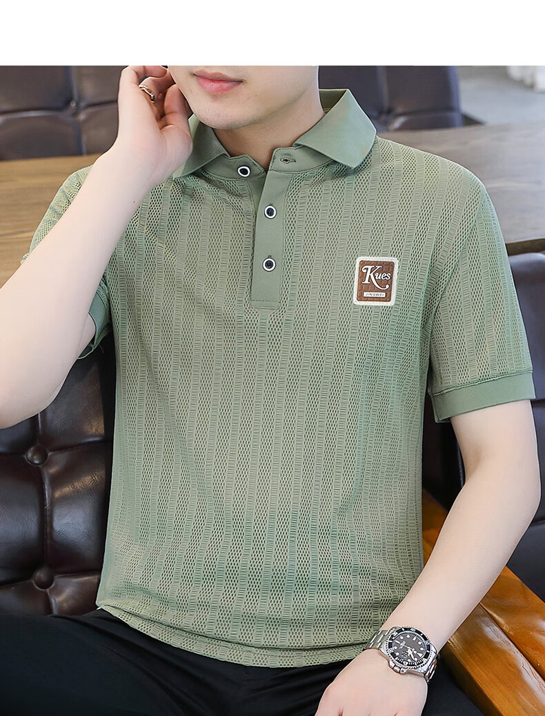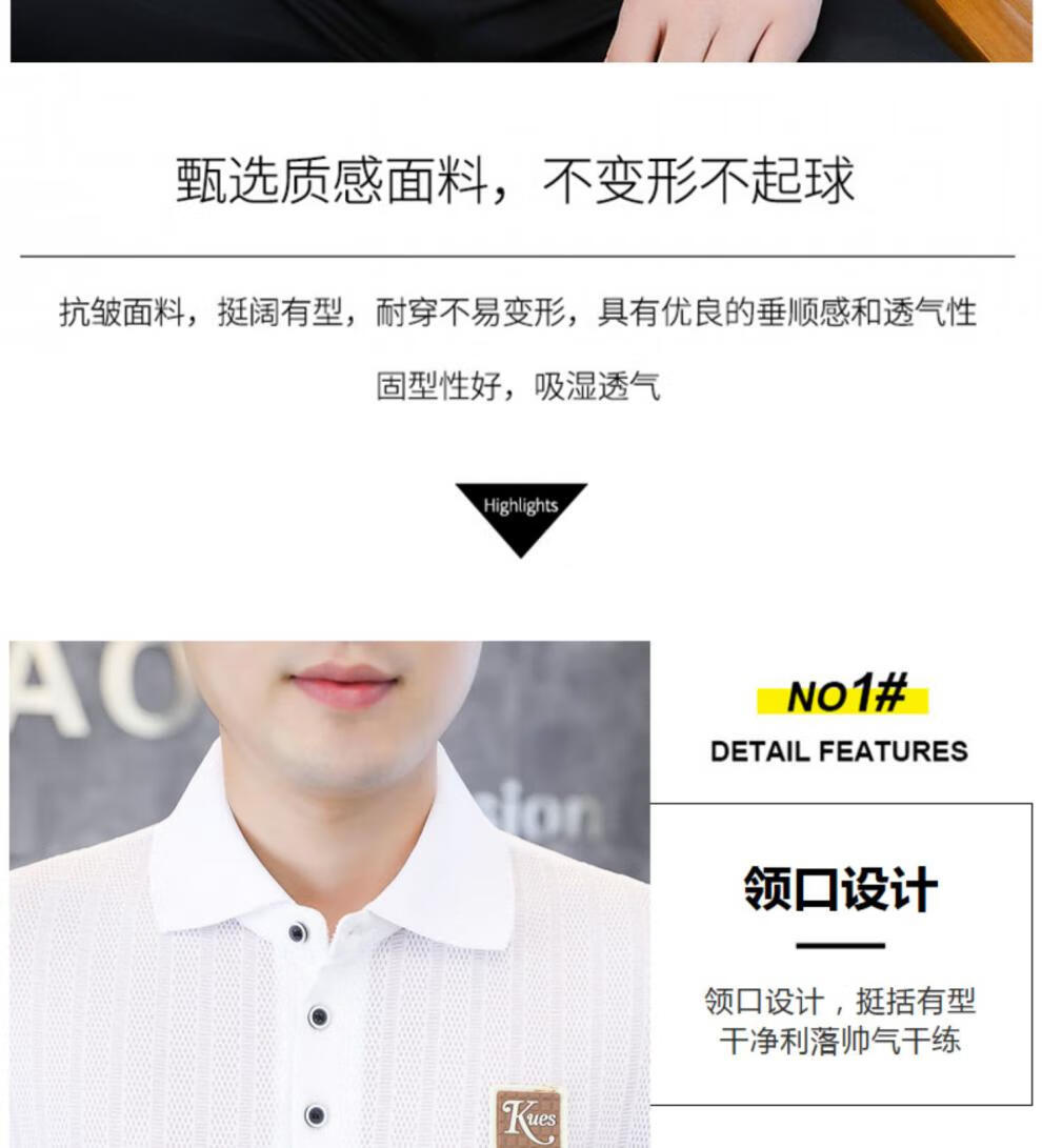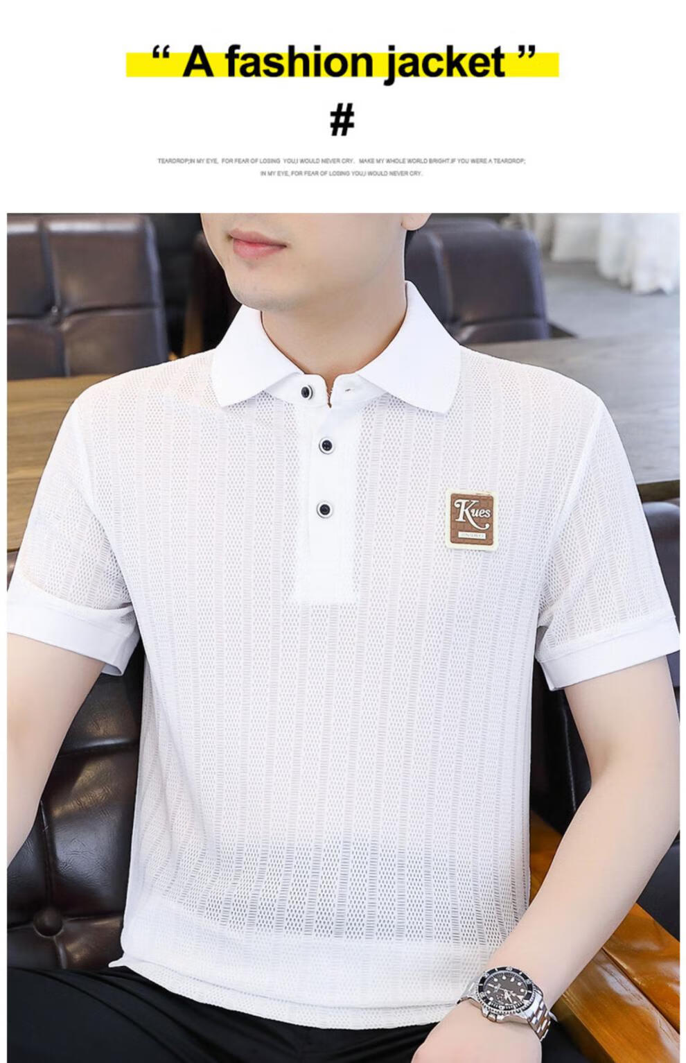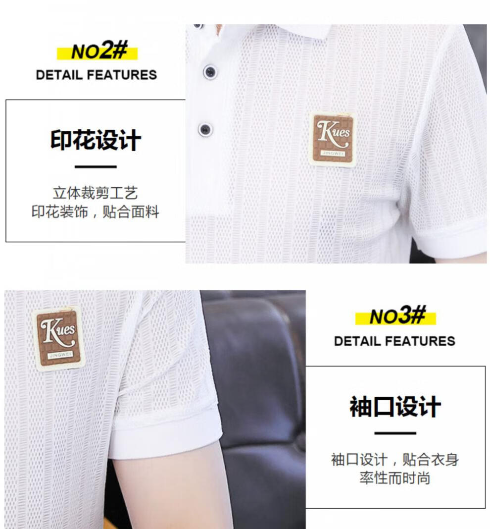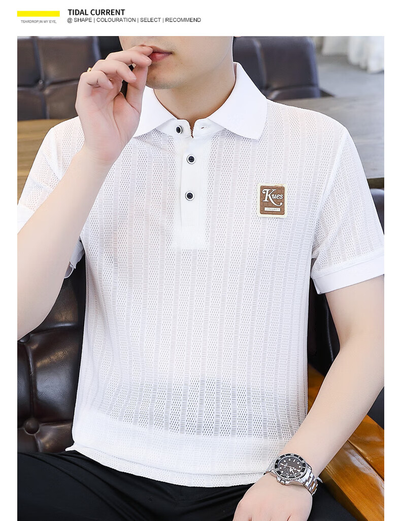 罗蒙(ROMON)冰丝短袖polo.衫男夏季薄款网眼镂空透气T恤2024新款纯色带领体恤 9923白色 L