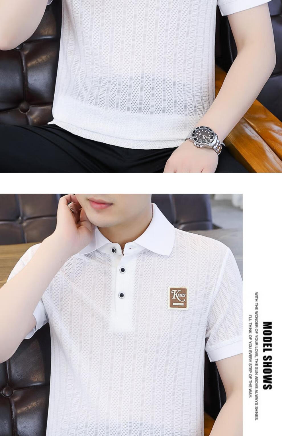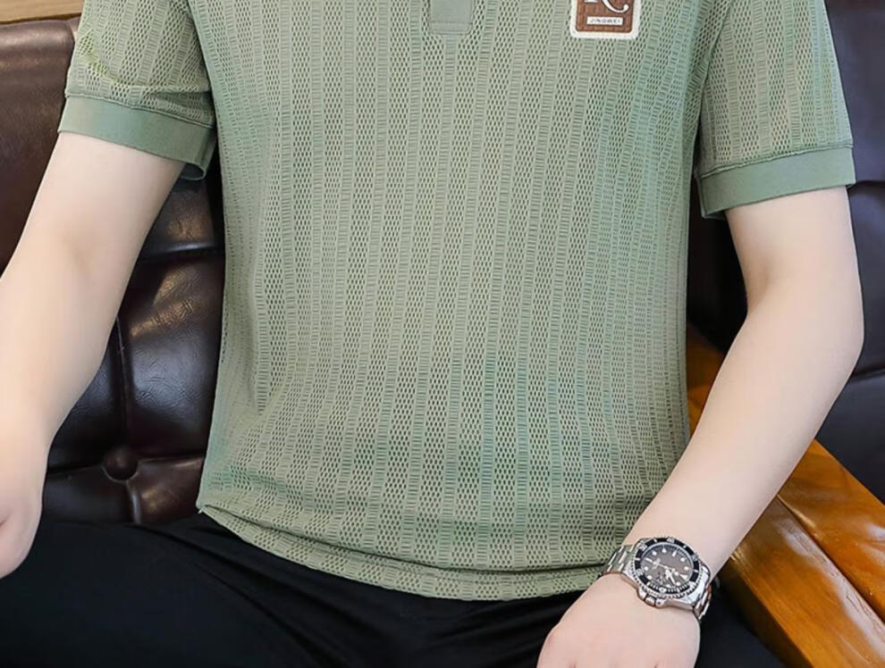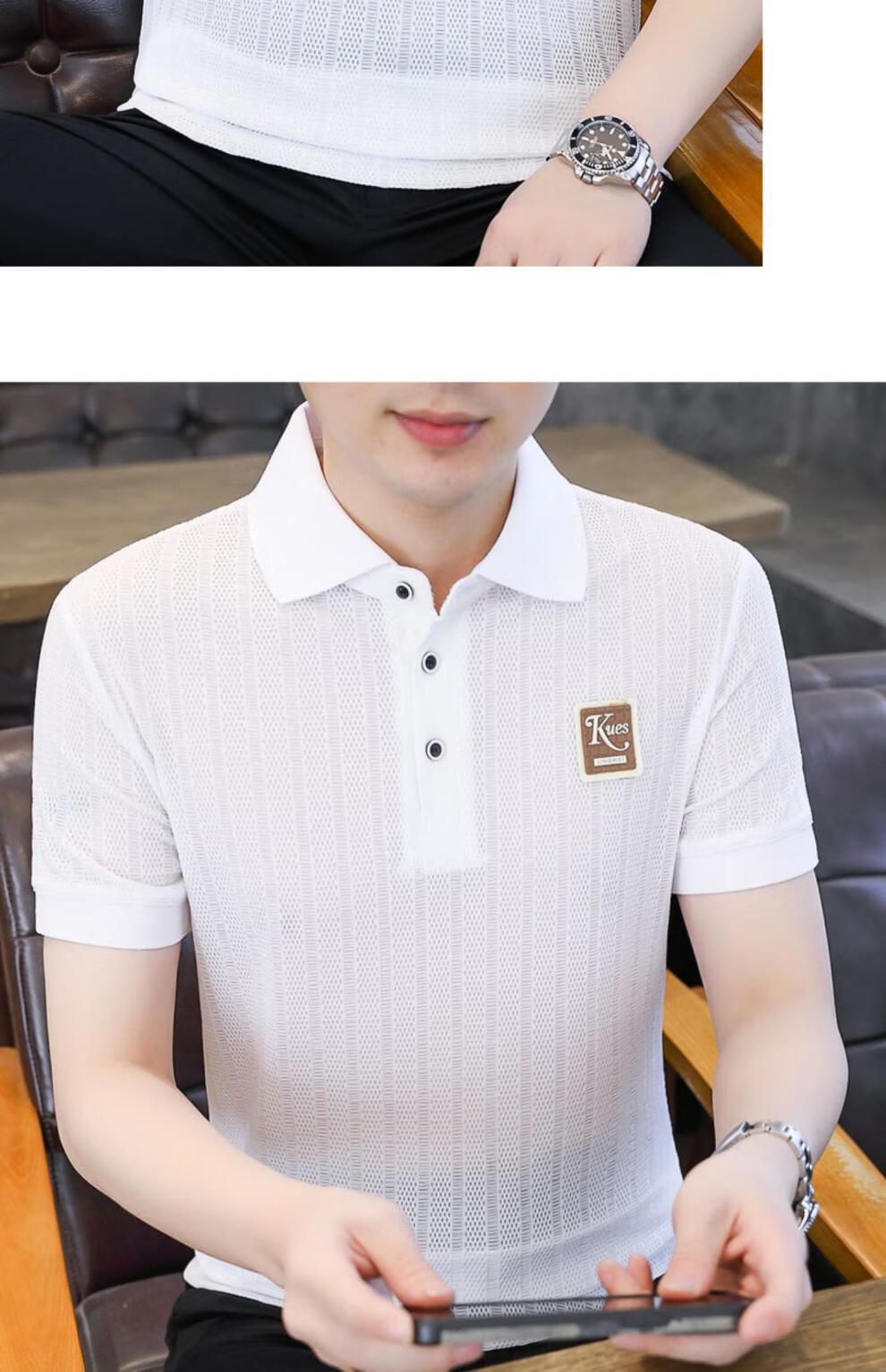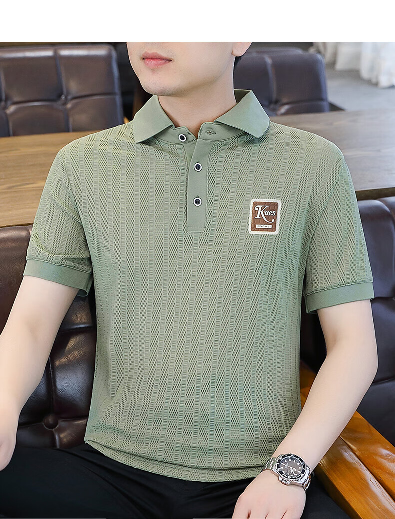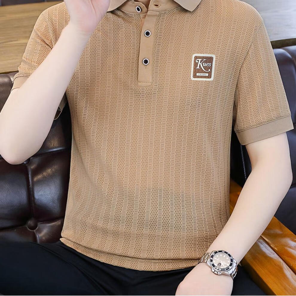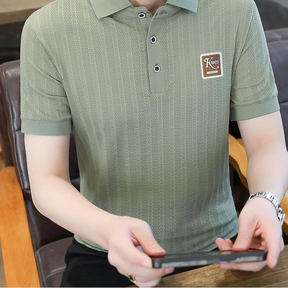 罗蒙(ROMON)冰丝短袖polo.衫男夏季薄款网眼镂空透气T恤2024新款纯色带领体恤 9923白色 L