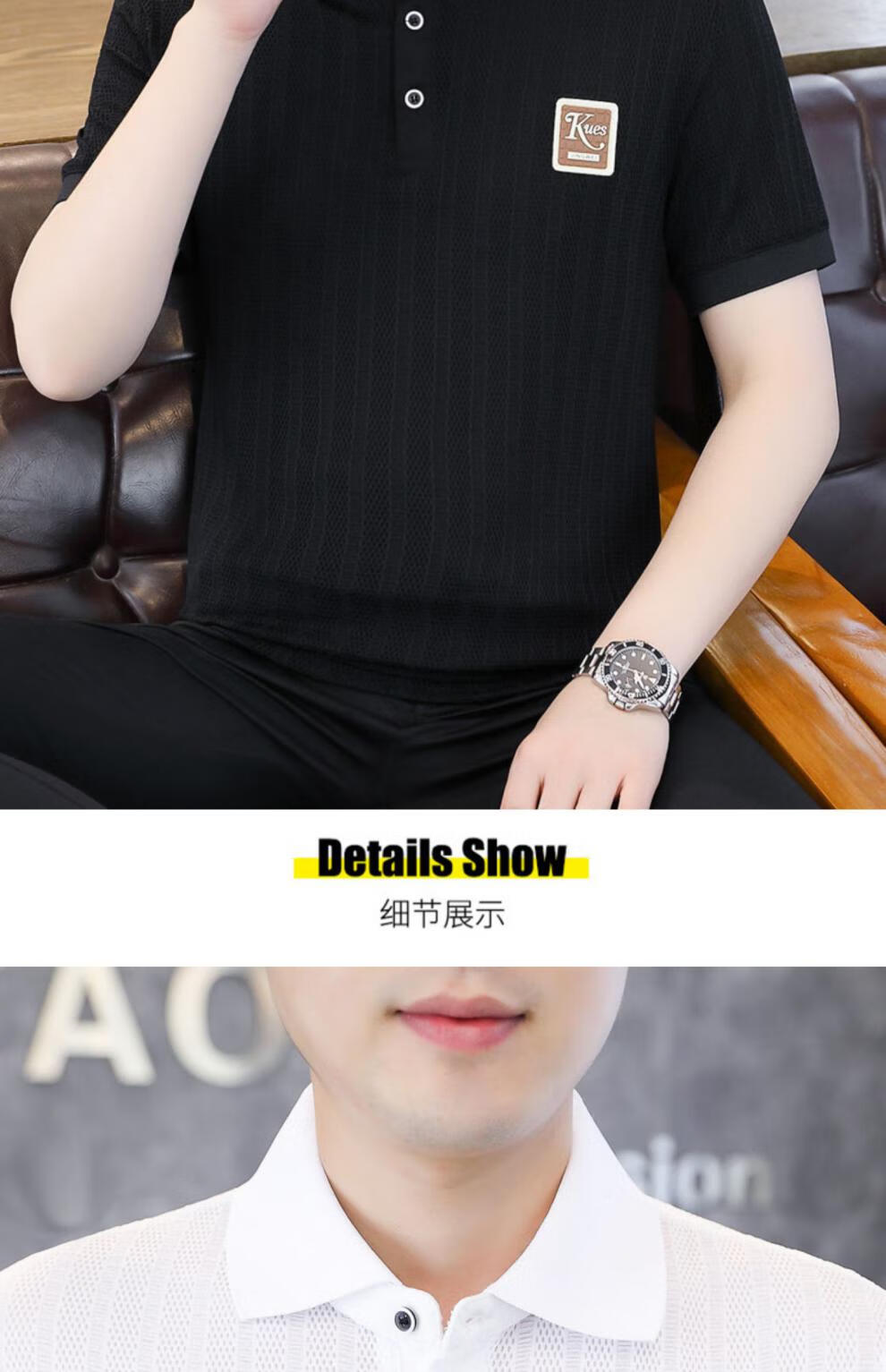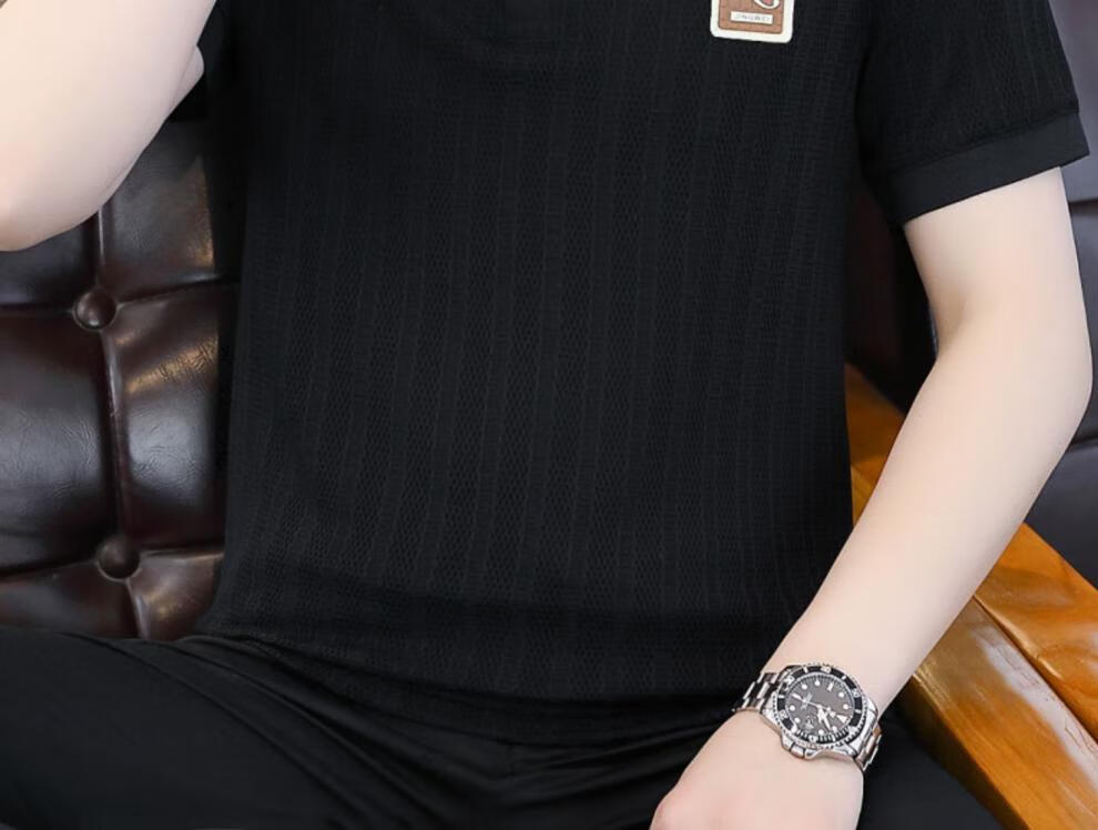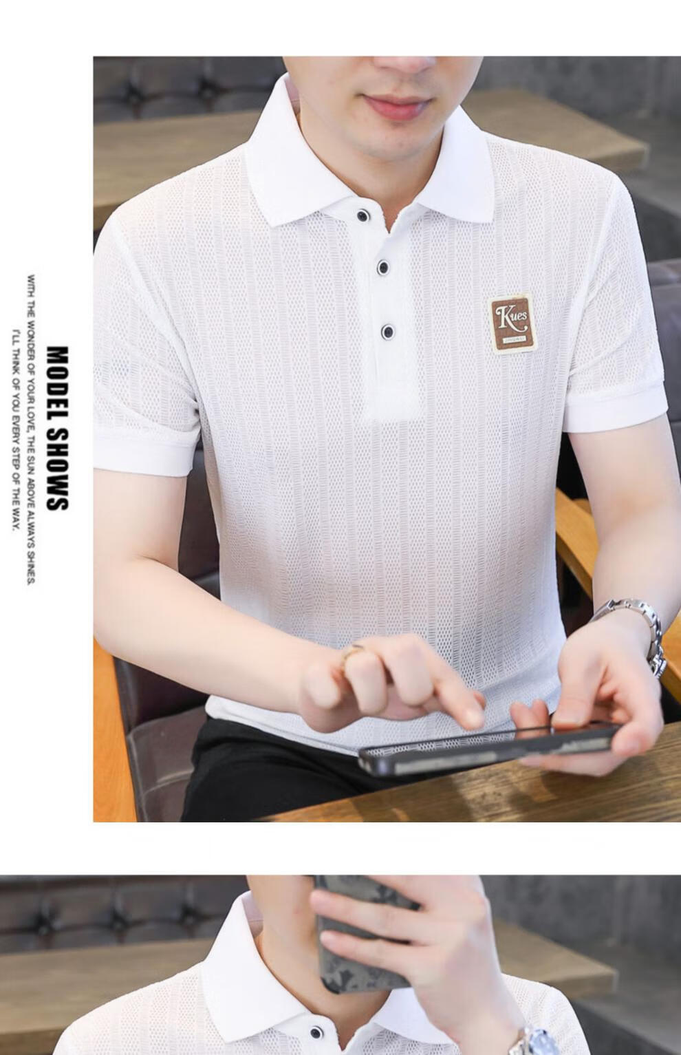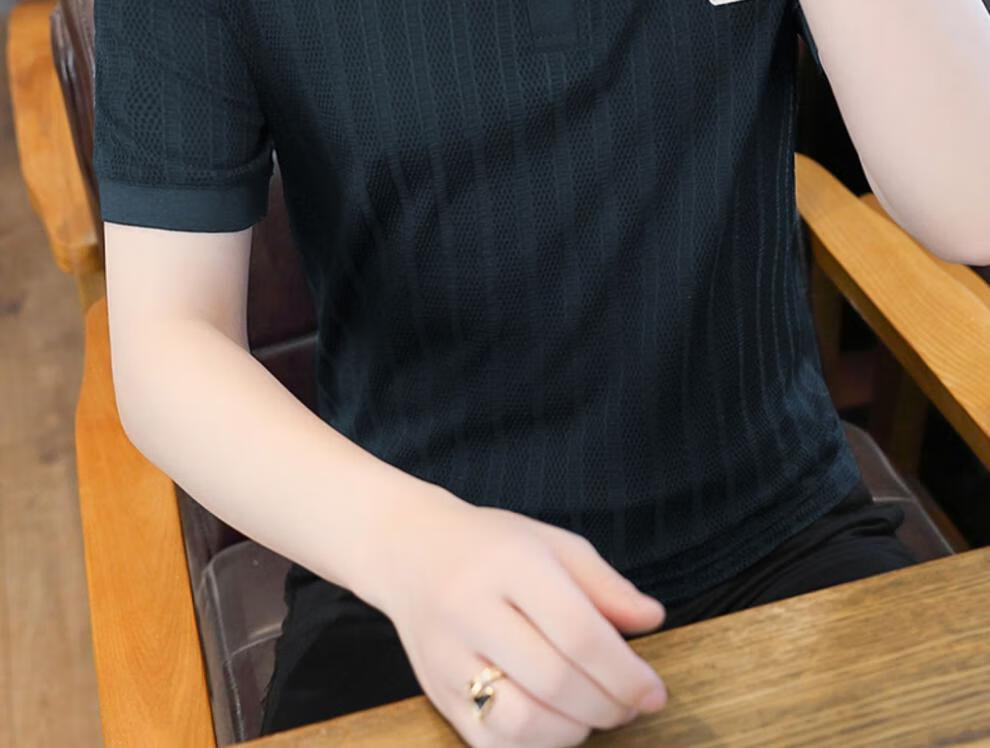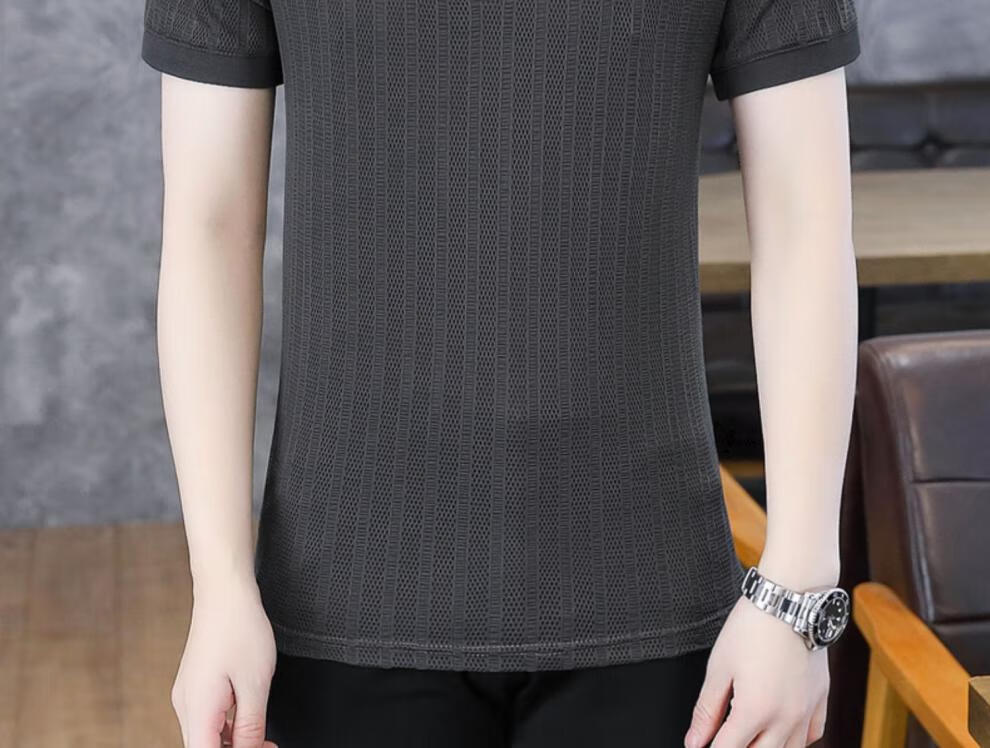 罗蒙(ROMON)冰丝短袖polo.衫男夏季薄款网眼镂空透气T恤2024新款纯色带领体恤 9923白色 L